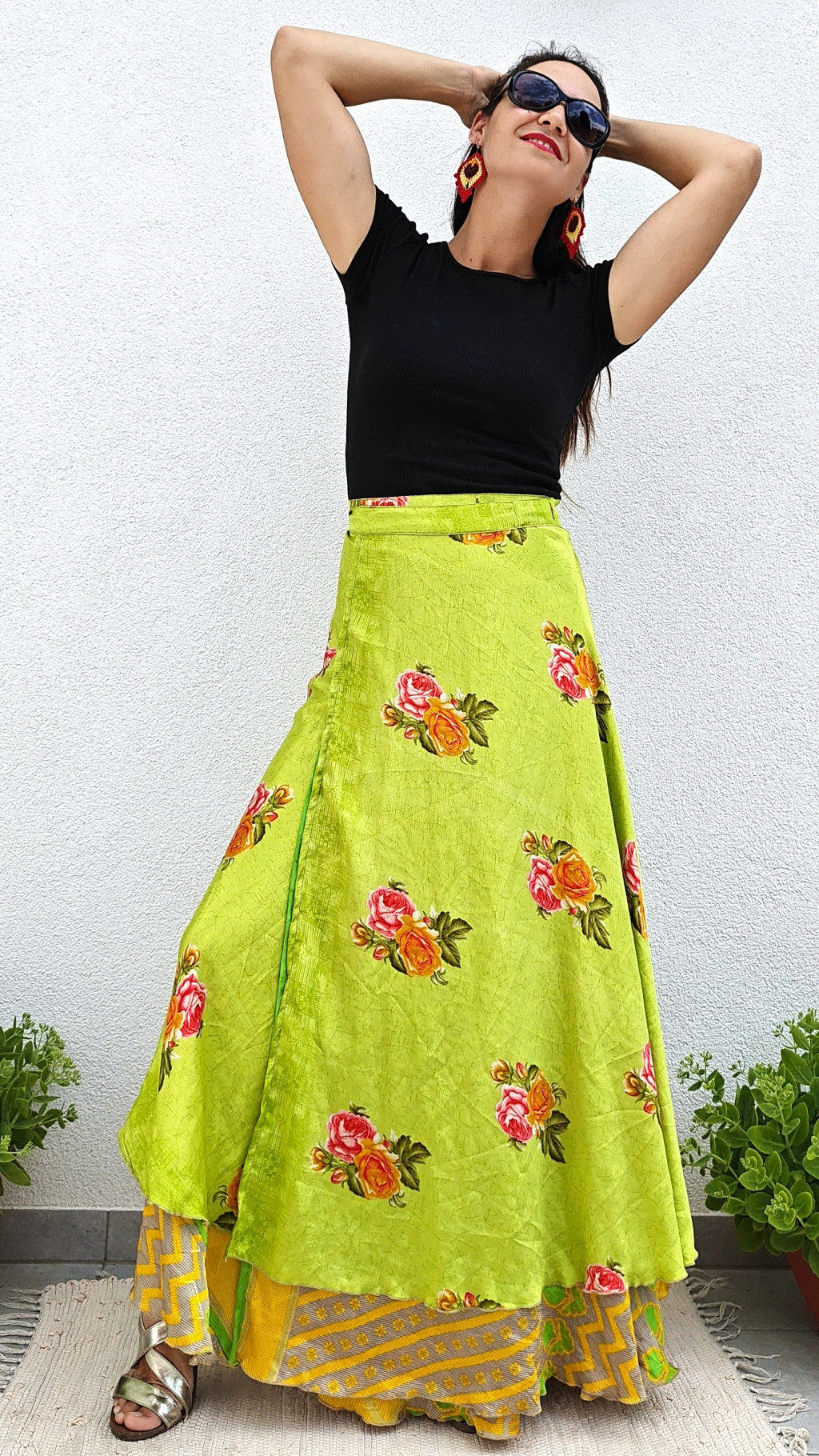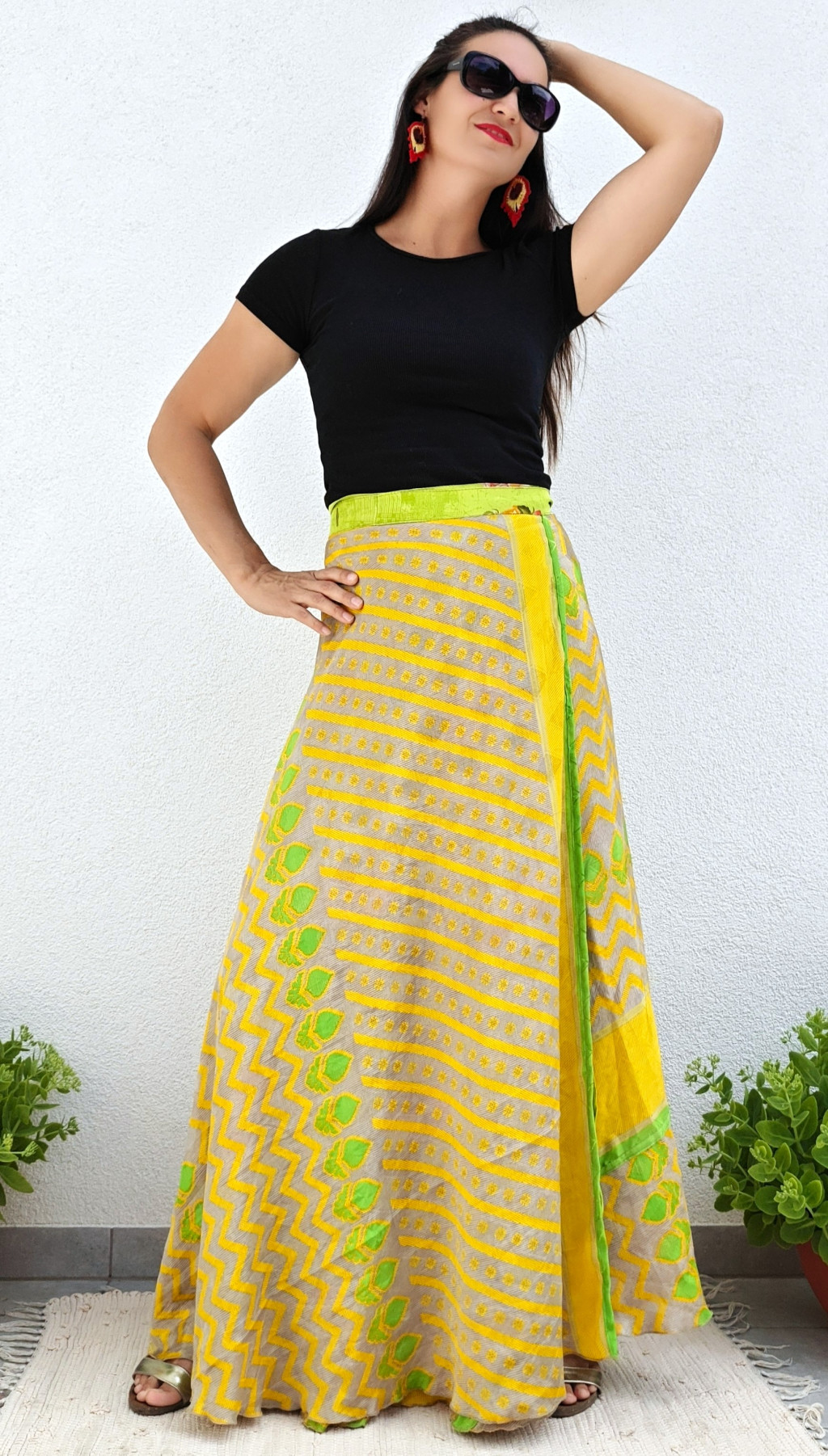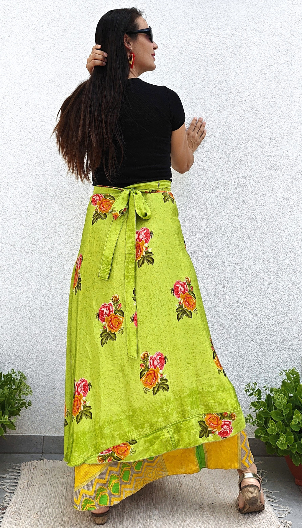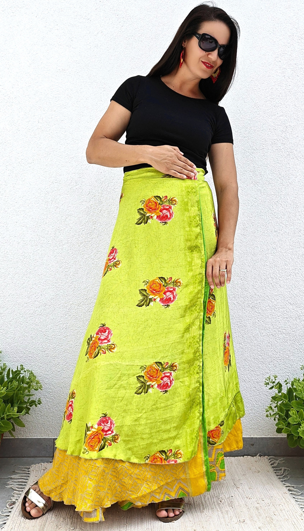 Lapszoknyáink újrahasznosított szárikból készülnek Indiában, egy hosszabb és egy rövidebb anyag derékban összevarrva! Kifordítható, mindkét oldala hordható, sokféleképpen köthető, variálható. Szoknyáinkból nincs két egyforma, mindegyikből csak EGY darab van, ha megtetszik, csapj le rá!