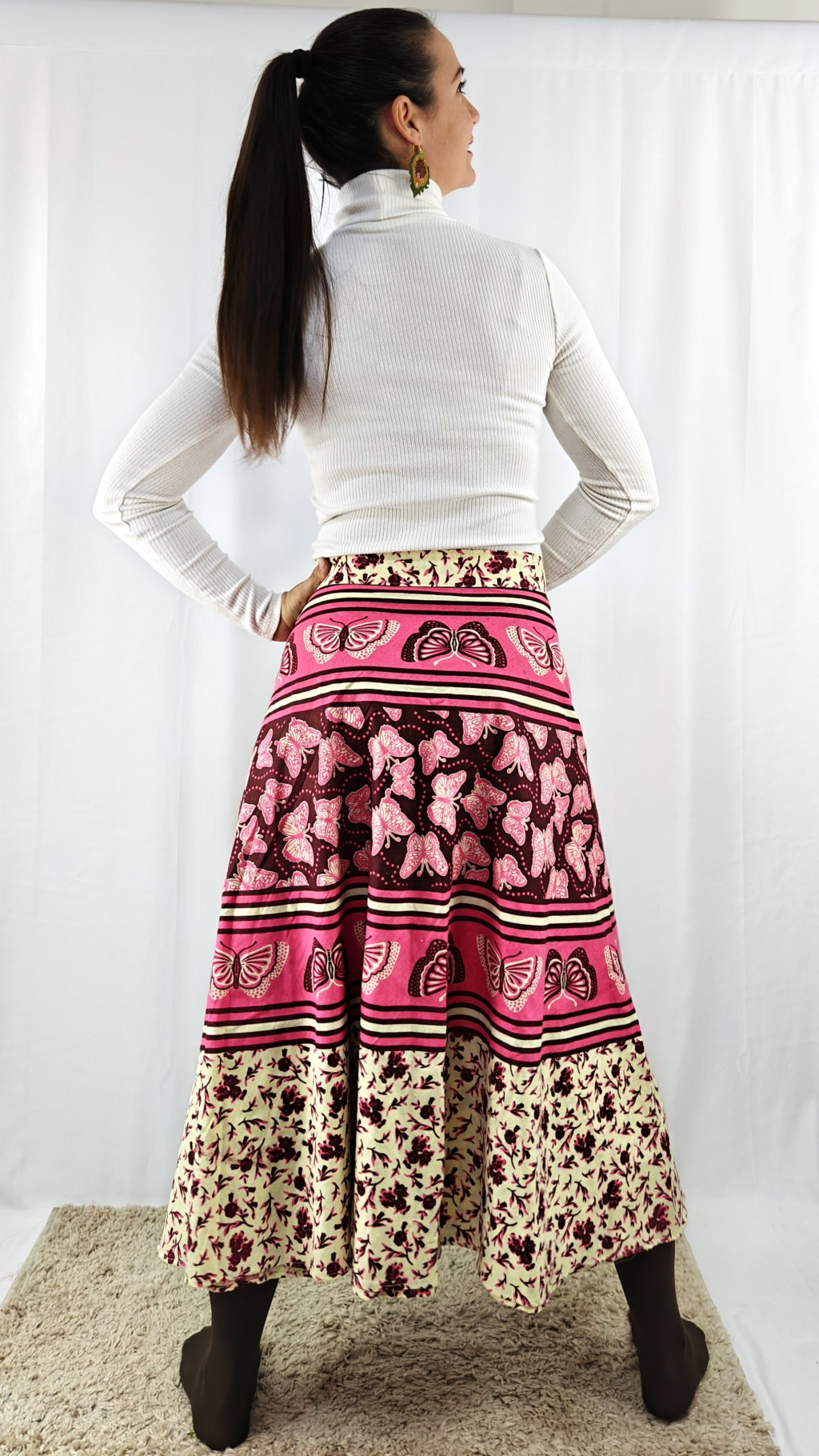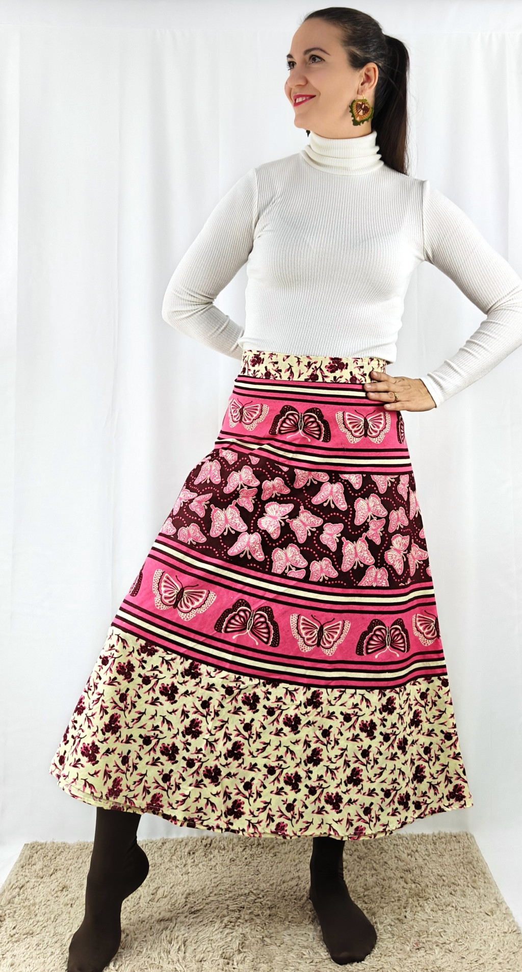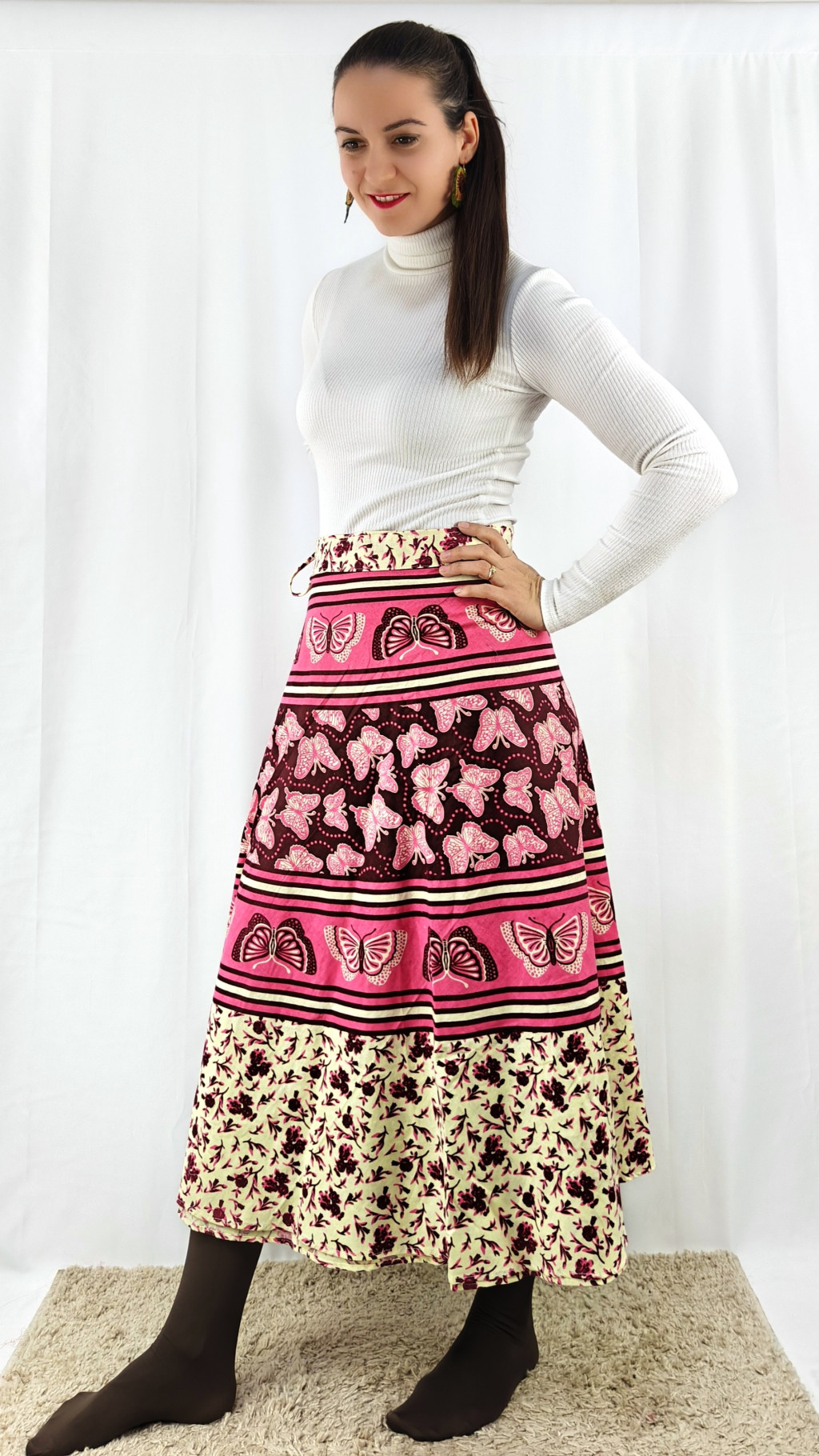 Könnyed, indiai mintás pamut lapszoknya, ami a tavasztól őszig igazi kedvenced lehet. Anyaga 100% pamut – természetes, légáteresztő, kellemes viselet,