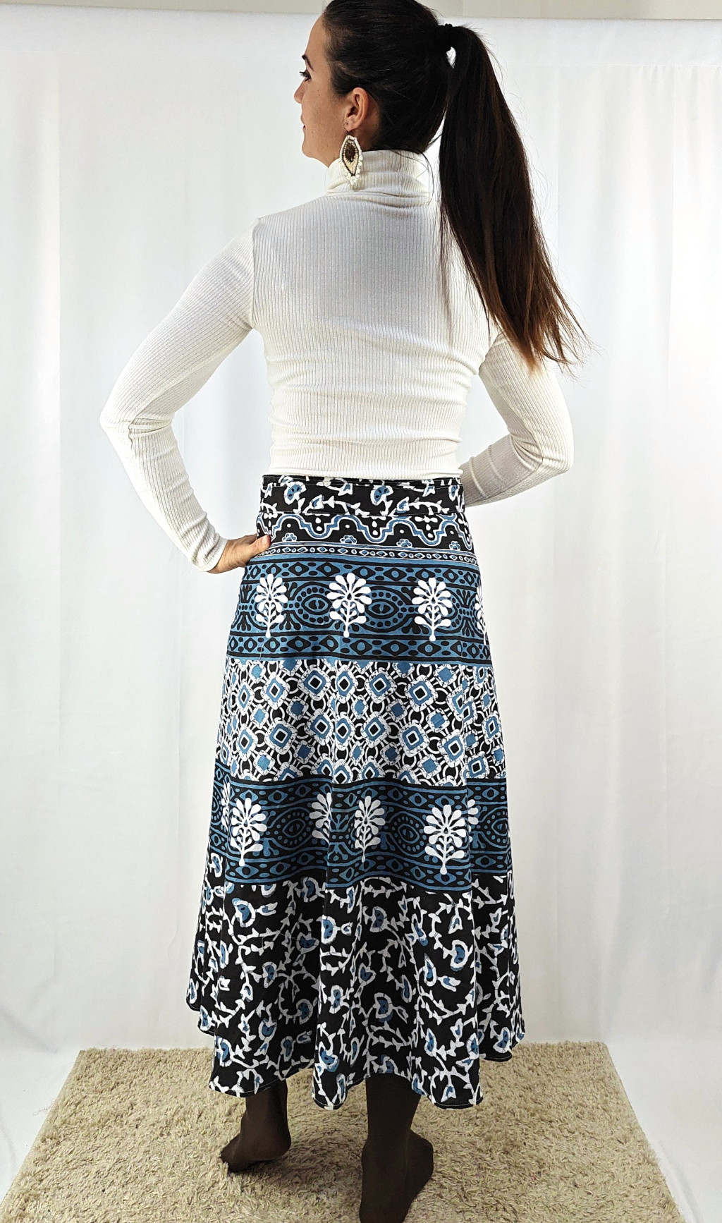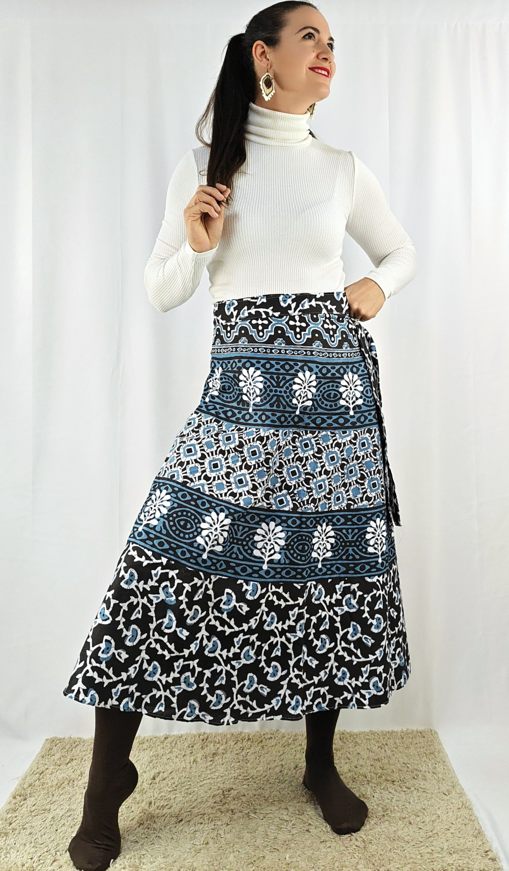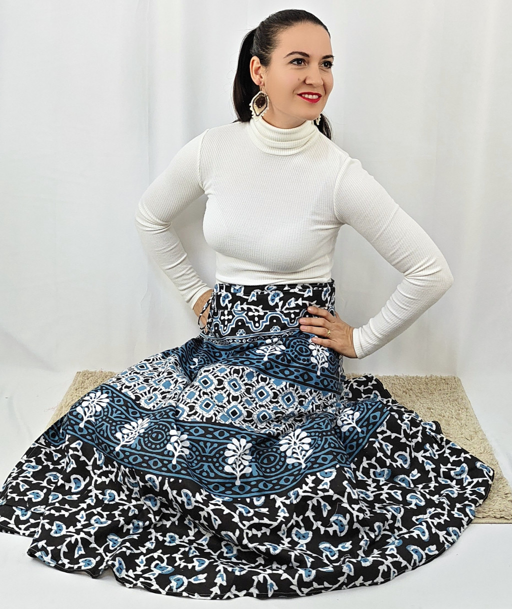 Könnyed, indiai mintás pamut lapszoknya, ami a tavasztól őszig igazi kedvenced lehet. Anyaga 100% pamut – természetes, légáteresztő, kellemes viselet,