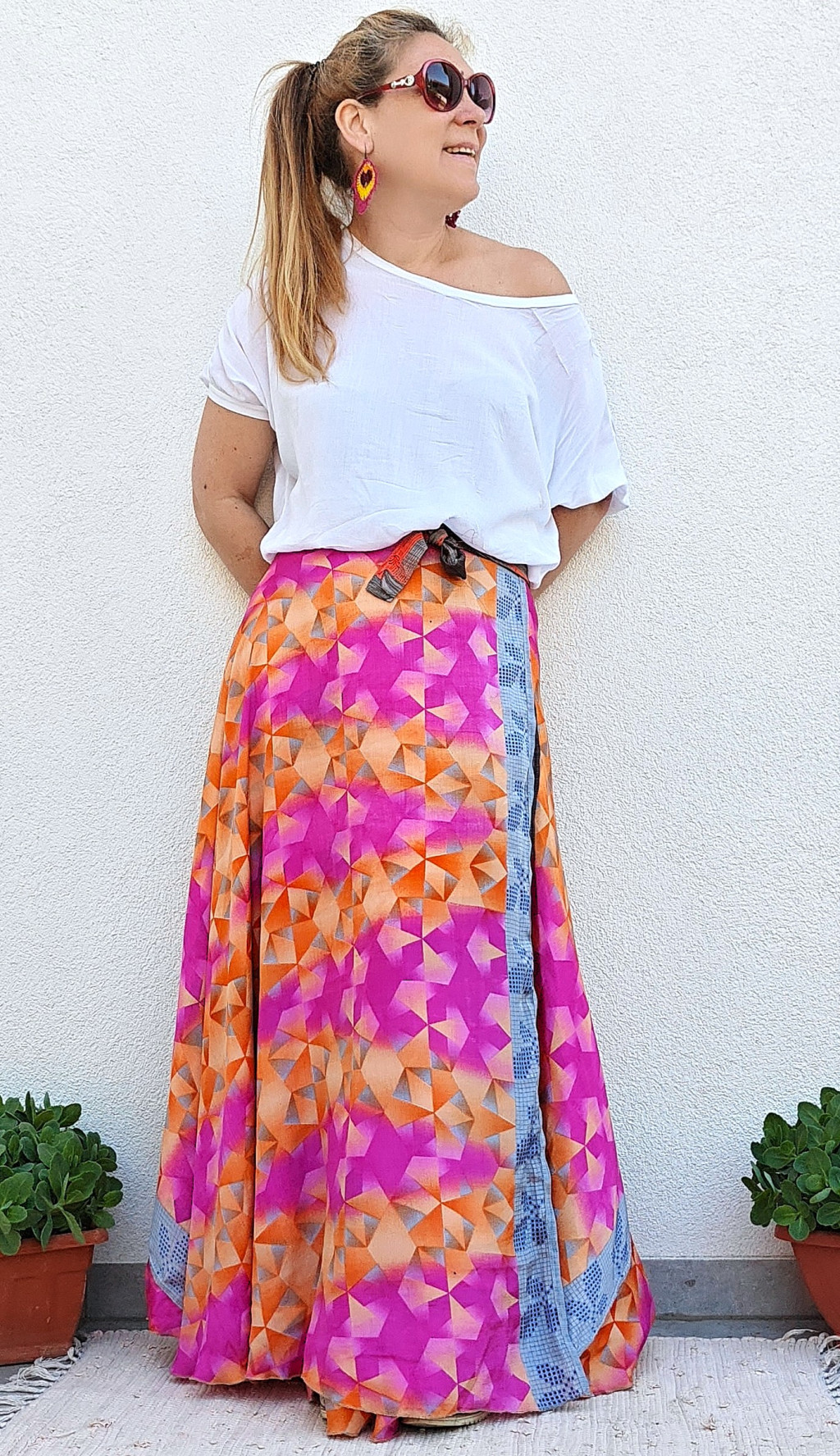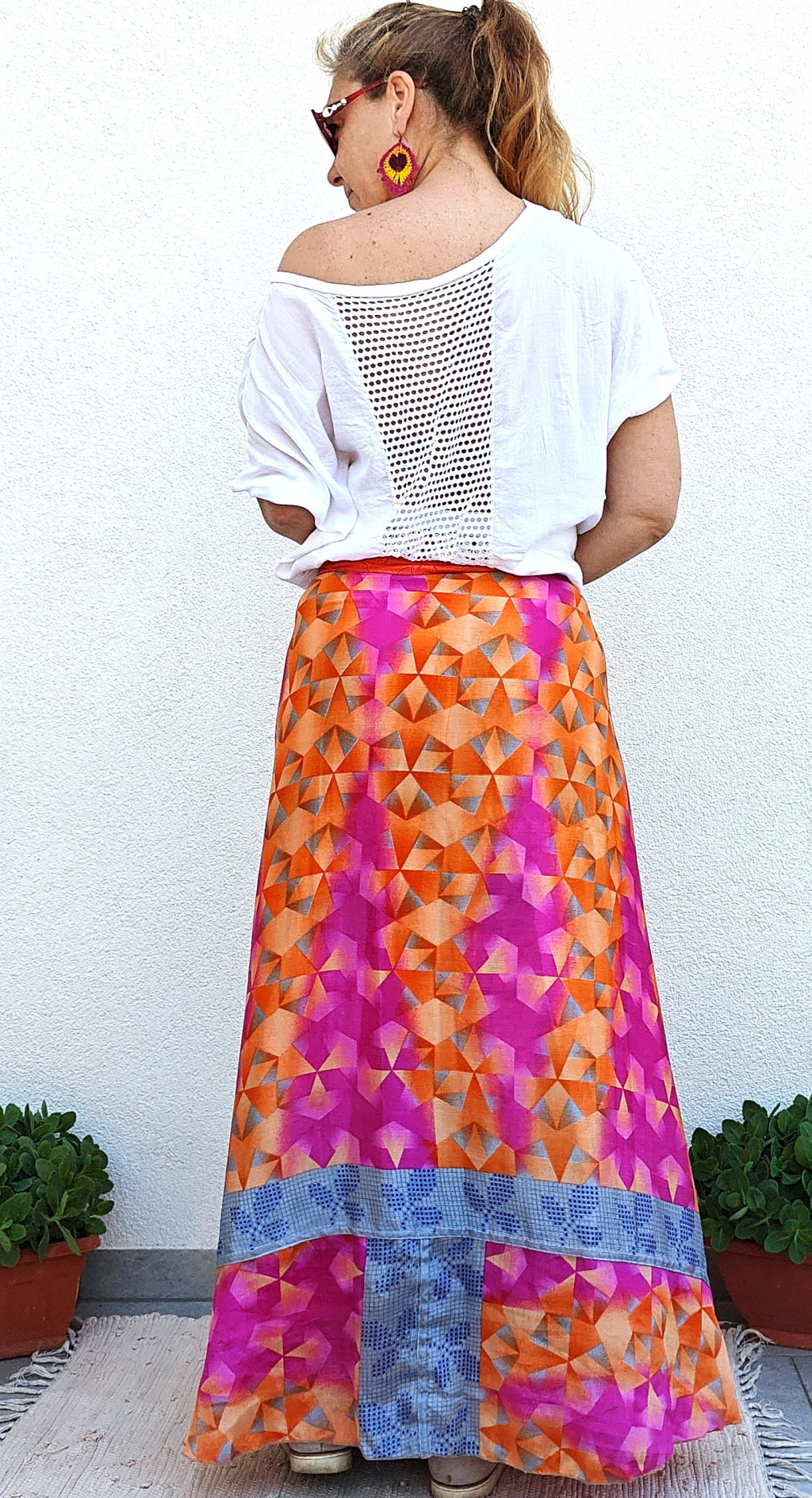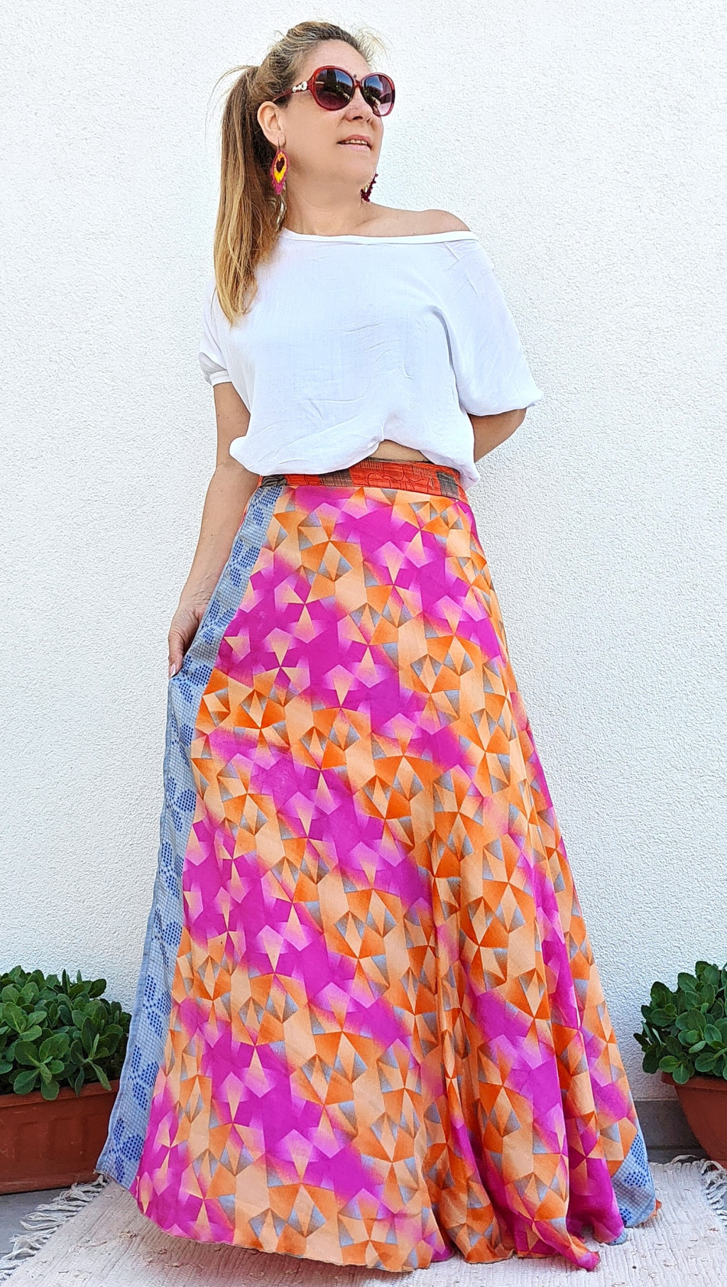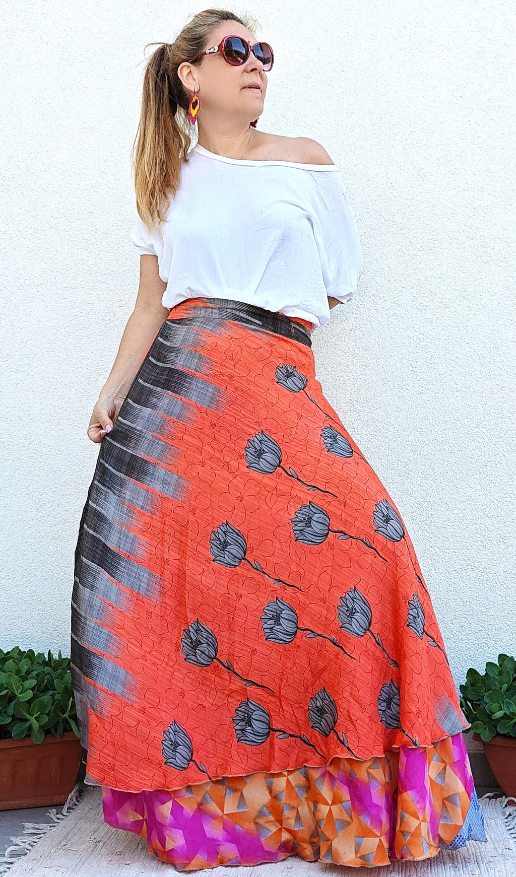 Lapszoknyáink újrahasznosított szárikból készülnek Indiában, egy hosszabb és egy rövidebb anyag derékban összevarrva! Kifordítható, mindkét oldala hordható, sokféleképpen köthető, variálható. Szoknyáinkból nincs két egyforma, mindegyikből csak EGY darab van, ha megtetszik, csapj le rá!