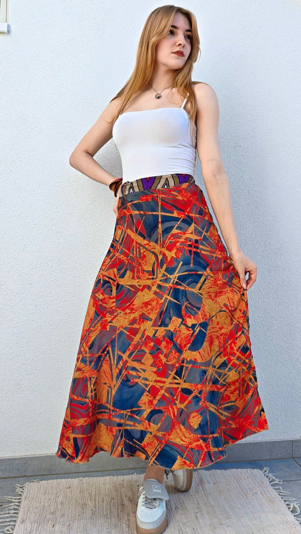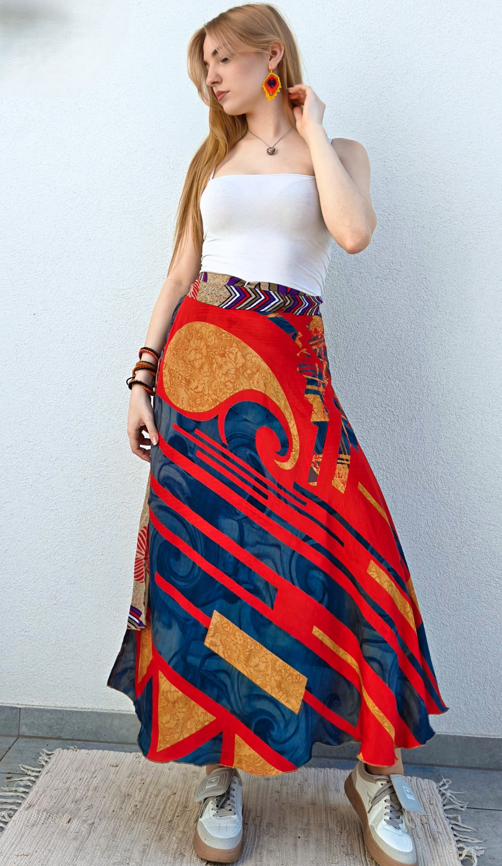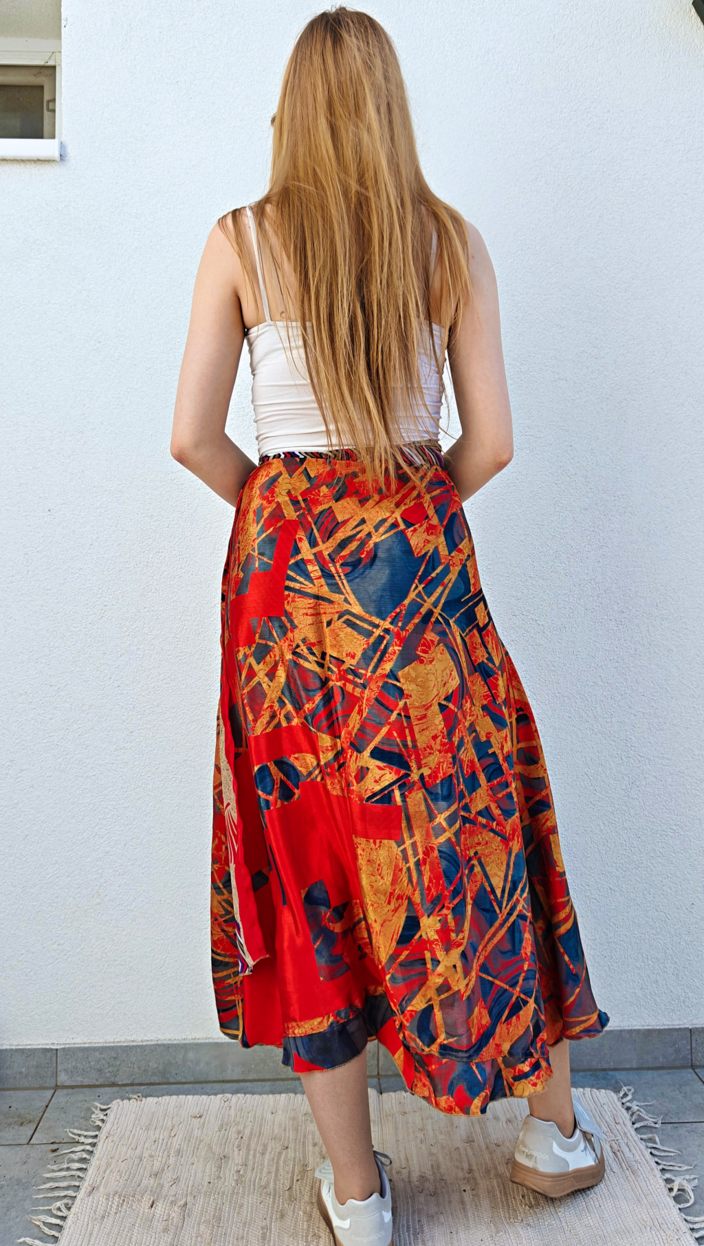 Lapszoknyáink újrahasznosított szárikból készülnek Indiában, egy hosszabb és egy rövidebb anyag derékban összevarrva! Két oldalú, kifordítható, mindkét oldala hordható, sokféleképpen köthető, variálható. Szoknyáinkból nincs két egyforma, mindegyikből csak EGY darab van, ha megtetszik, csapj le rá!