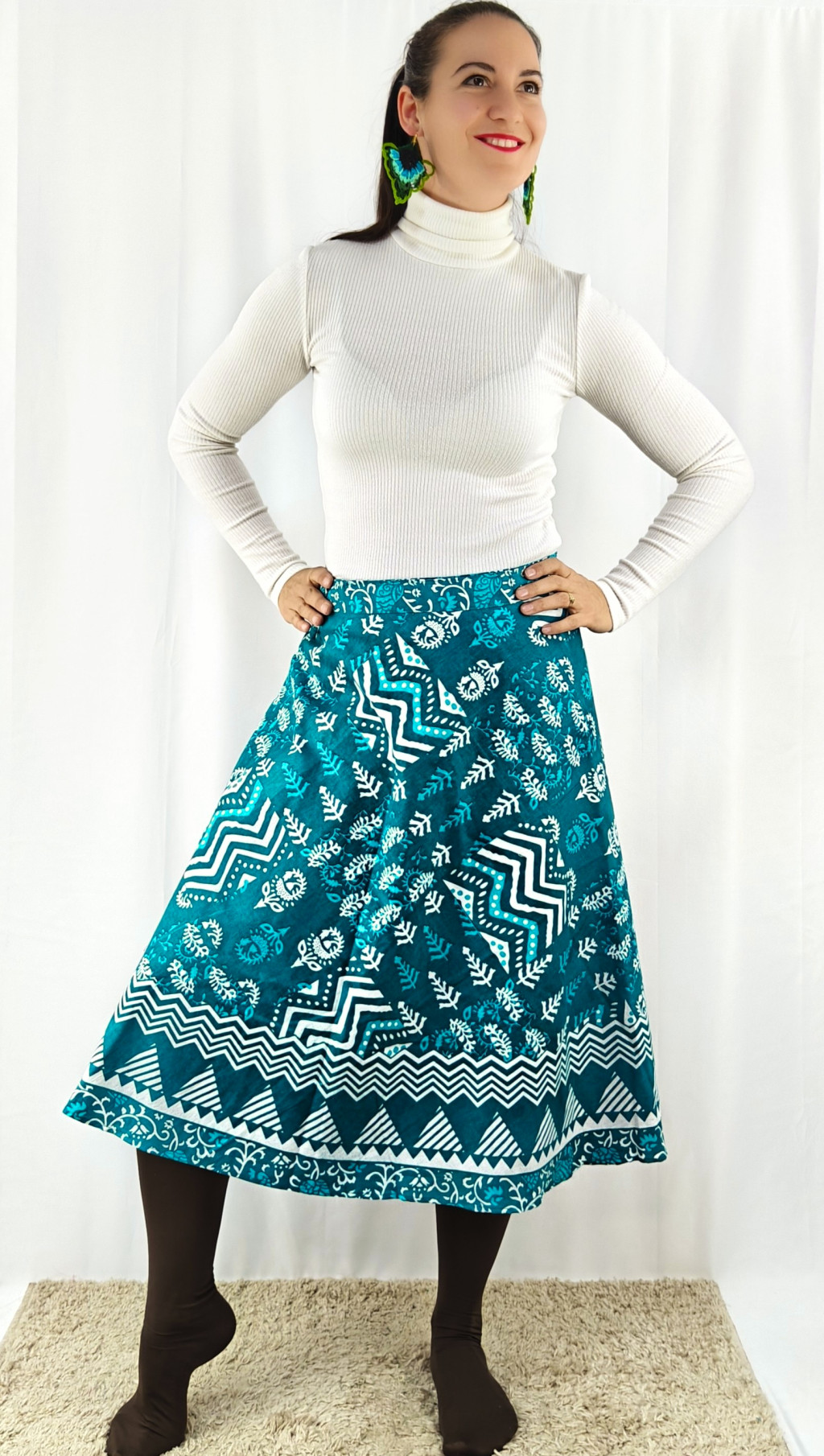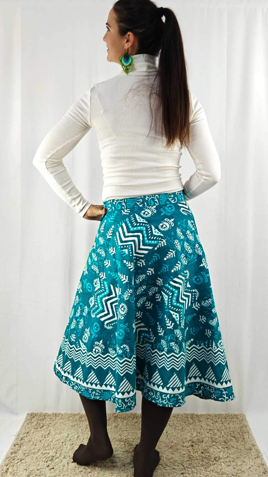 Könnyed, indiai mintás pamut lapszoknya, ami a tavasztól őszig igazi kedvenced lehet. Anyaga 100% pamut – természetes, légáteresztő, kellemes viselet,
