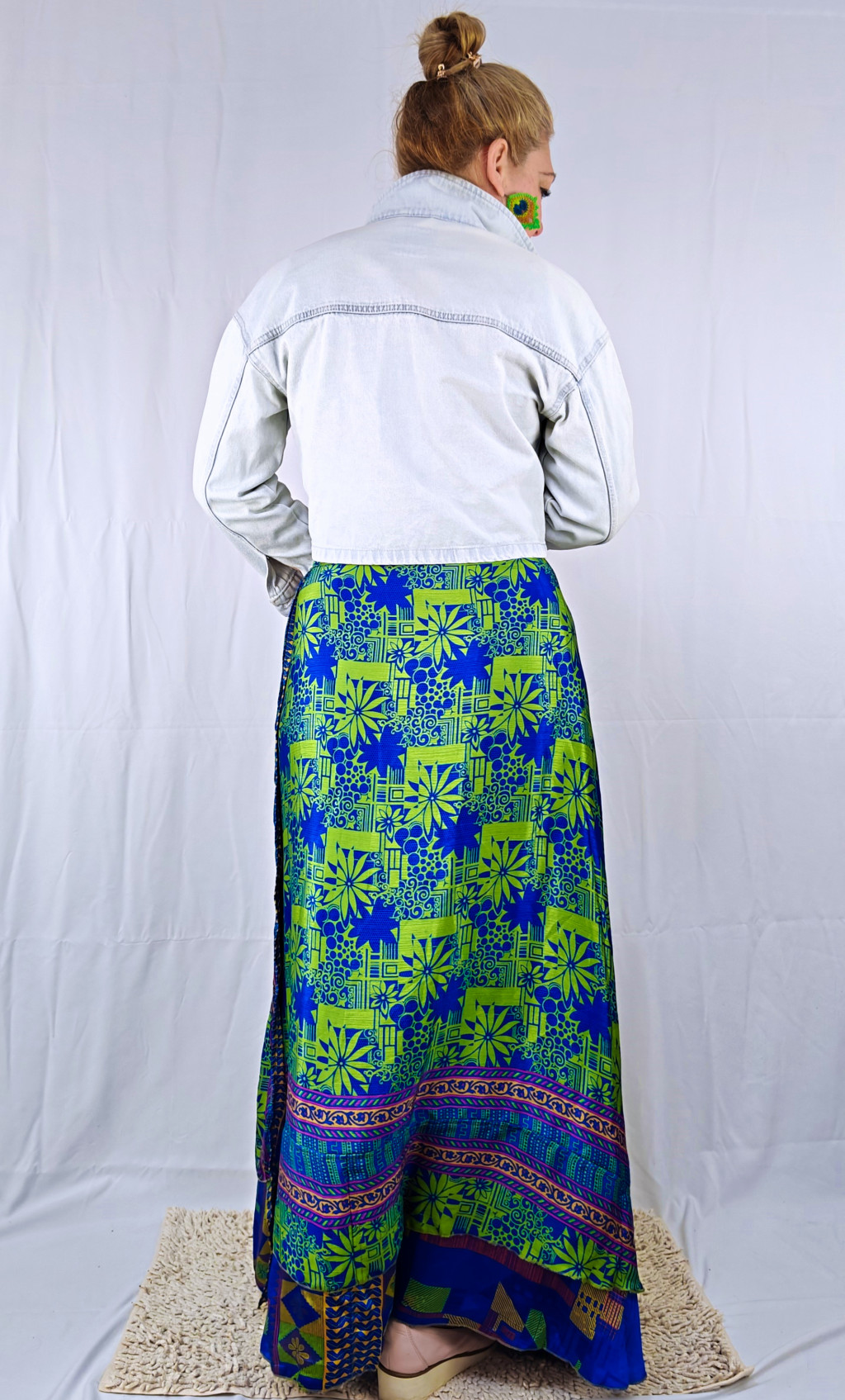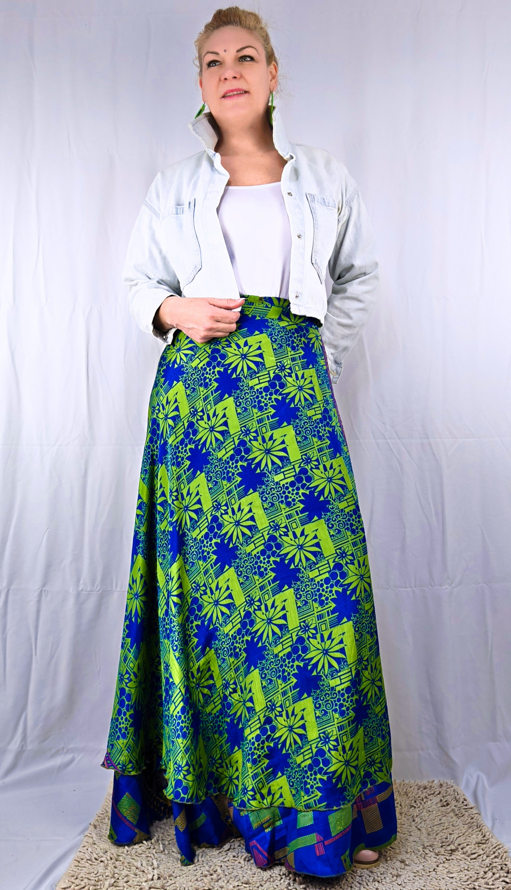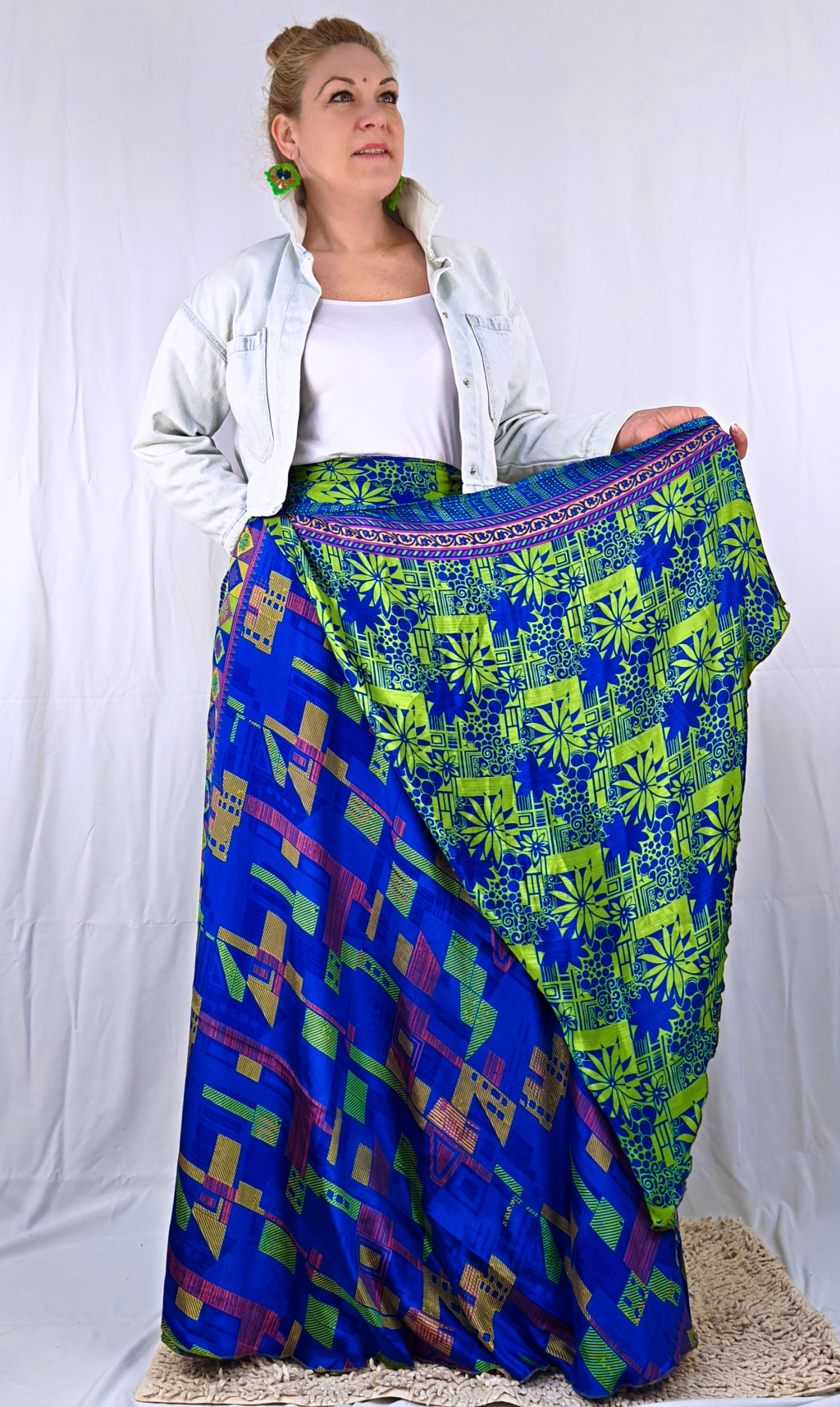 Lapszoknyáink újrahasznosított szárikból készülnek Indiában, egy hosszabb és egy rövidebb anyag derékban összevarrva! Két oldalú, kifordítható, mindkét oldala hordható, sokféleképpen köthető, variálható. Szoknyáinkból nincs két egyforma, mindegyikből csak EGY darab van, ha megtetszik, csapj le rá!