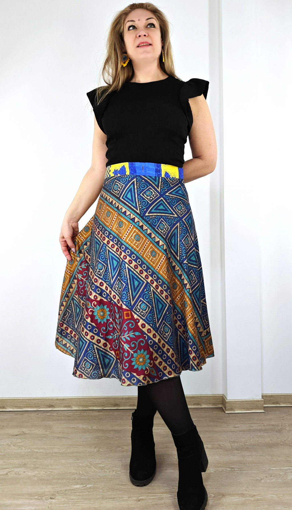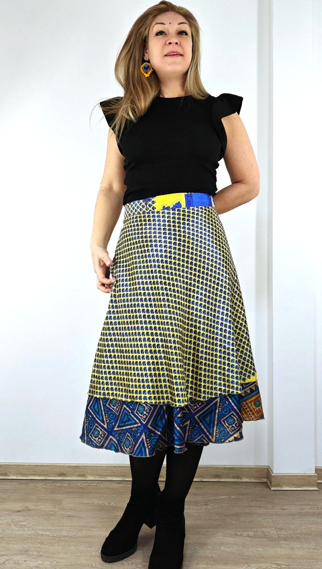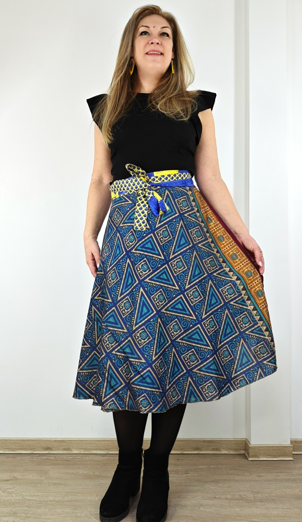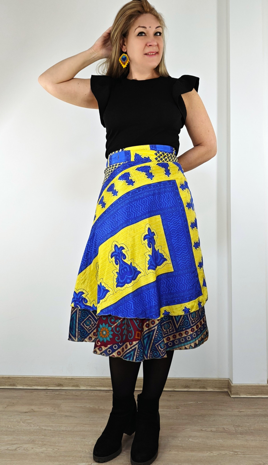 Lapszoknyáink újrahasznosított szárikból készülnek Indiában, egy hosszabb és egy rövidebb anyag derékban összevarrva! Két oldalú, kifordítható, mindkét oldala hordható, sokféleképpen köthető, variálható. Szoknyáinkból nincs két egyforma, mindegyikből csak EGY darab van, ha megtetszik, csapj le rá!
