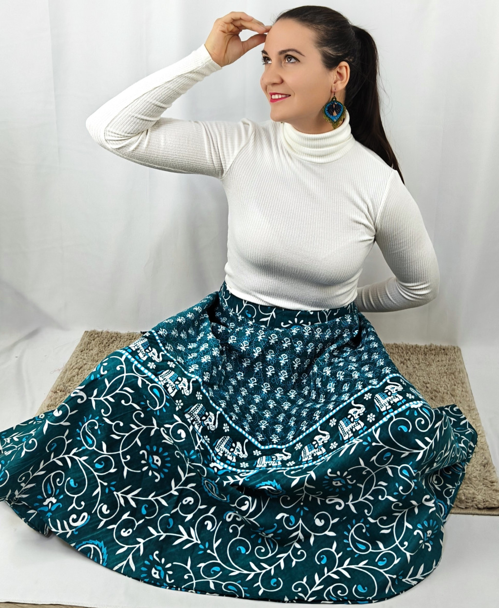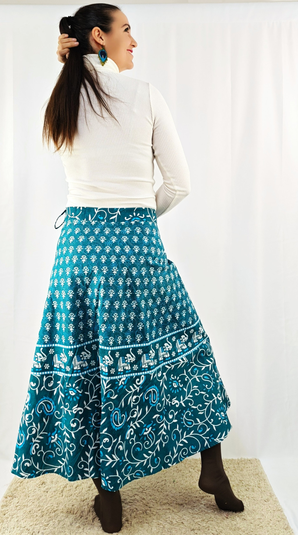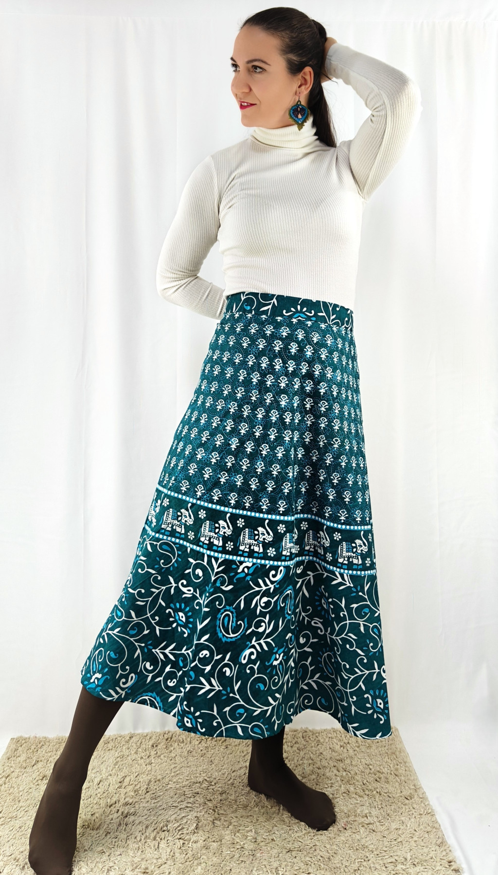 Könnyed, indiai mintás pamut lapszoknya, ami a tavasztól őszig igazi kedvenced lehet. Anyaga 100% pamut – természetes, légáteresztő, kellemes viselet,