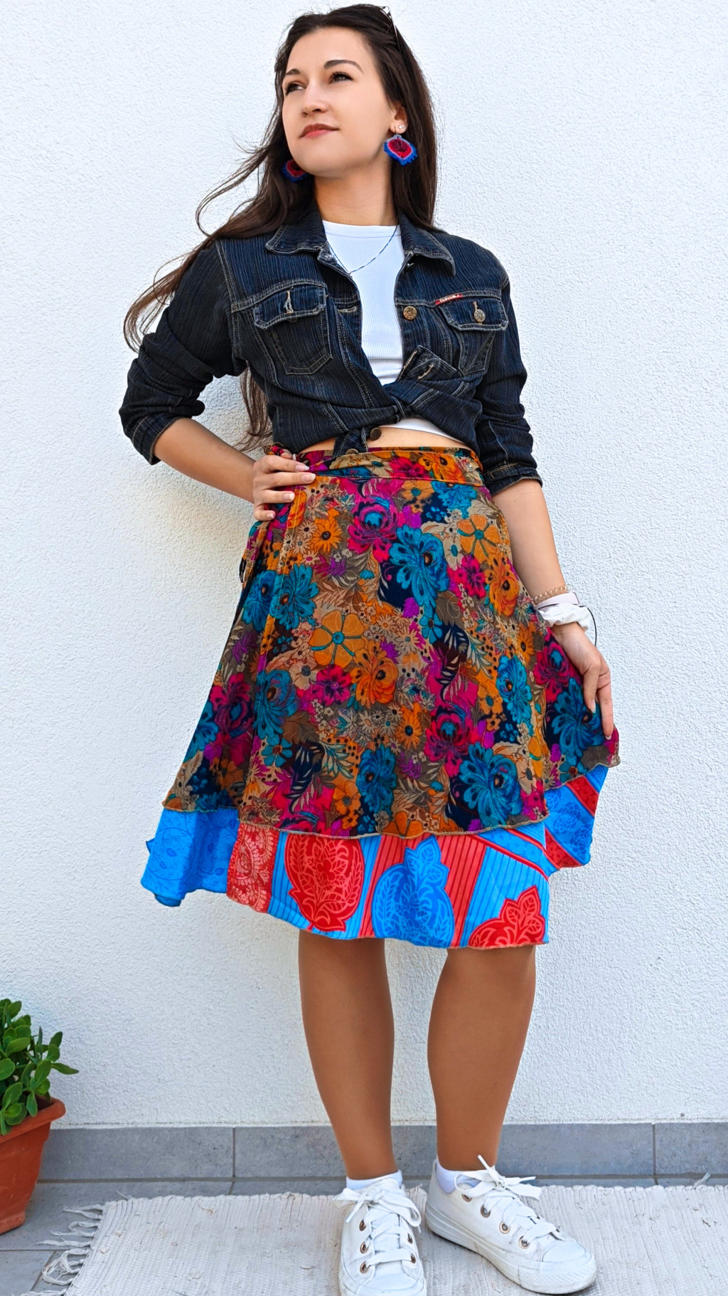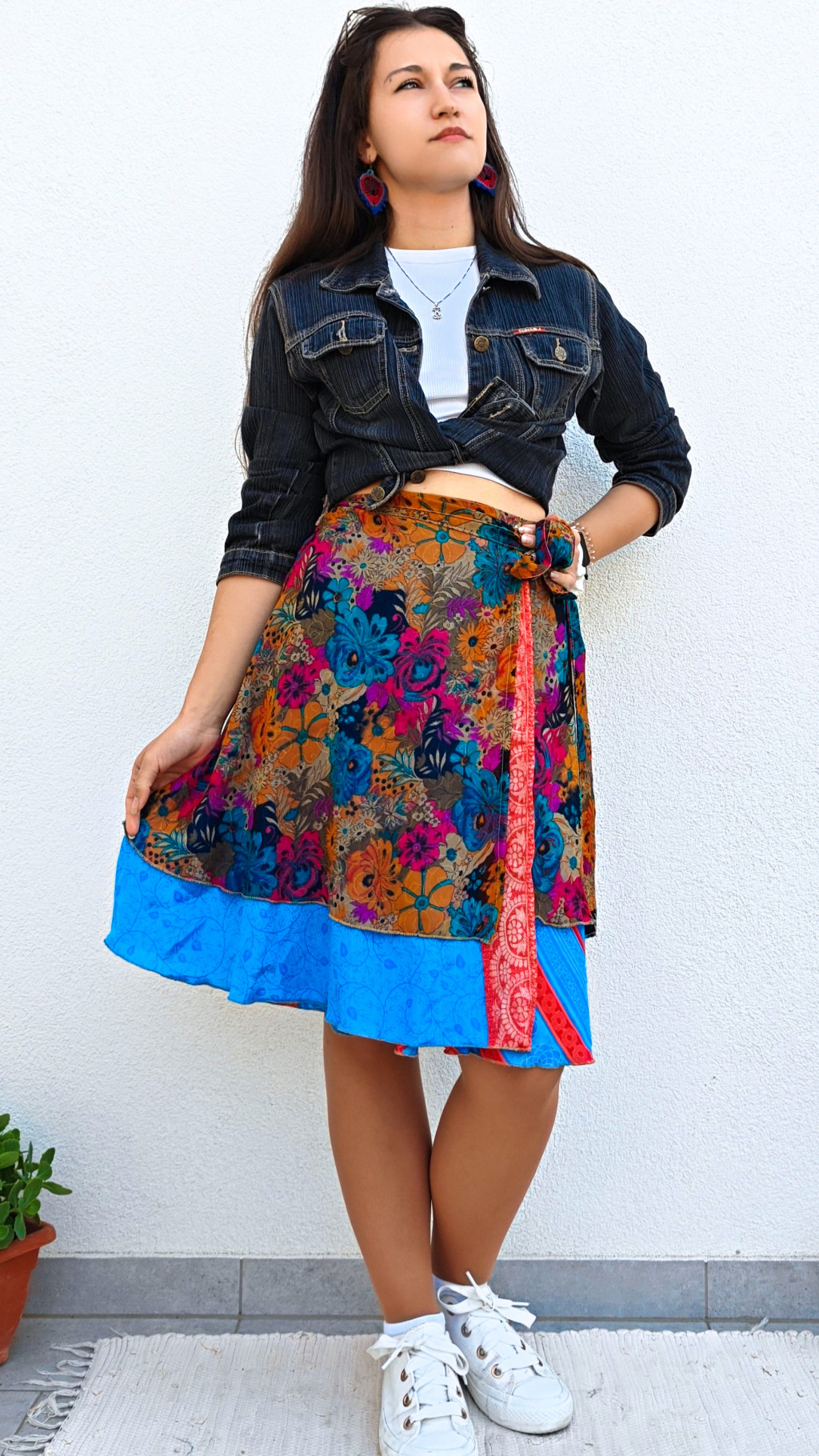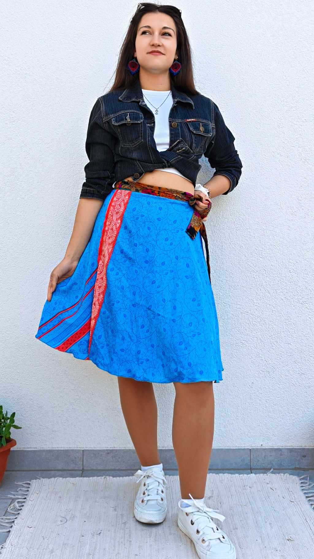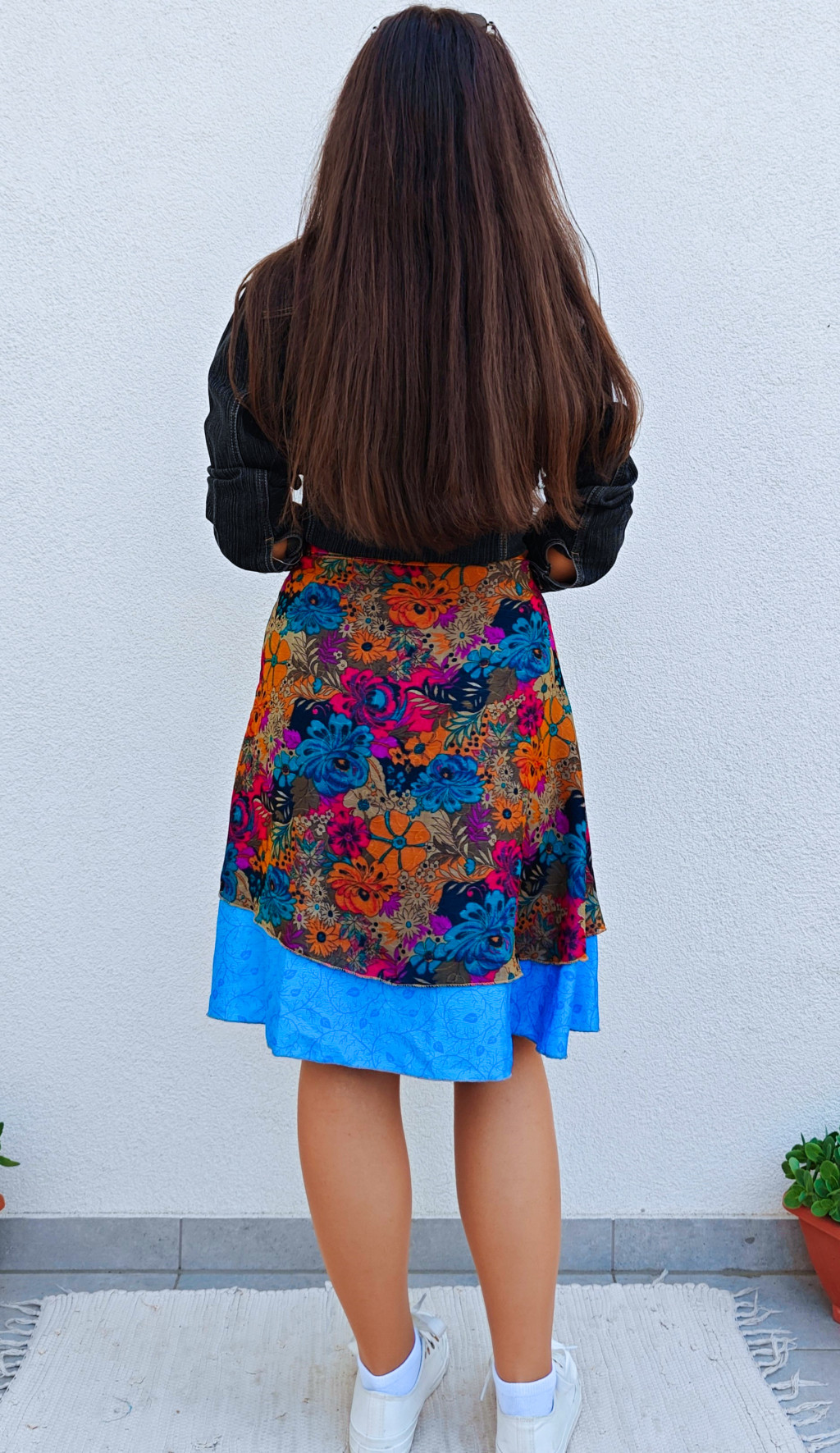 Lapszoknyáink újrahasznosított szárikból készülnek Indiában, egy hosszabb és egy rövidebb anyag derékban összevarrva! Két oldalú, kifordítható, mindkét oldala hordható, sokféleképpen köthető, variálható. Szoknyáinkból nincs két egyforma, mindegyikből csak EGY darab van, ha megtetszik, csapj le rá!