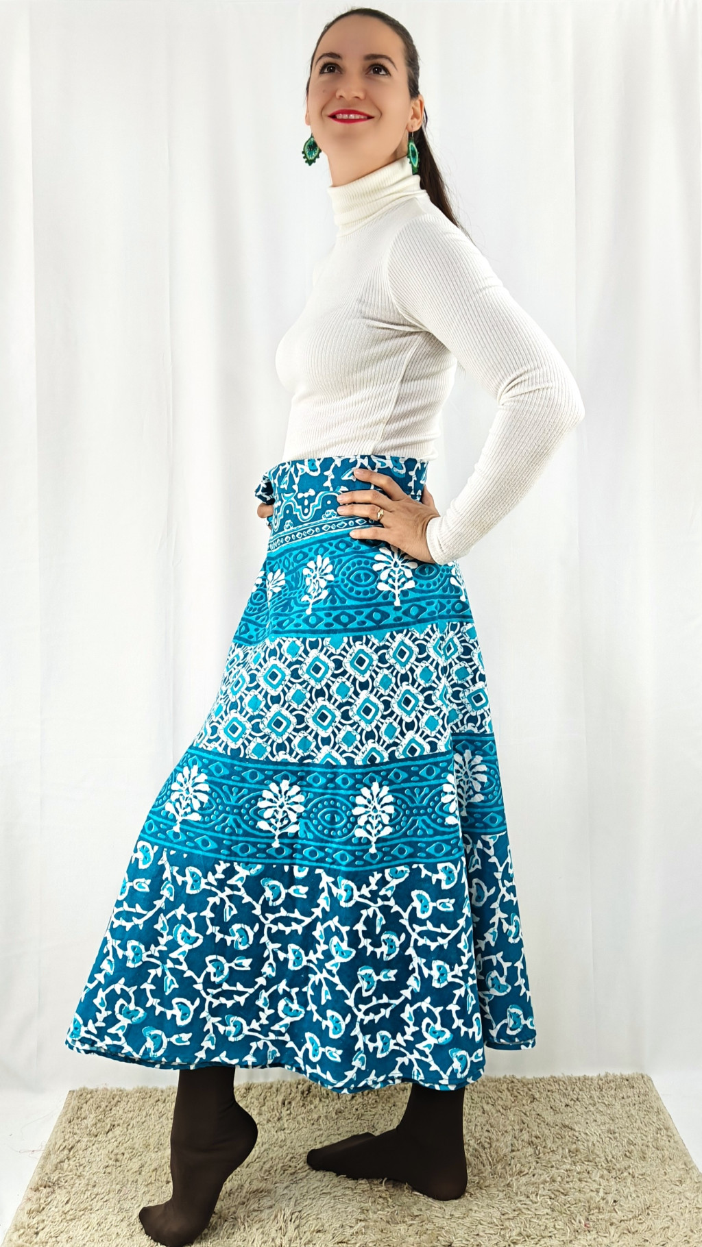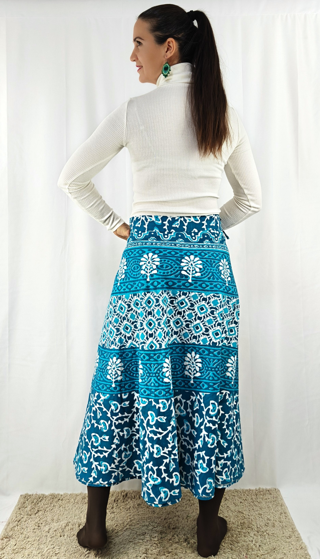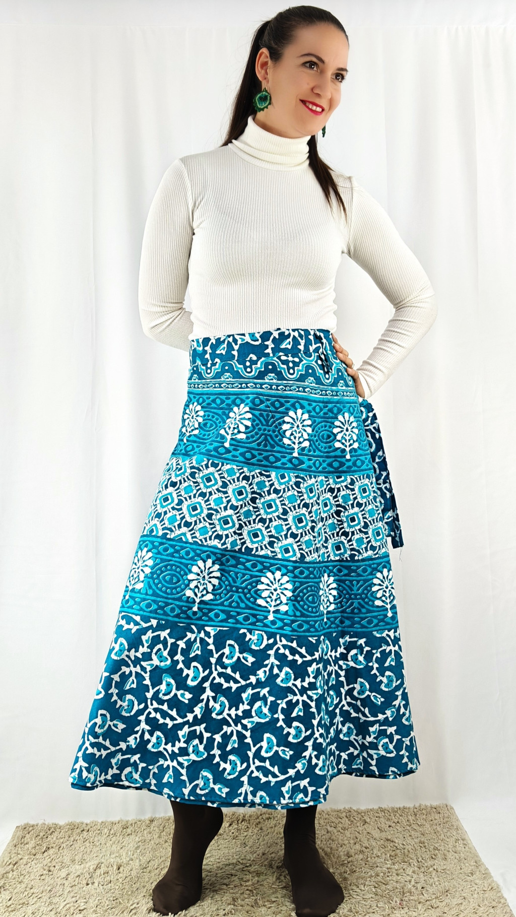 Könnyed, indiai mintás pamut lapszoknya, ami a tavasztól őszig igazi kedvenced lehet. Anyaga 100% pamut – természetes, légáteresztő, kellemes viselet,