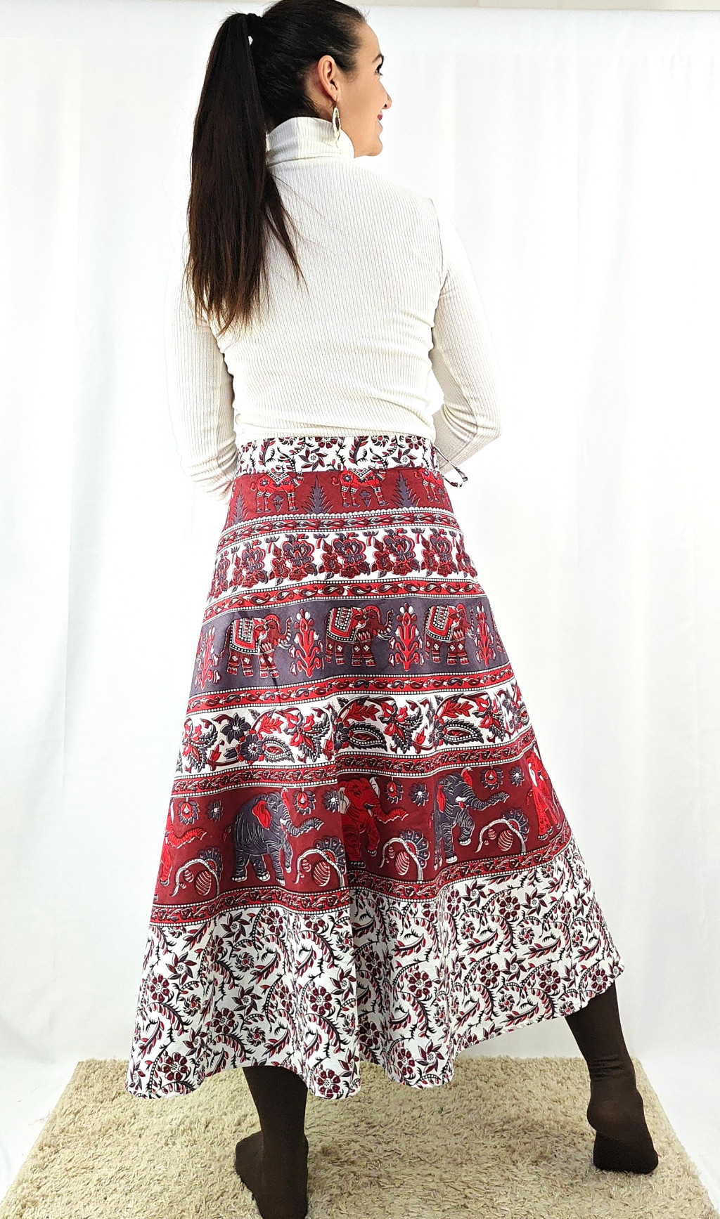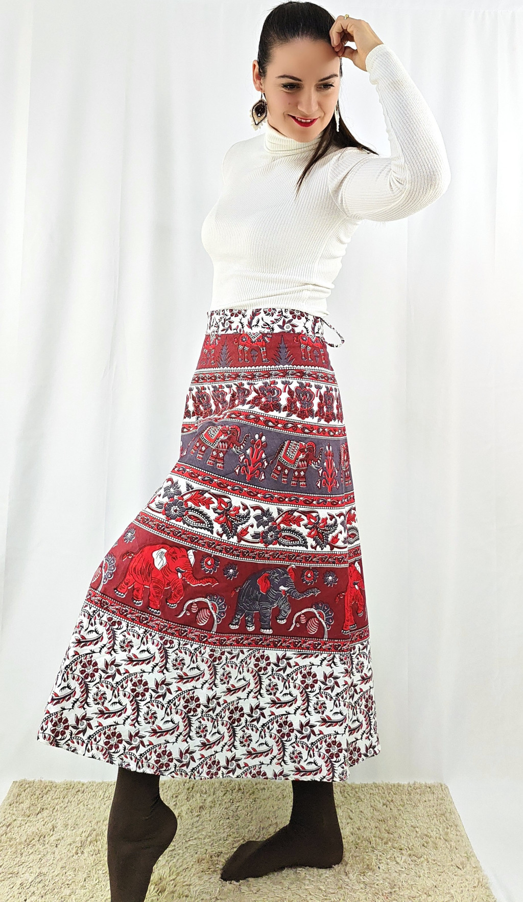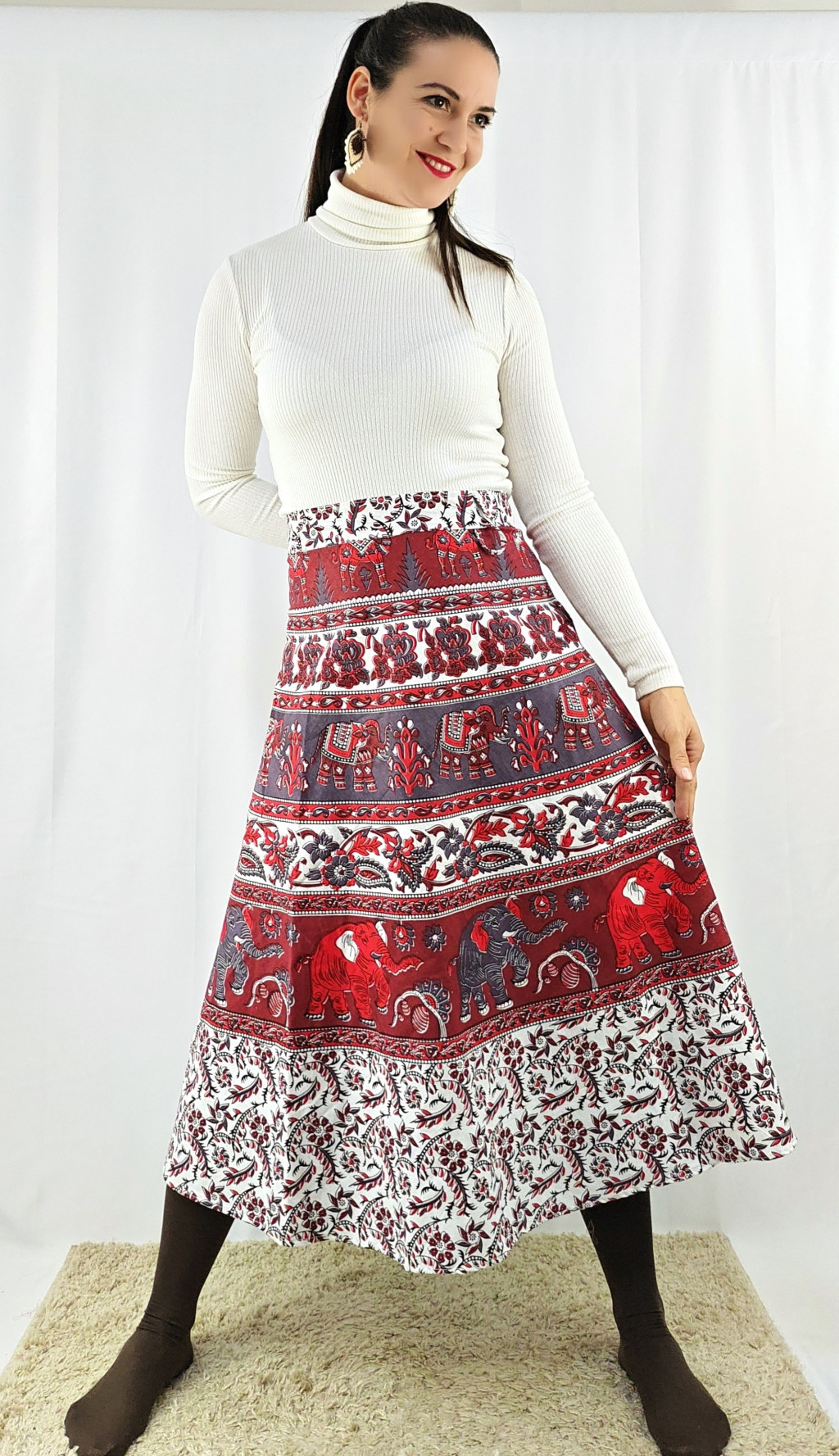 Könnyed, indiai mintás pamut lapszoknya, ami a tavasztól őszig igazi kedvenced lehet. Anyaga 100% pamut – természetes, légáteresztő, kellemes viselet,