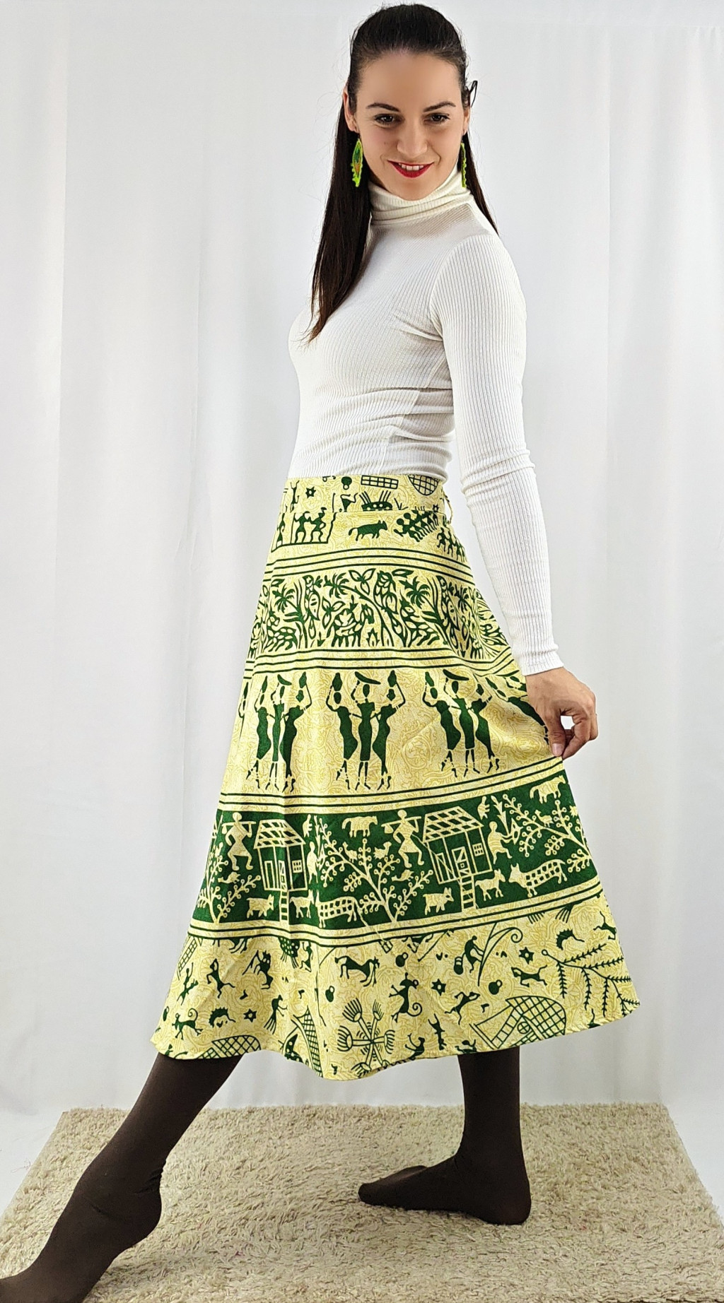 Könnyed, indiai mintás pamut lapszoknya, ami a tavasztól őszig igazi kedvenced lehet. Anyaga 100% pamut – természetes, légáteresztő, kellemes viselet,