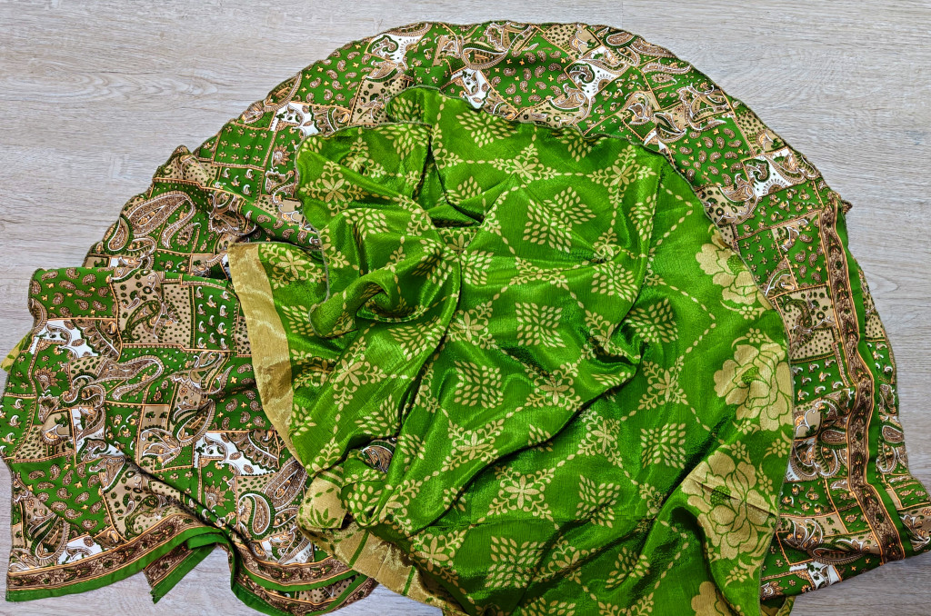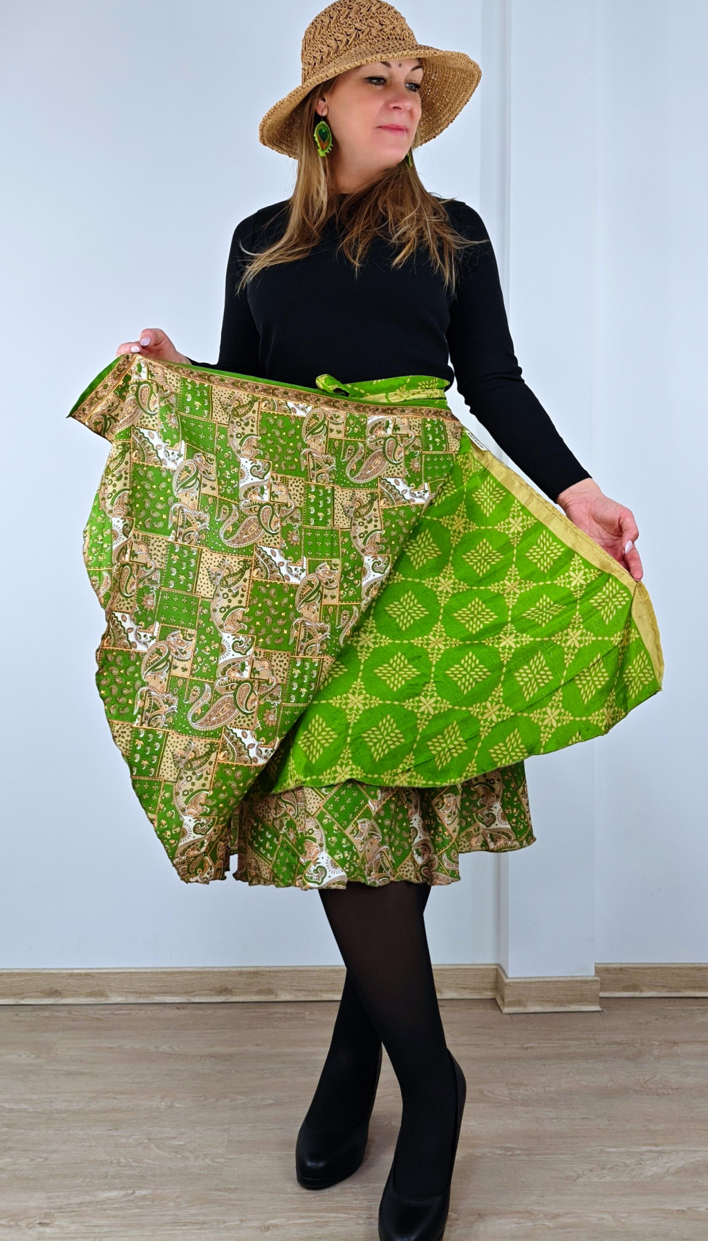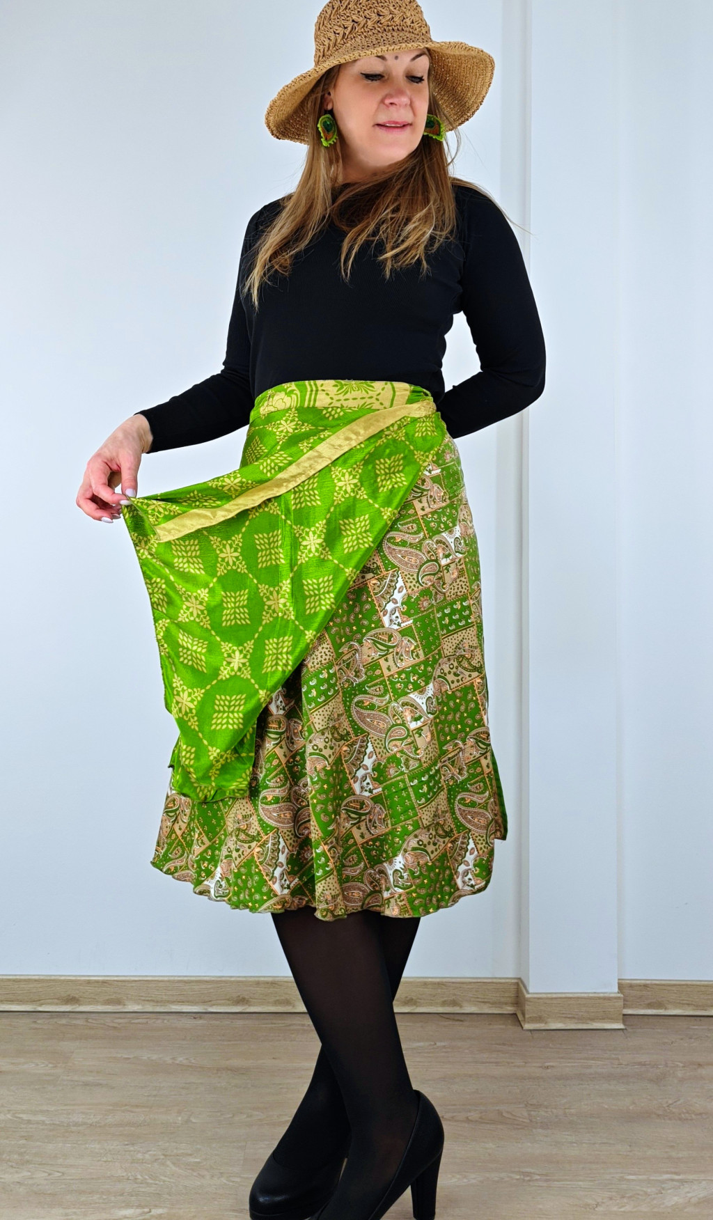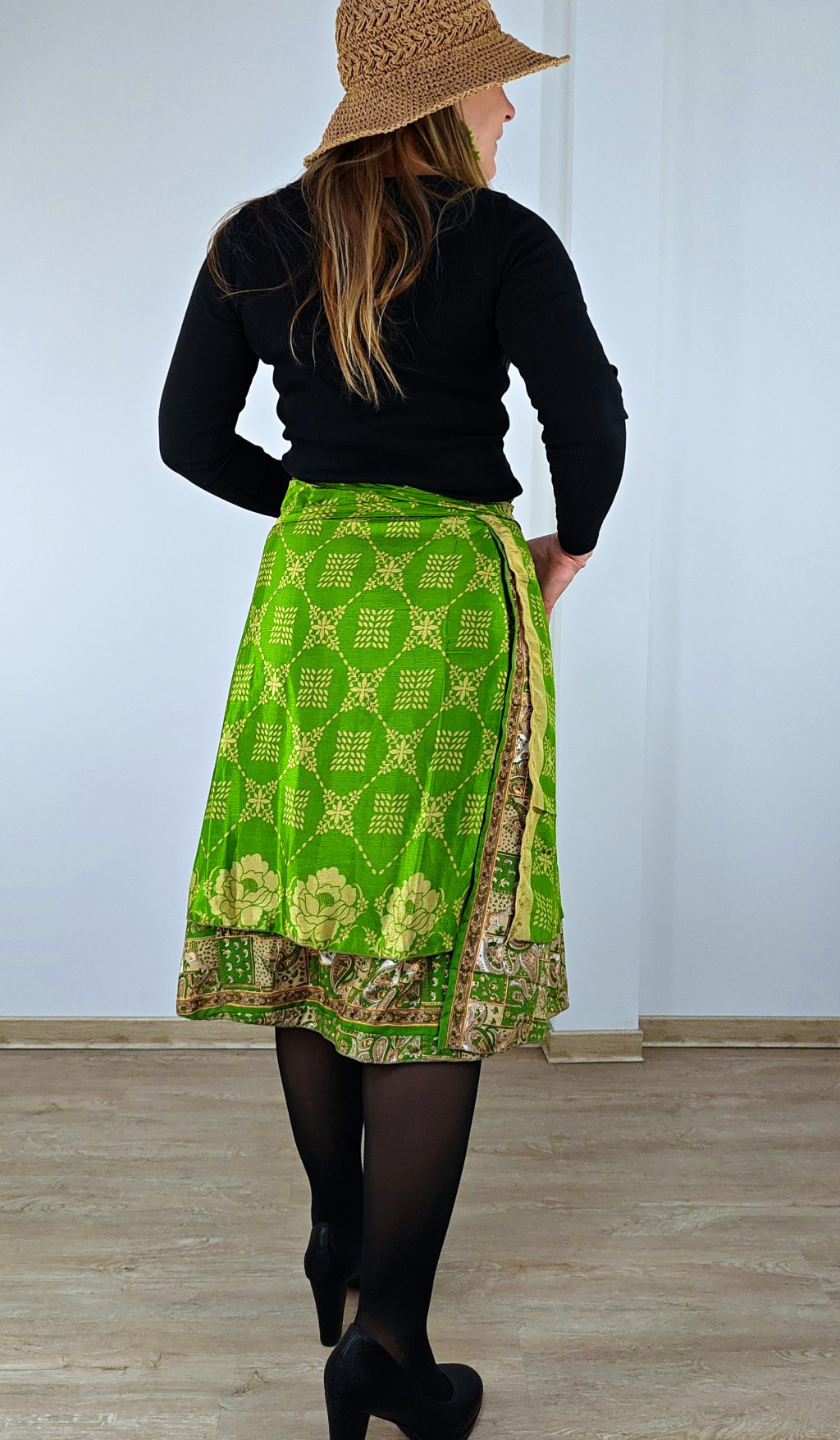 Lapszoknyáink újrahasznosított szárikból készülnek Indiában, egy hosszabb és egy rövidebb anyag derékban összevarrva! Két oldalú, kifordítható, mindkét oldala hordható, sokféleképpen köthető, variálható. Szoknyáinkból nincs két egyforma, mindegyikből csak EGY darab van, ha megtetszik, csapj le rá!