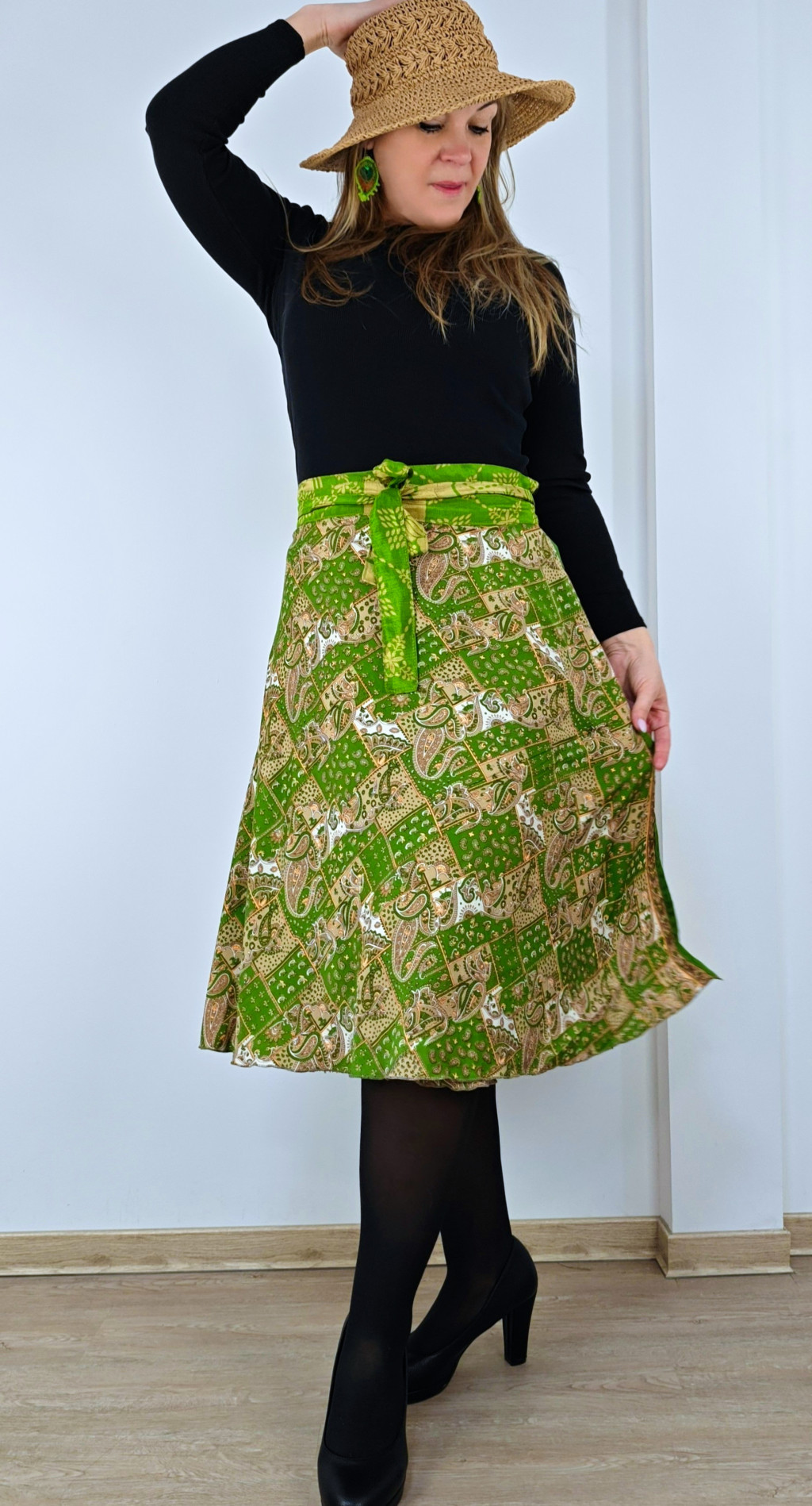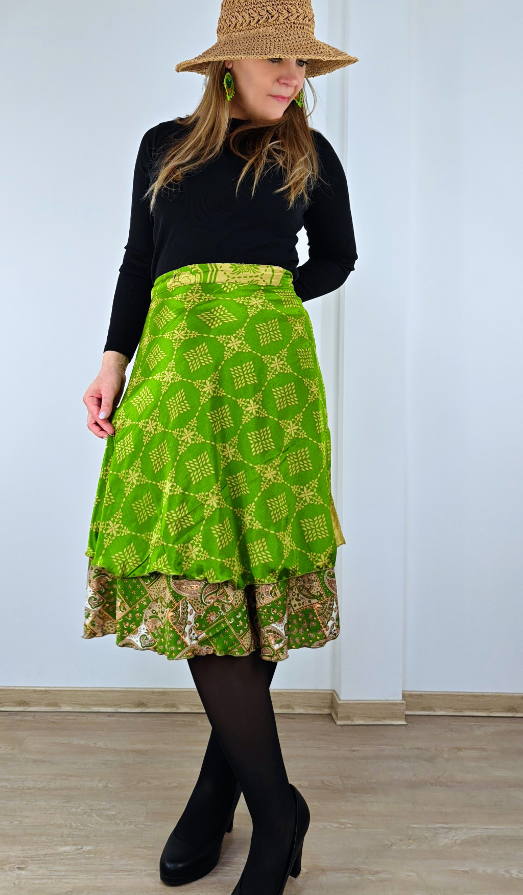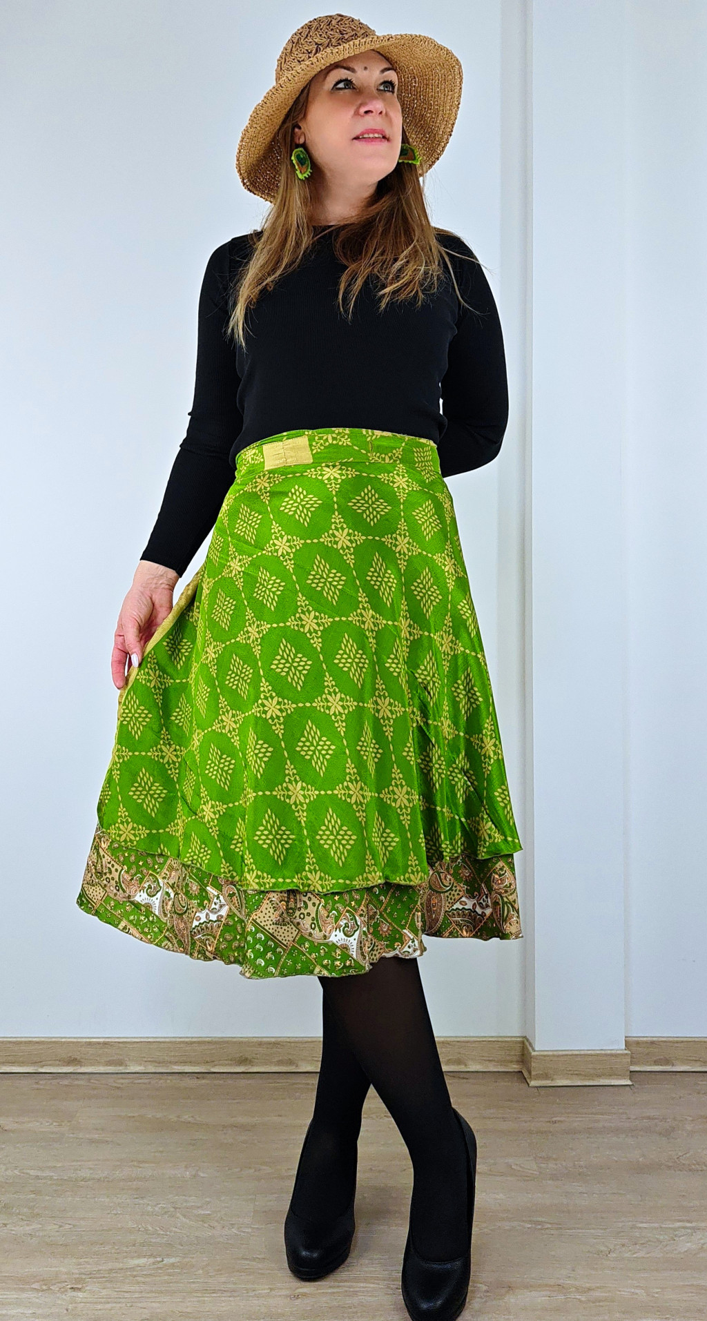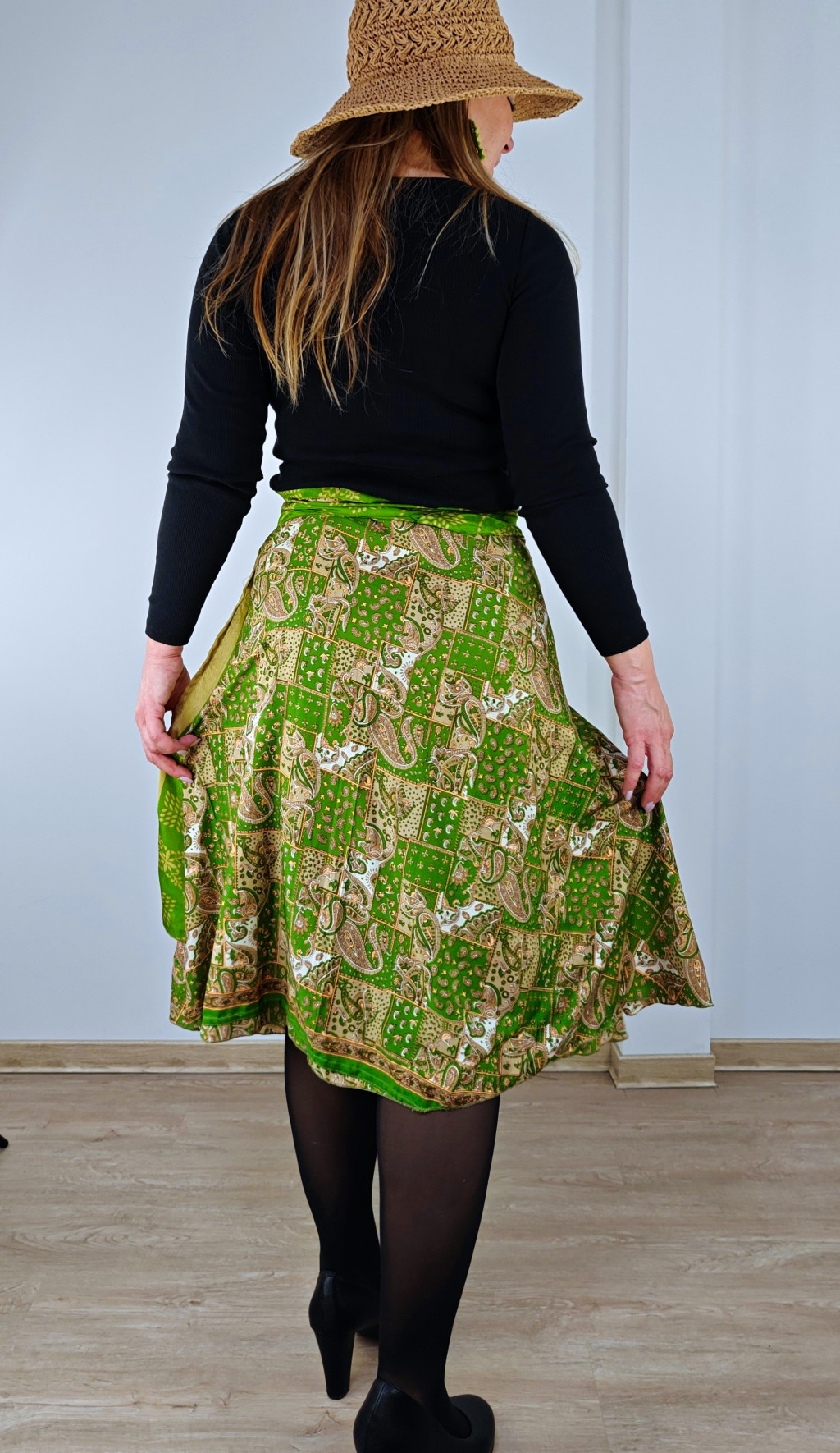 Lapszoknyáink újrahasznosított szárikból készülnek Indiában, egy hosszabb és egy rövidebb anyag derékban összevarrva! Két oldalú, kifordítható, mindkét oldala hordható, sokféleképpen köthető, variálható. Szoknyáinkból nincs két egyforma, mindegyikből csak EGY darab van, ha megtetszik, csapj le rá!
