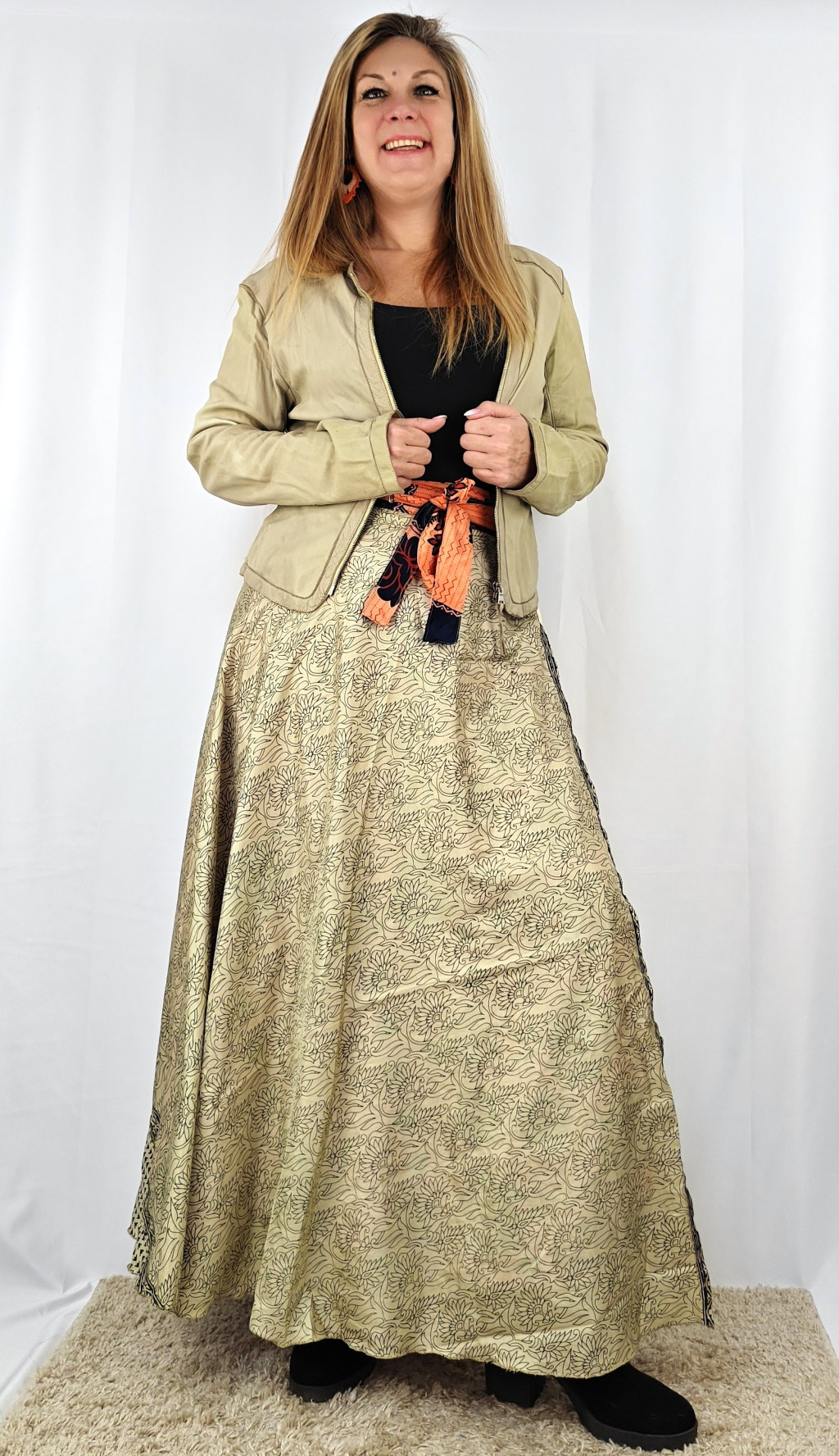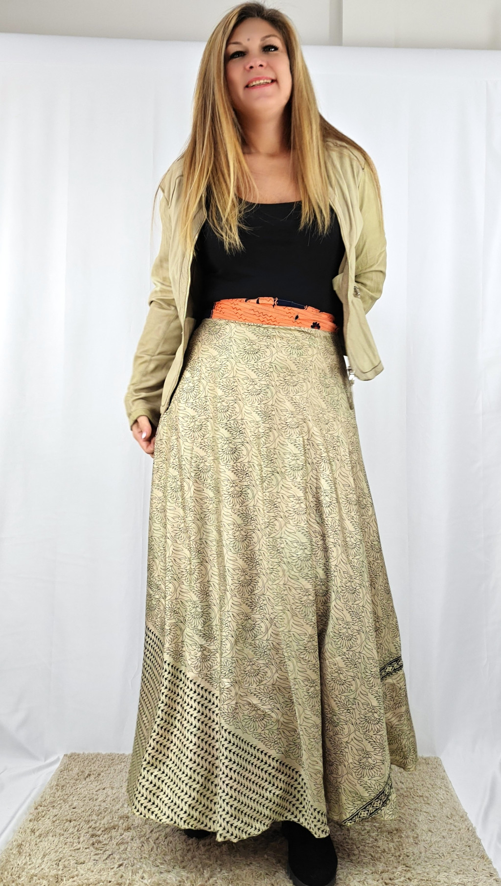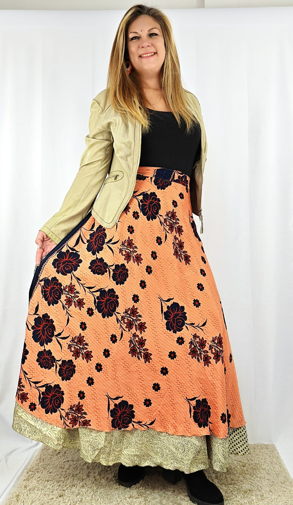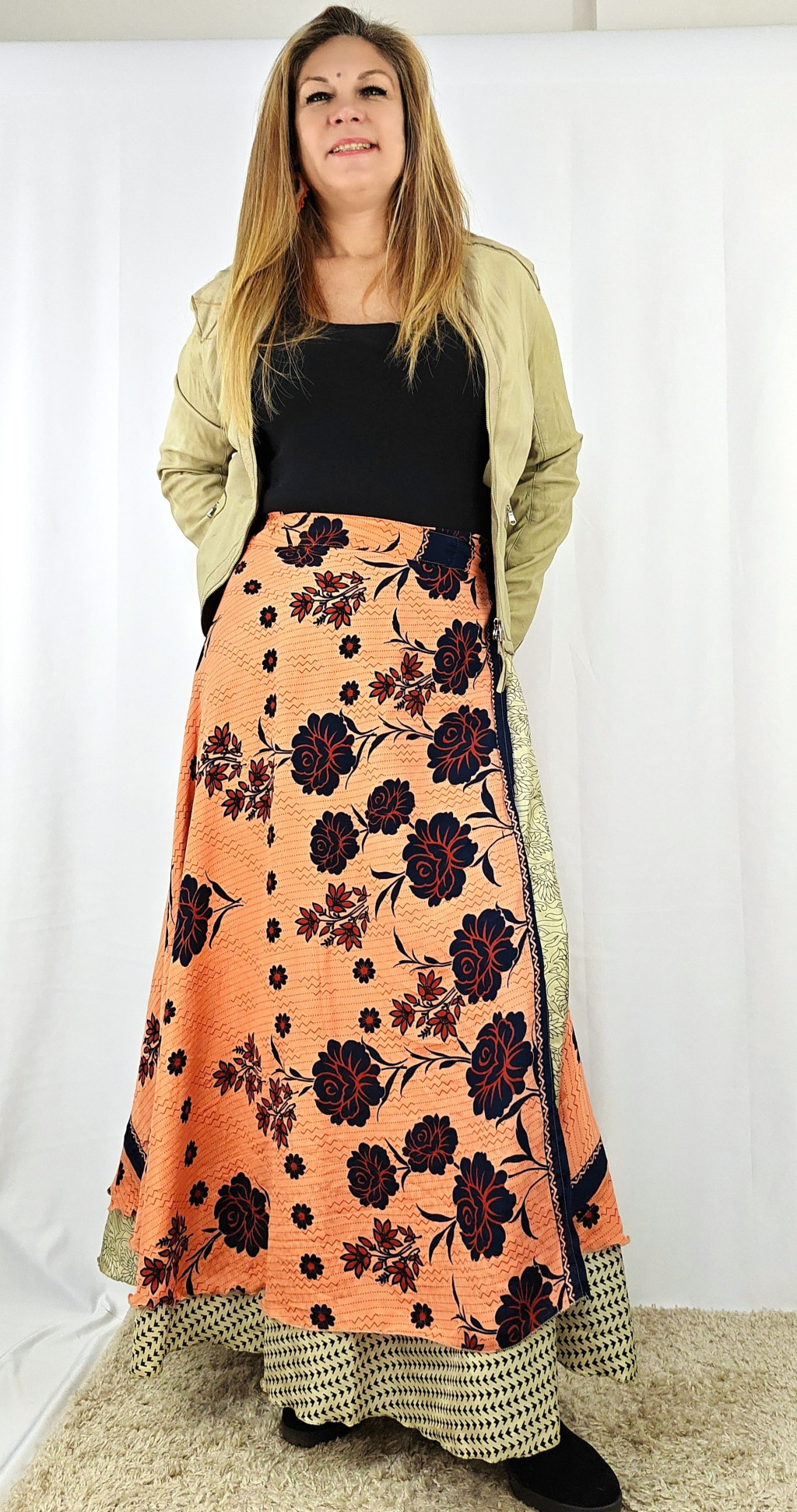 Lapszoknyáink újrahasznosított szárikból készülnek Indiában, egy hosszabb és egy rövidebb anyag derékban összevarrva! Két oldalú, kifordítható, mindkét oldala hordható, sokféleképpen köthető, variálható. Szoknyáinkból nincs két egyforma, mindegyikből csak EGY darab van, ha megtetszik, csapj le rá!