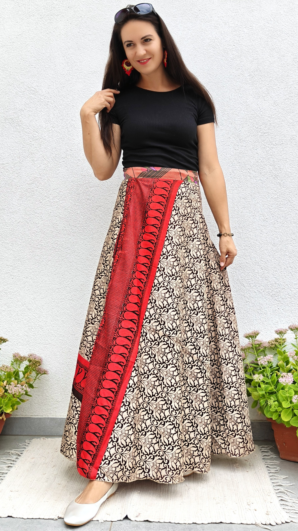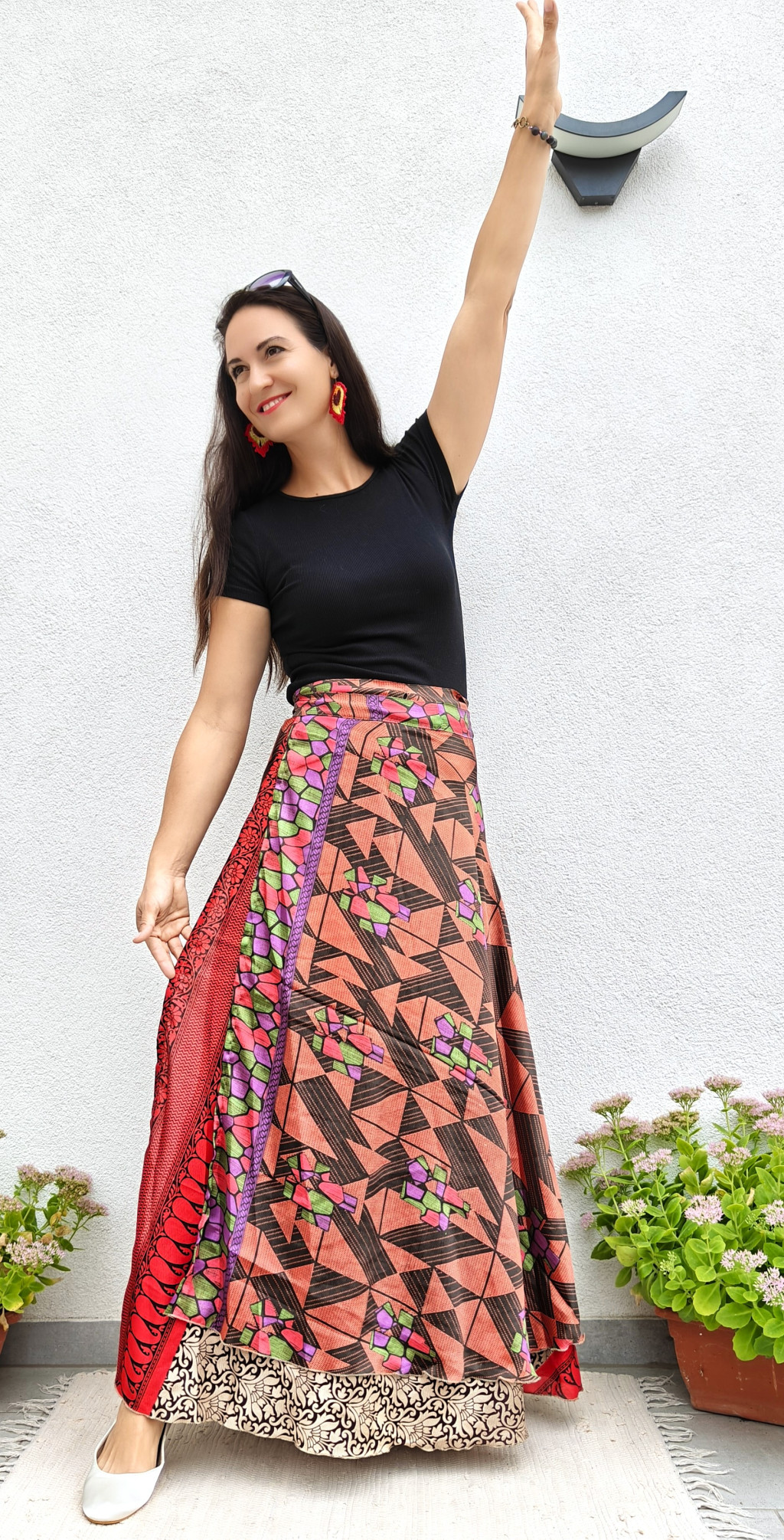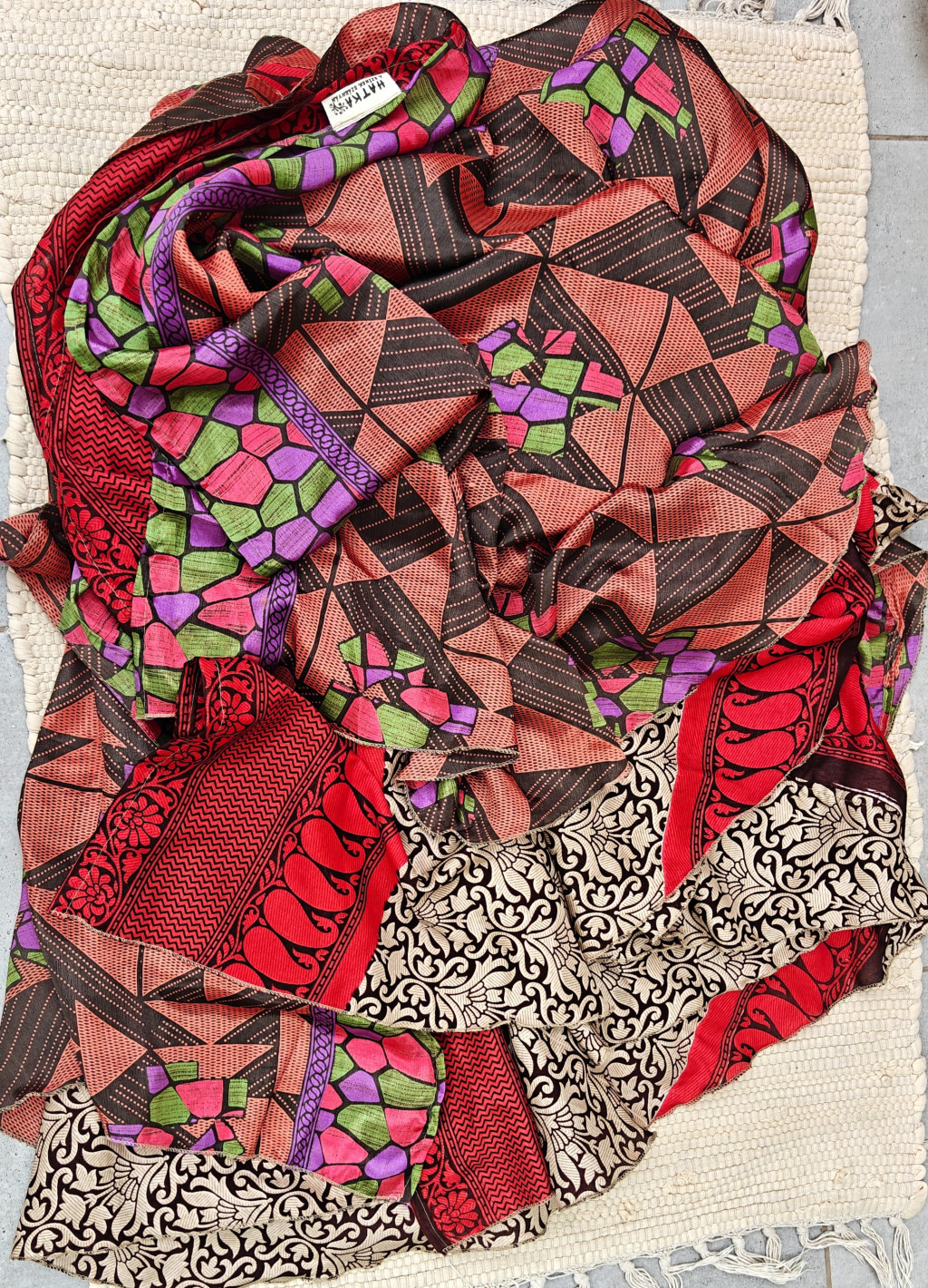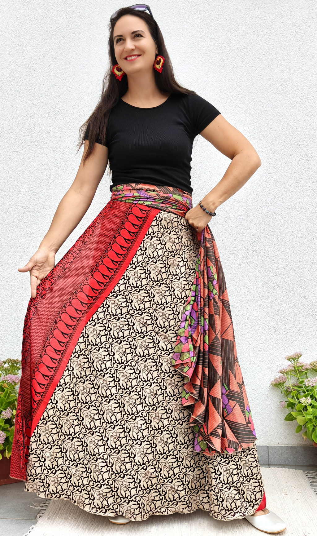 Lapszoknyáink újrahasznosított szárikból készülnek Indiában, egy hosszabb és egy rövidebb anyag derékban összevarrva! Két oldalú, kifordítható, mindkét oldala hordható, sokféleképpen köthető, variálható. Szoknyáinkból nincs két egyforma, mindegyikből csak EGY darab van, ha megtetszik, csapj le rá!