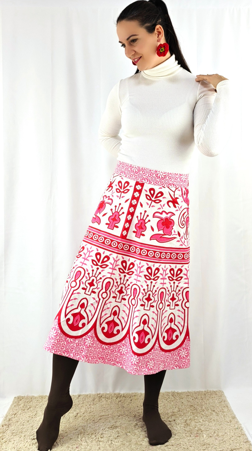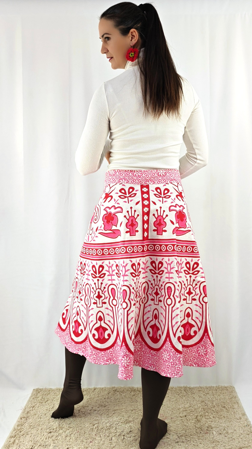 Könnyed, indiai mintás pamut lapszoknya, ami a tavasztól őszig igazi kedvenced lehet. Anyaga 100% pamut – természetes, légáteresztő, kellemes viselet,
