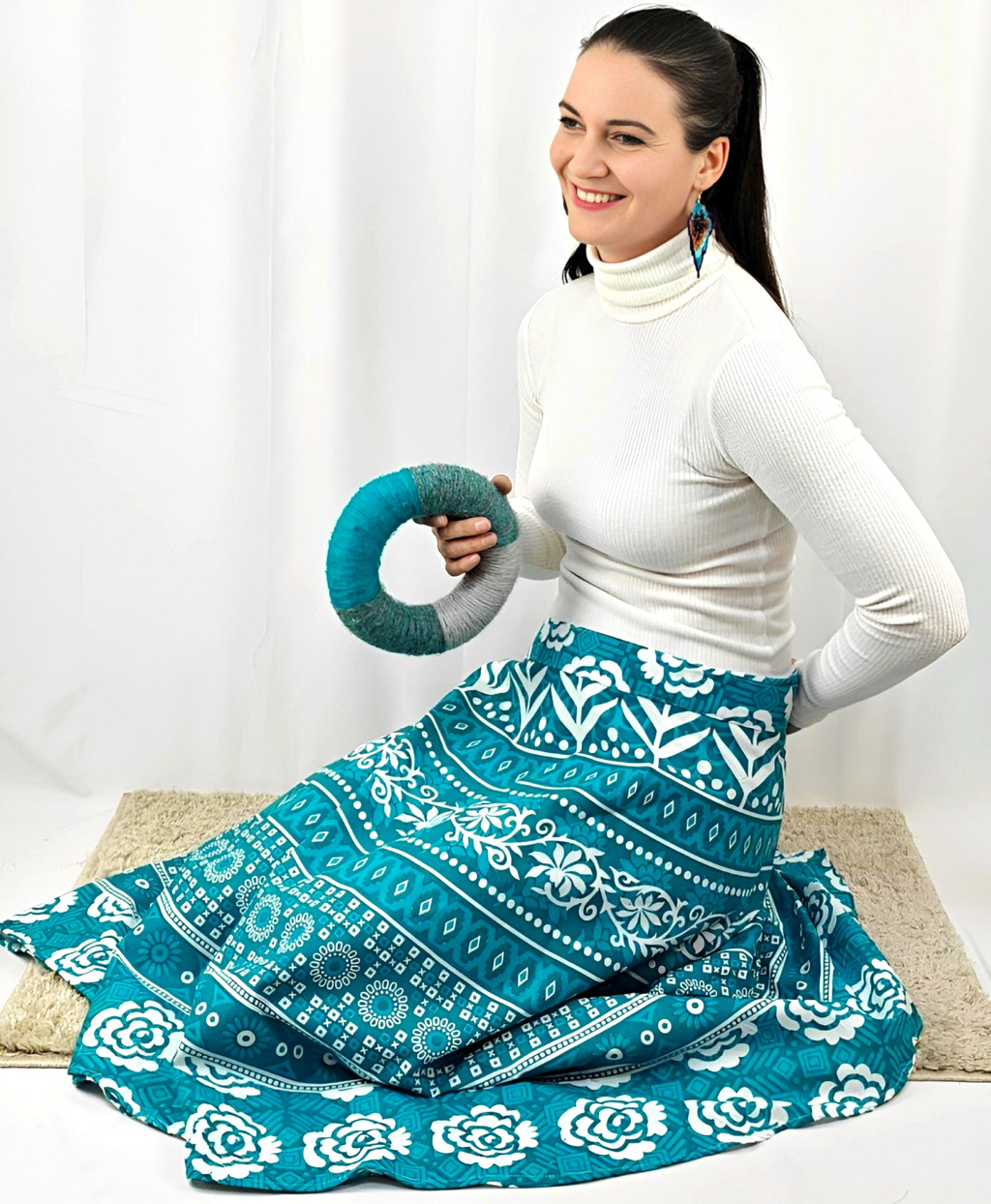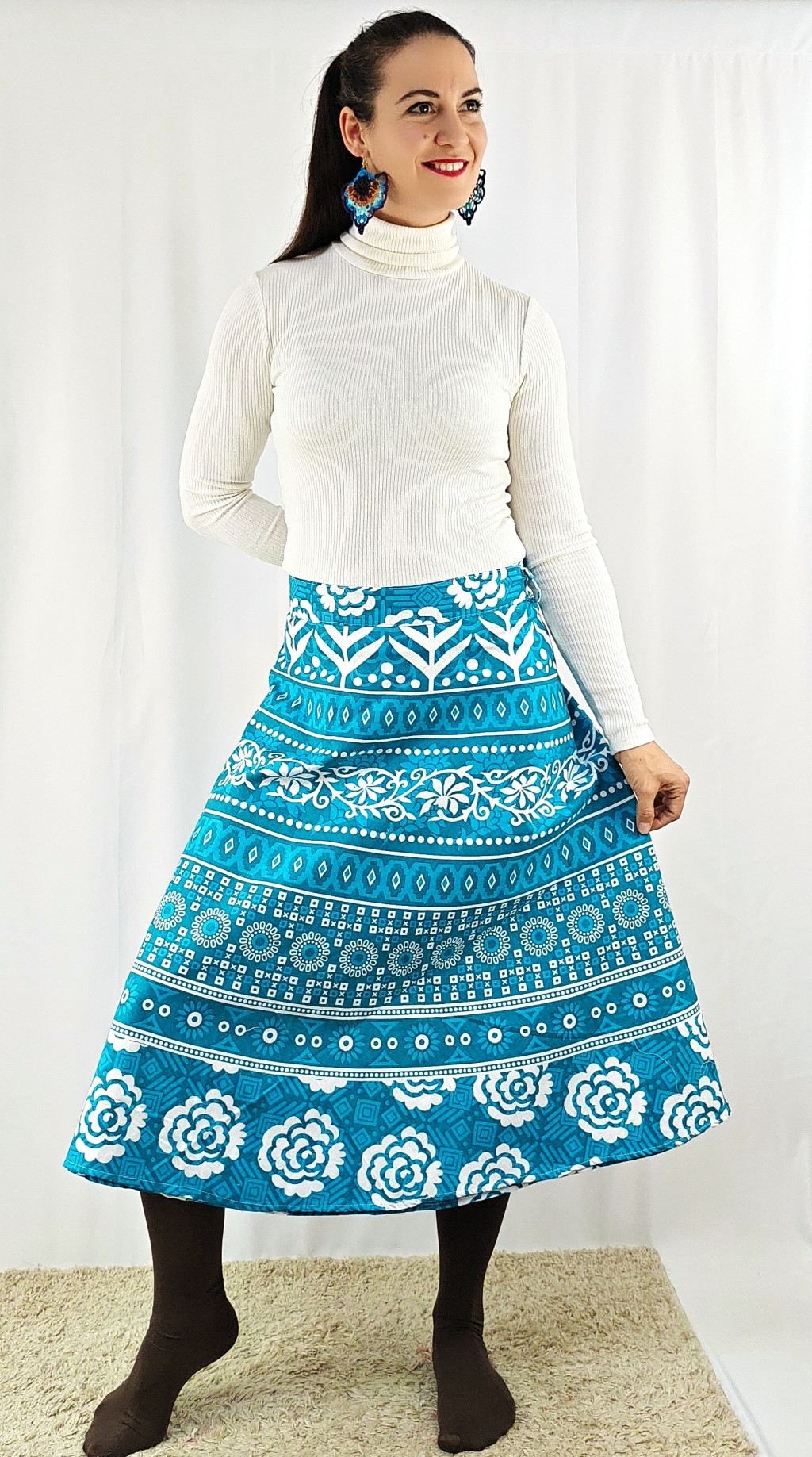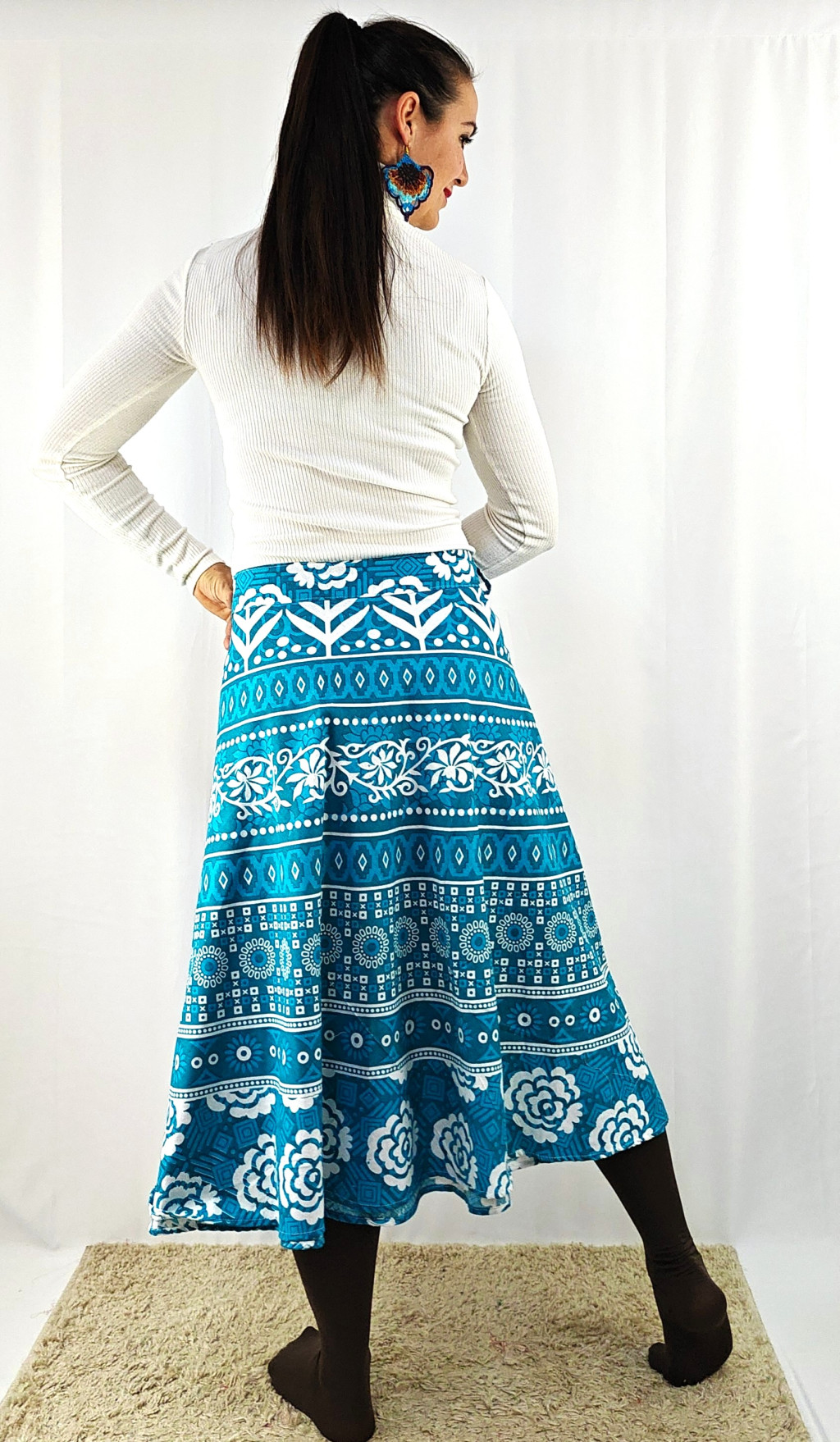 Könnyed, indiai mintás pamut lapszoknya, ami a tavasztól őszig igazi kedvenced lehet. Anyaga 100% pamut – természetes, légáteresztő, kellemes viselet,