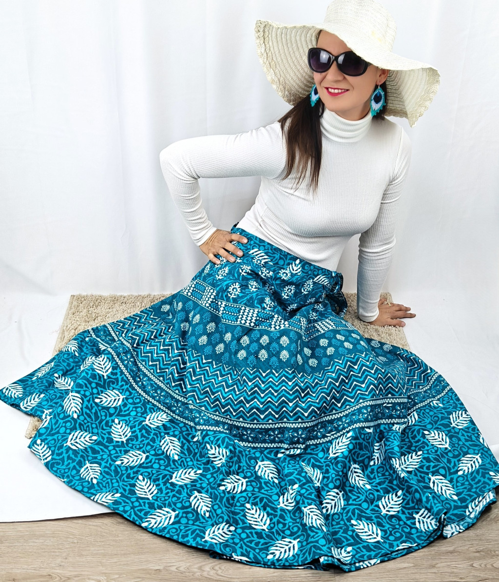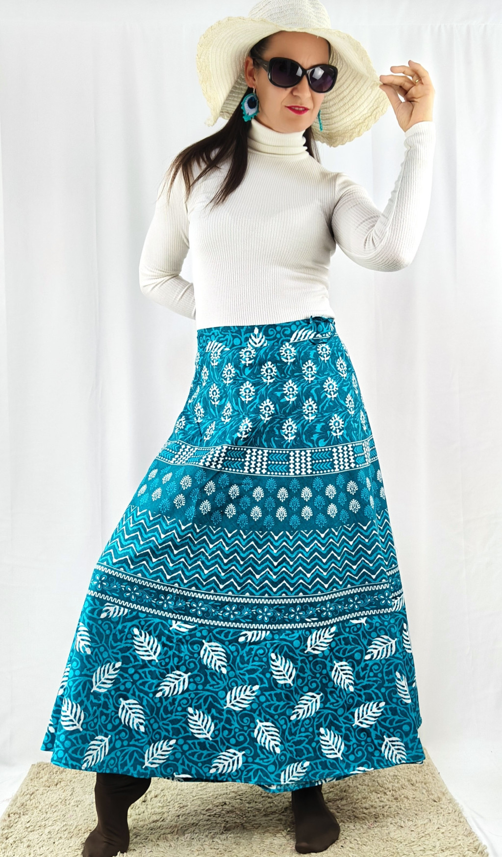 Könnyed, indiai mintás pamut lapszoknya, ami a tavasztól őszig igazi kedvenced lehet. Anyaga 100% pamut – természetes, légáteresztő, kellemes viselet,