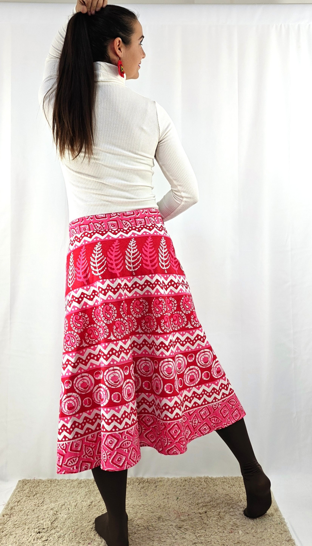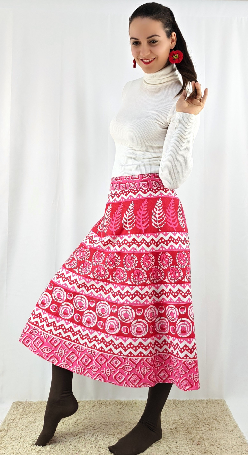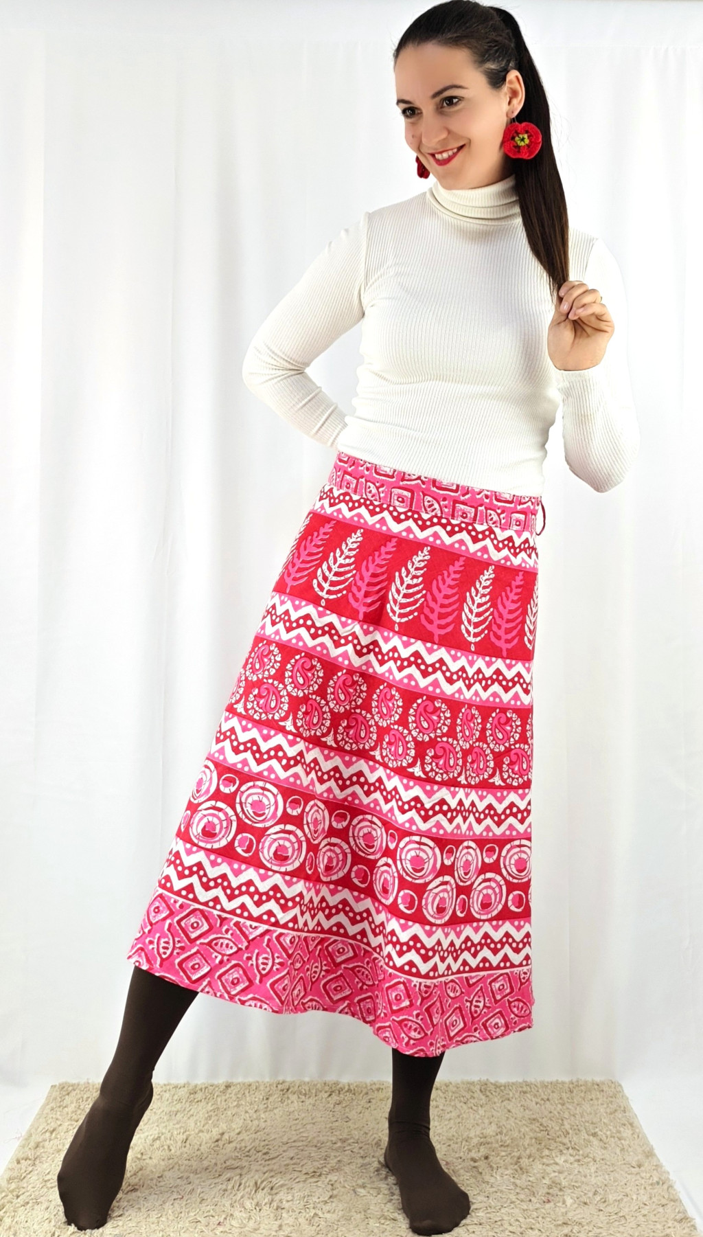 Könnyed, indiai mintás pamut lapszoknya, ami a tavasztól őszig igazi kedvenced lehet. Anyaga 100% pamut – természetes, légáteresztő, kellemes viselet,
