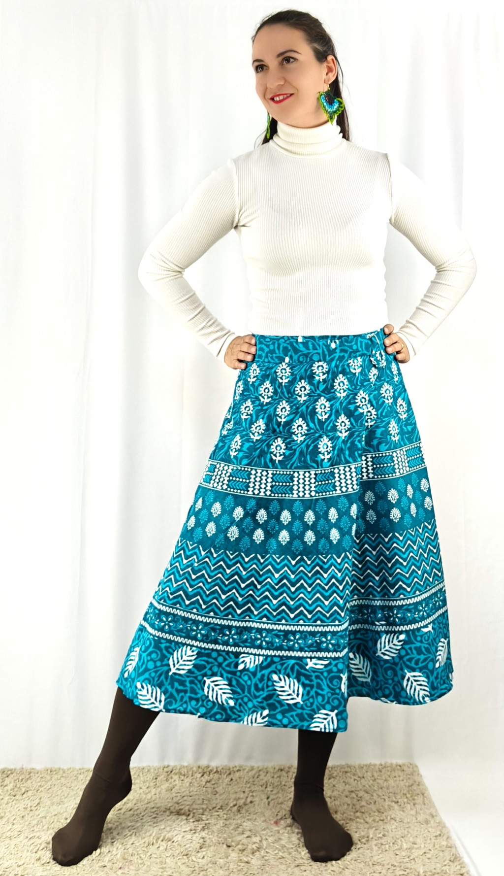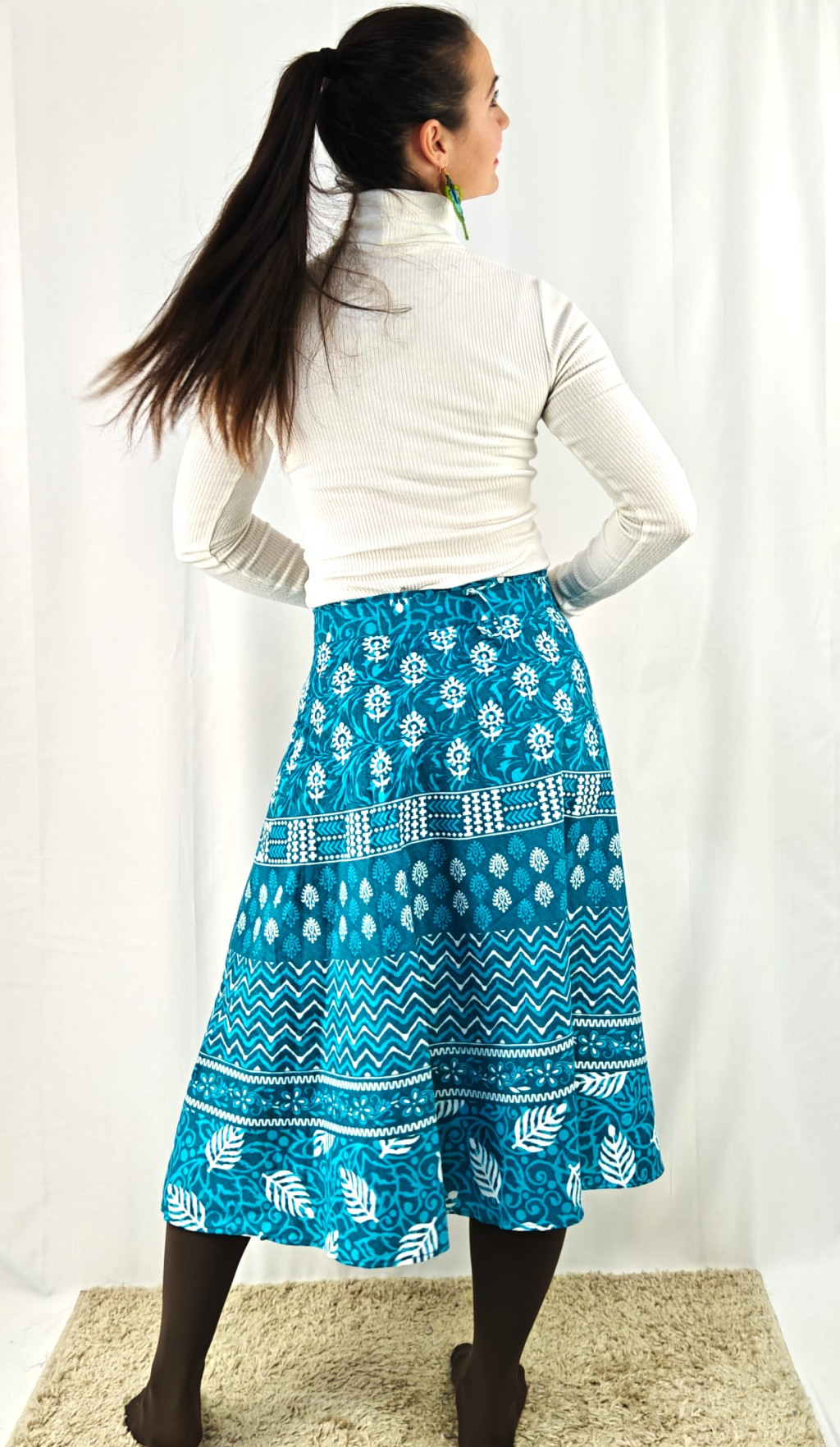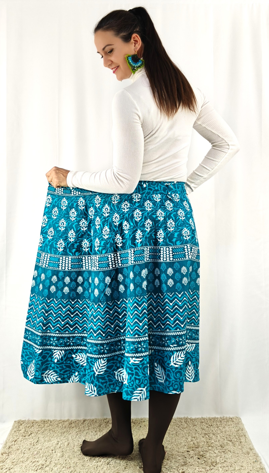 Könnyed, indiai mintás pamut lapszoknya, ami a tavasztól őszig igazi kedvenced lehet. Anyaga 100% pamut – természetes, légáteresztő, kellemes viselet,