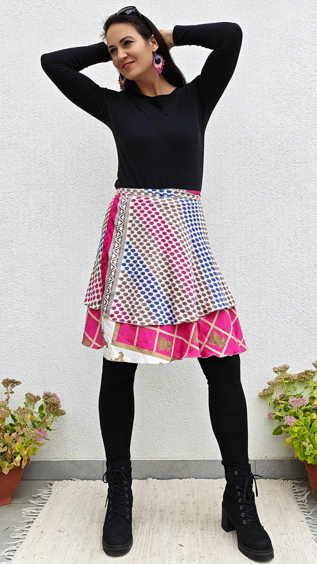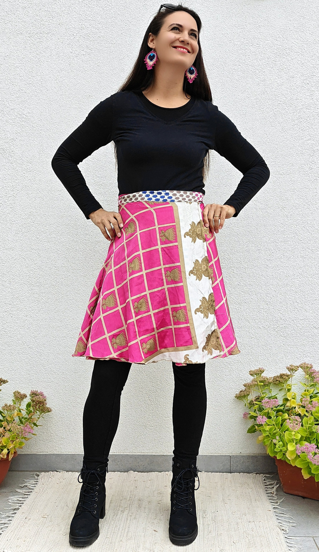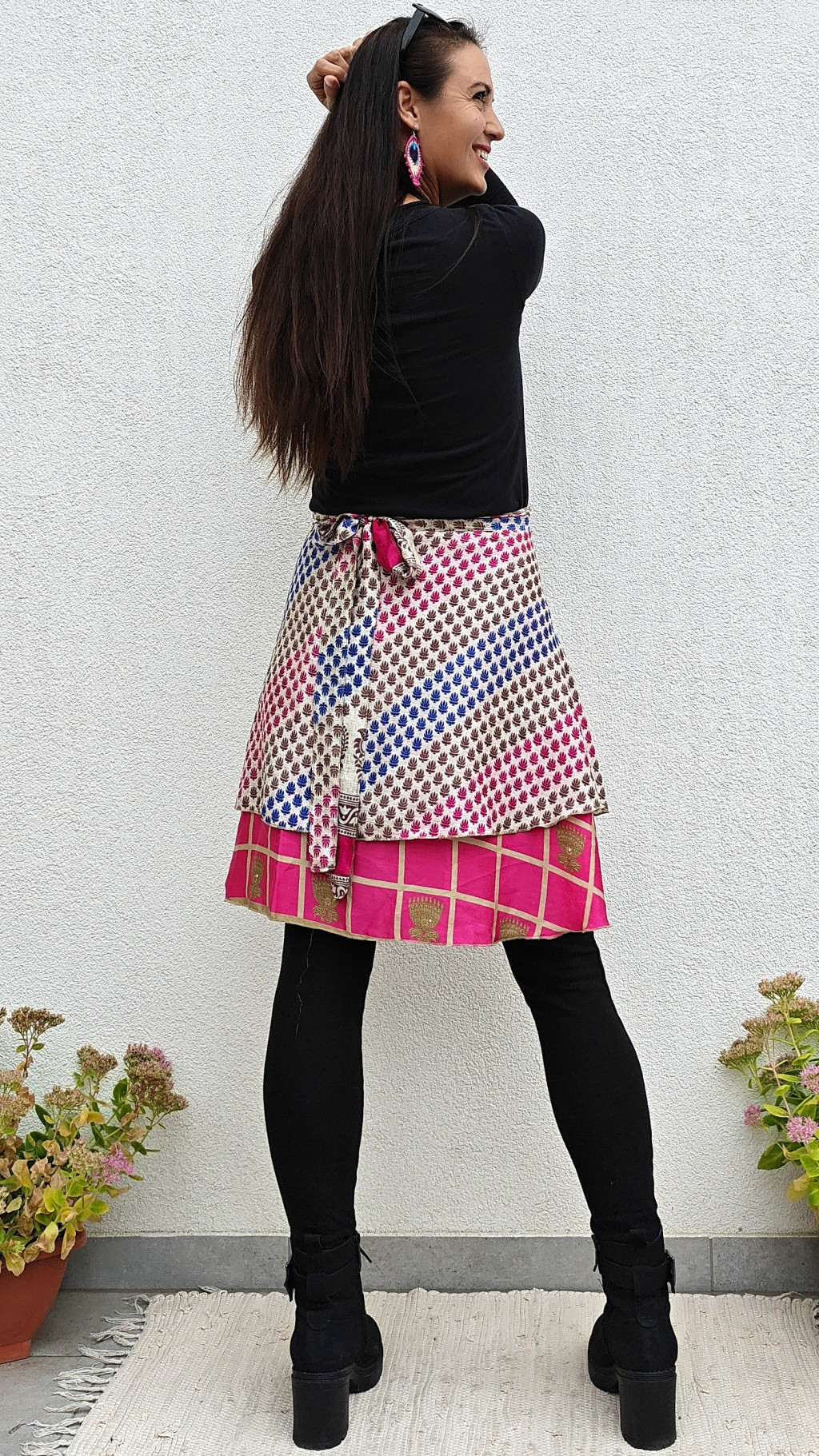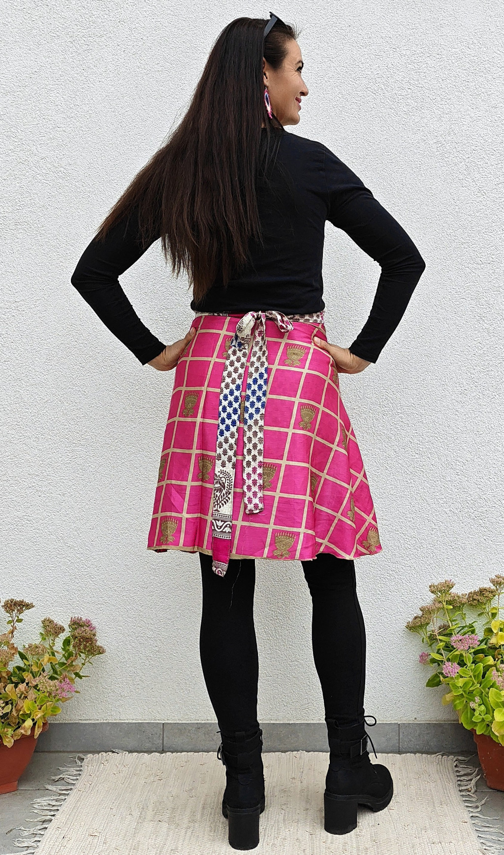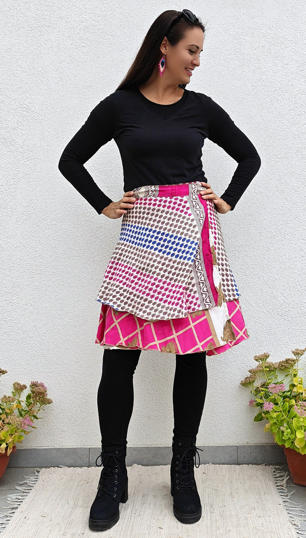 Lapszoknyáink újrahasznosított szárikból készülnek Indiában, egy hosszabb és egy rövidebb anyag derékban összevarrva! Két oldalú, kifordítható, mindkét oldala hordható, sokféleképpen köthető, variálható. Szoknyáinkból nincs két egyforma, mindegyikből csak EGY darab van, ha megtetszik, csapj le rá!