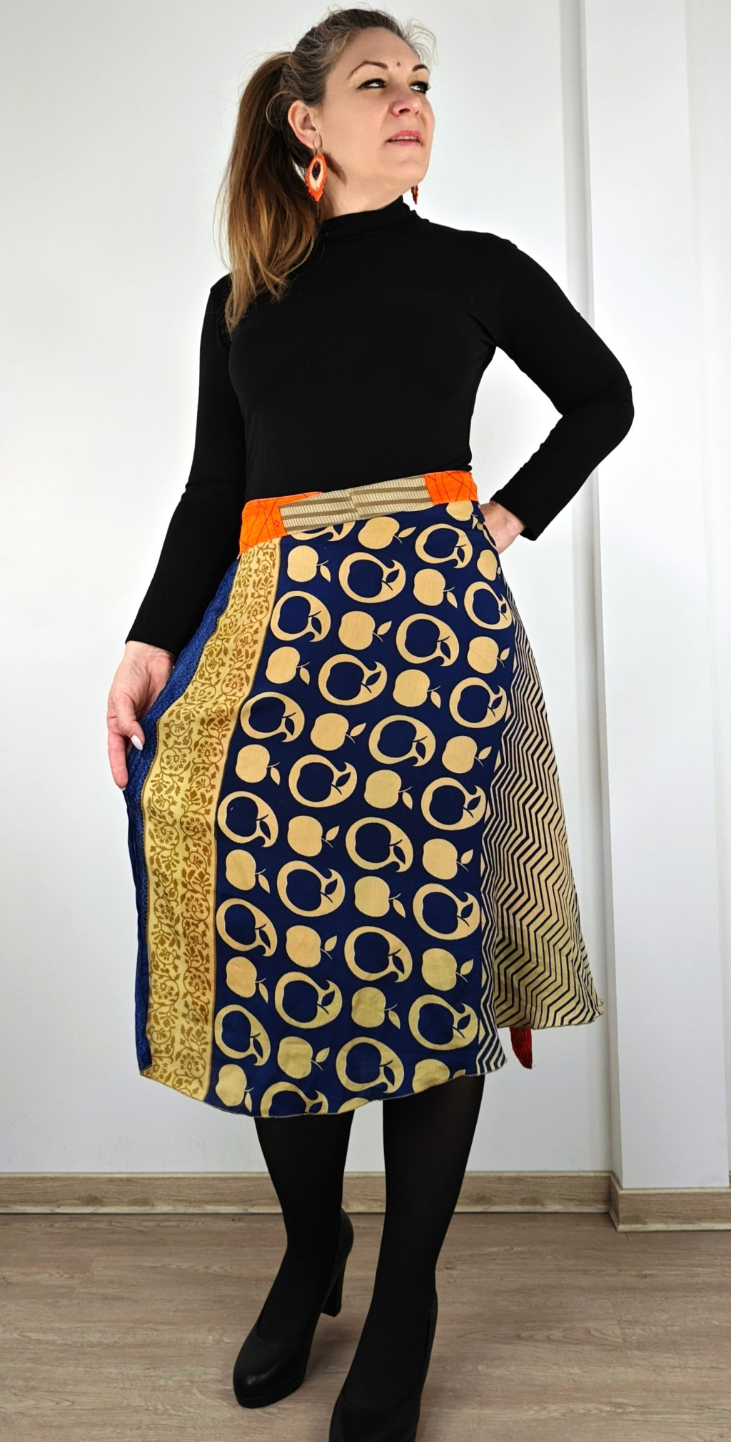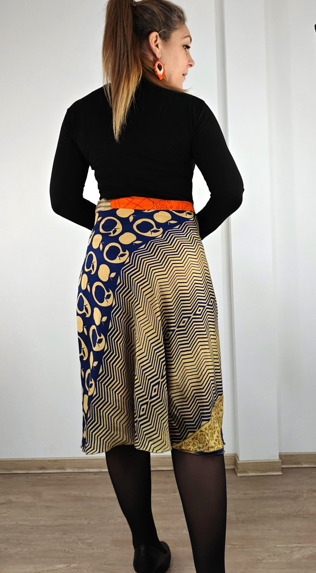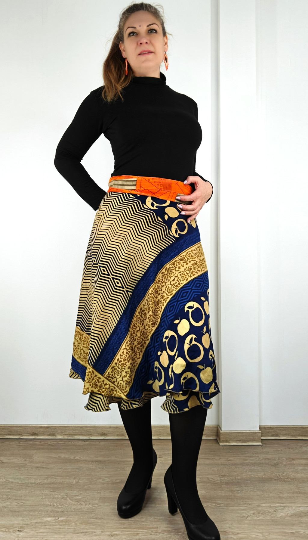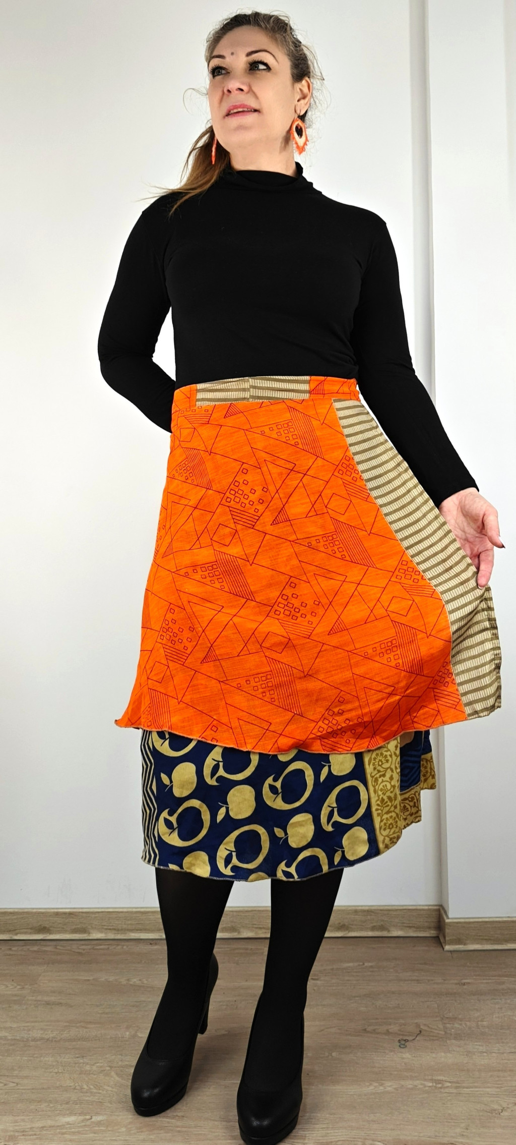 Lapszoknyáink újrahasznosított szárikból készülnek Indiában, egy hosszabb és egy rövidebb anyag derékban összevarrva! Két oldalú, kifordítható, mindkét oldala hordható, sokféleképpen köthető, variálható. Szoknyáinkból nincs két egyforma, mindegyikből csak EGY darab van, ha megtetszik, csapj le rá!