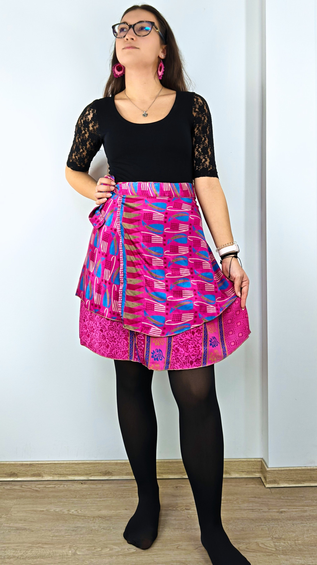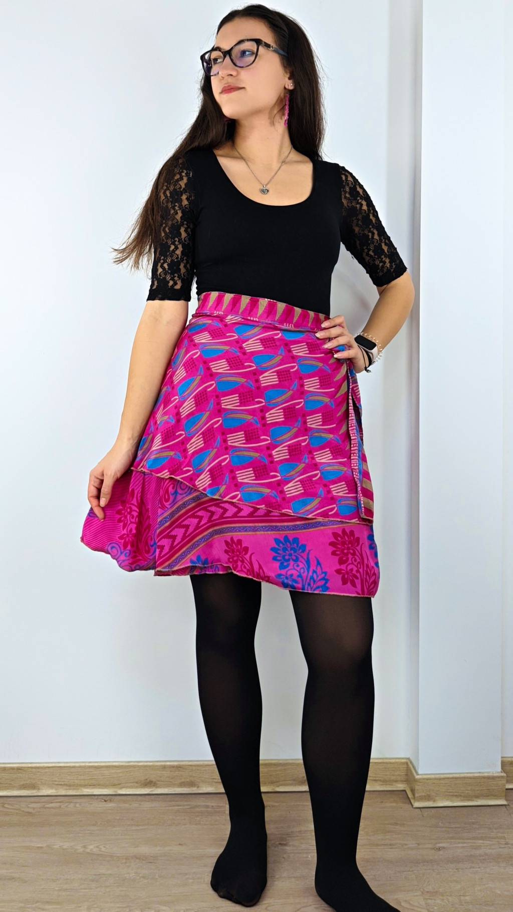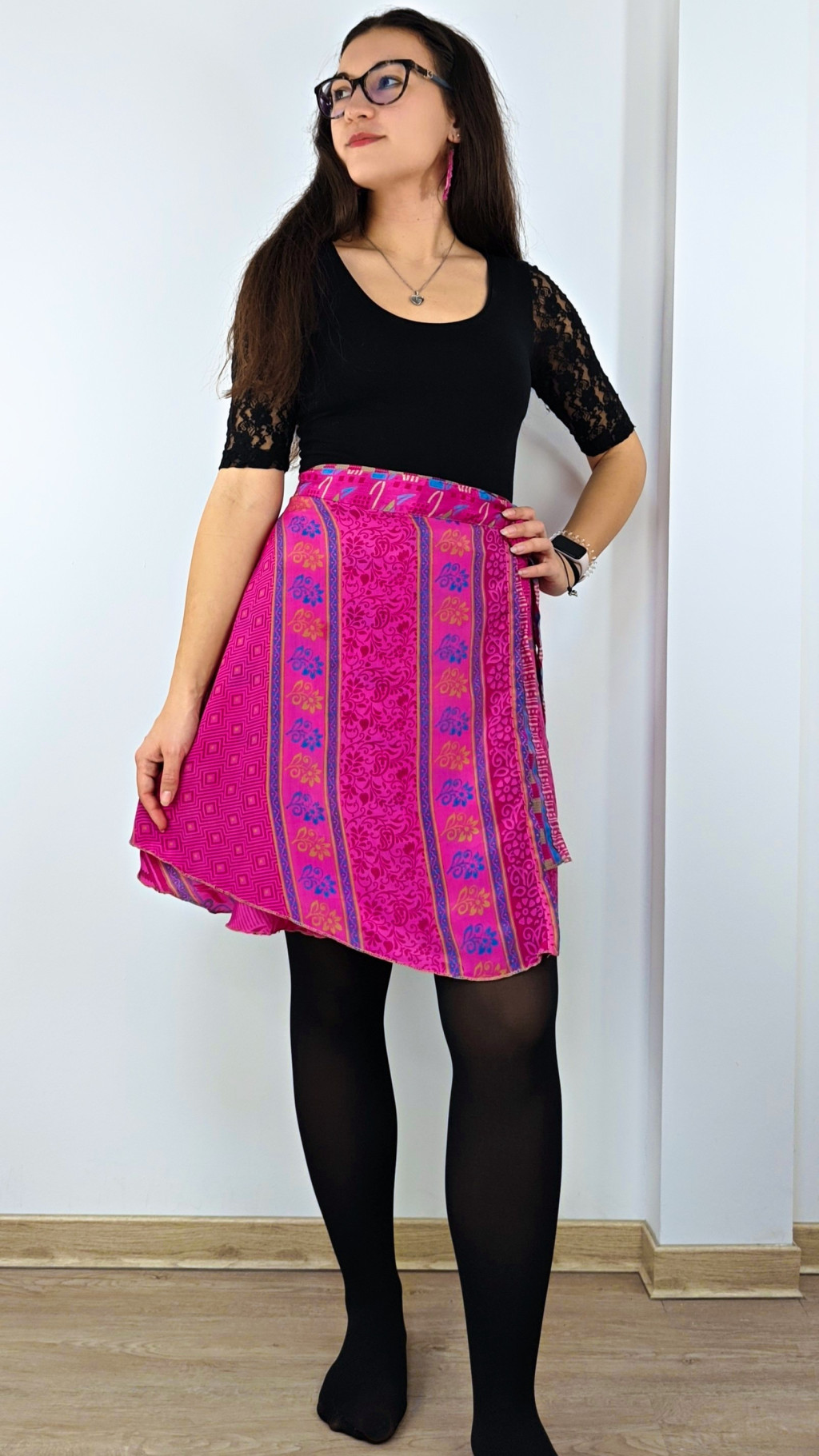 Lapszoknyáink újrahasznosított szárikból készülnek Indiában, egy hosszabb és egy rövidebb anyag derékban összevarrva! Két oldalú, kifordítható, mindkét oldala hordható, sokféleképpen köthető, variálható. Szoknyáinkból nincs két egyforma, mindegyikből csak EGY darab van, ha megtetszik, csapj le rá!