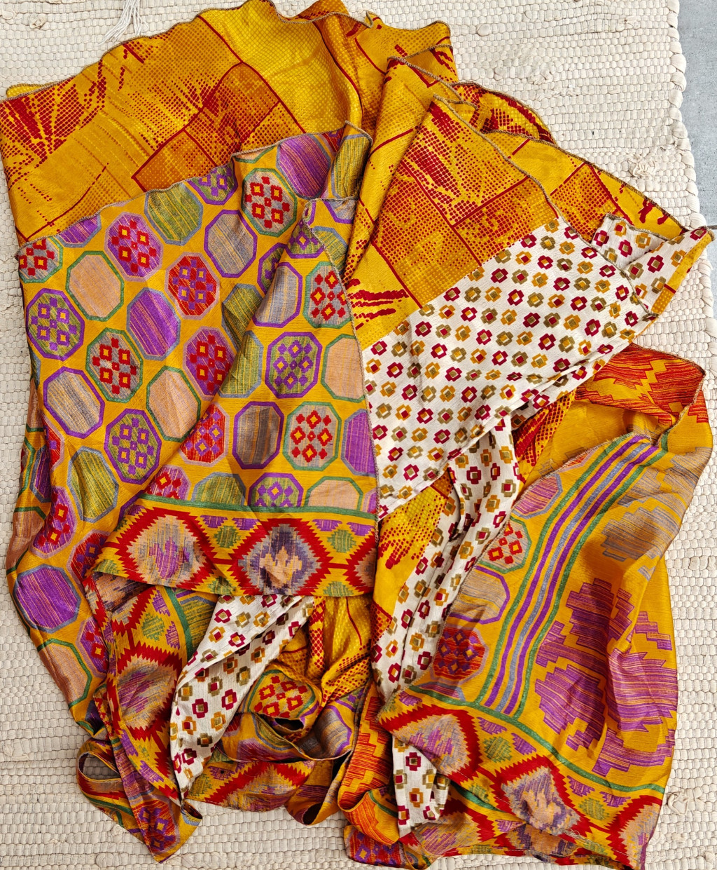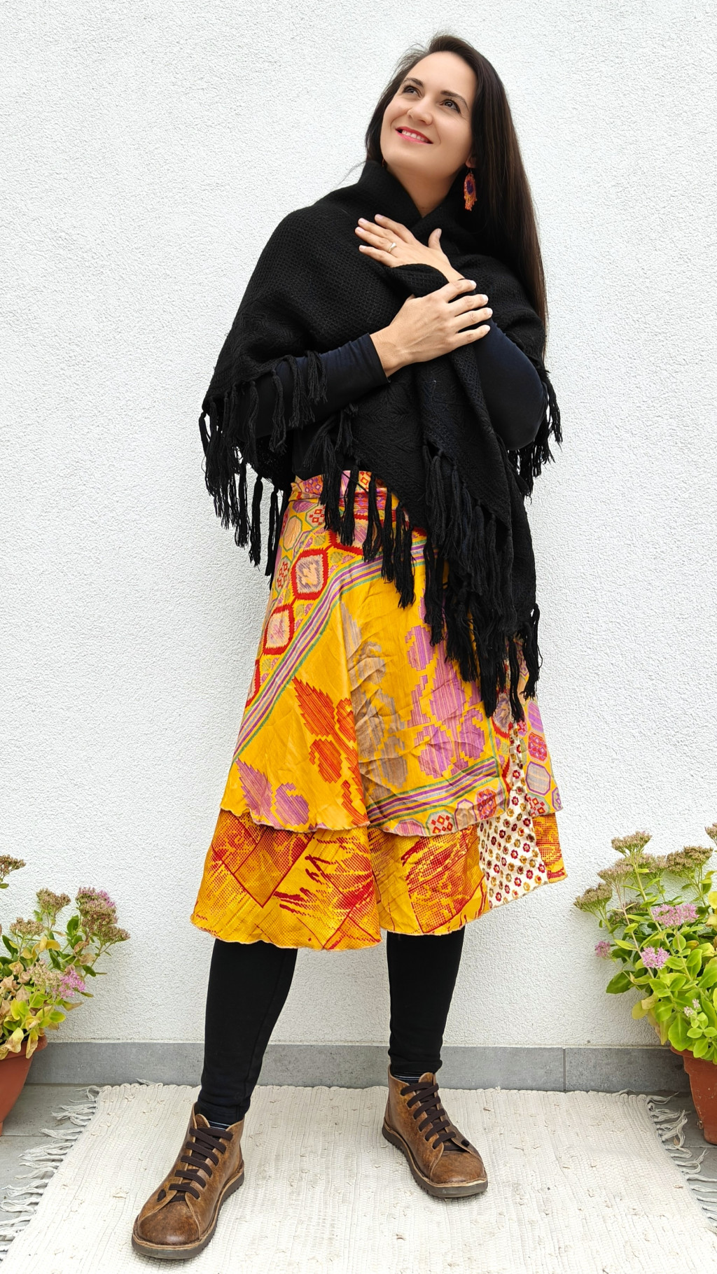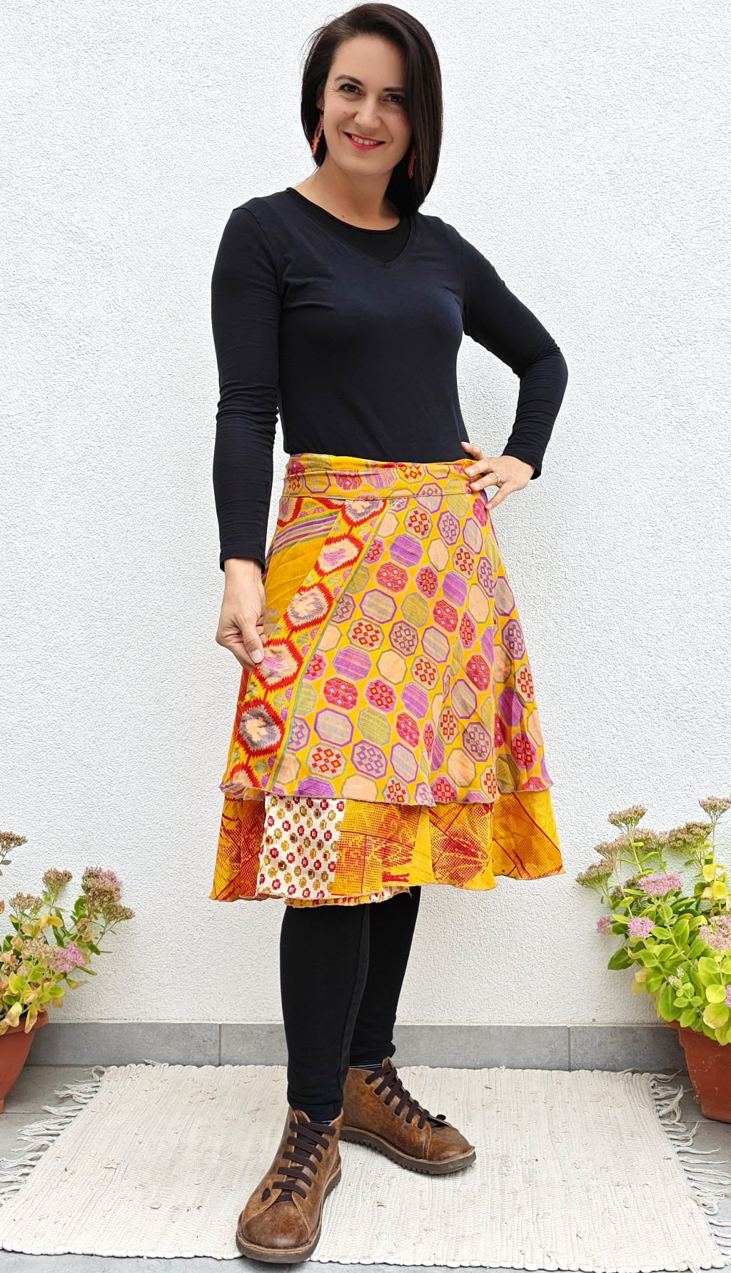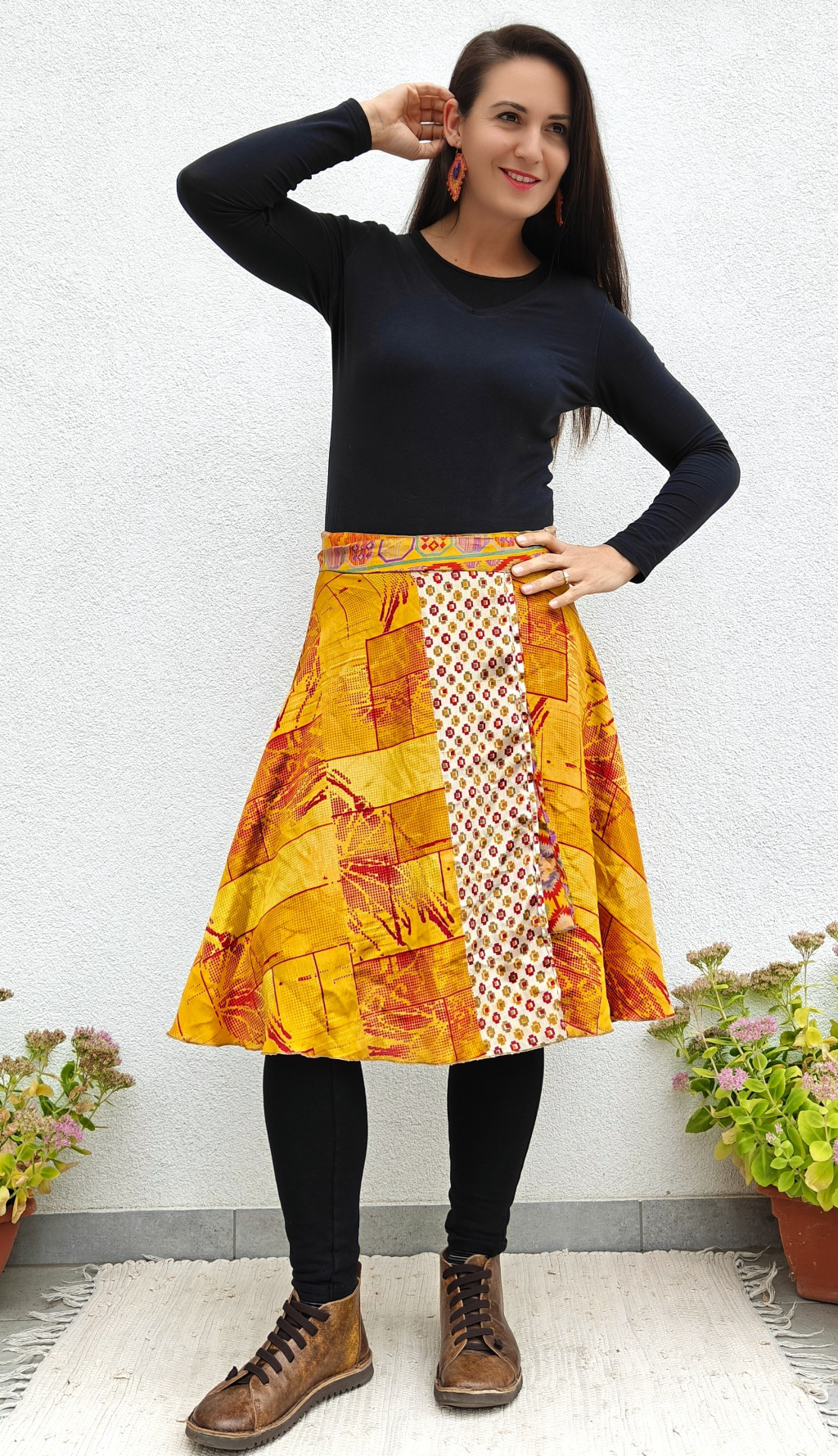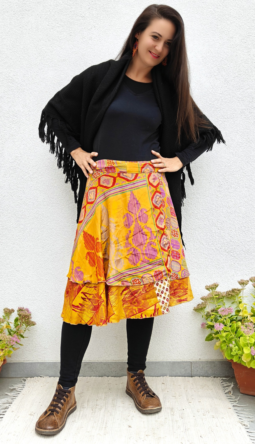Lapszoknyáink újrahasznosított szárikból készülnek Indiában, egy hosszabb és egy rövidebb anyag derékban összevarrva! Két oldalú, kifordítható, mindkét oldala hordható, sokféleképpen köthető, variálható. Szoknyáinkból nincs két egyforma, mindegyikből csak EGY darab van, ha megtetszik, csapj le rá!