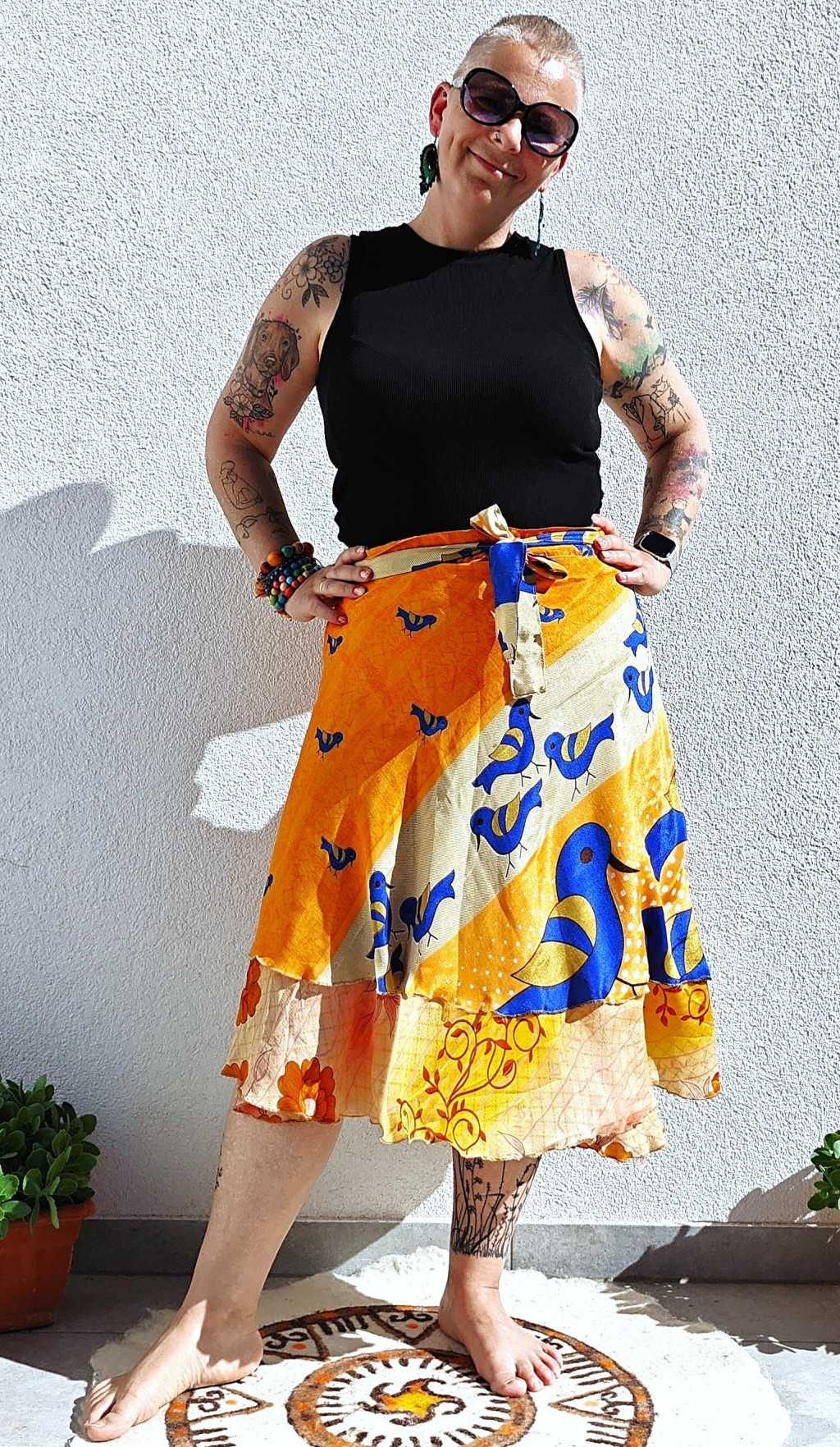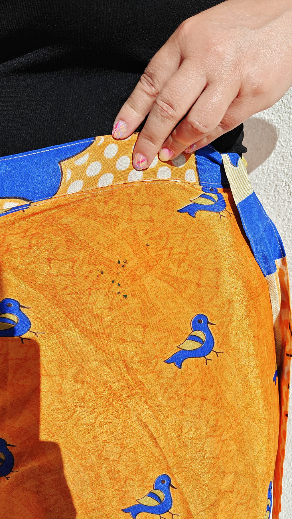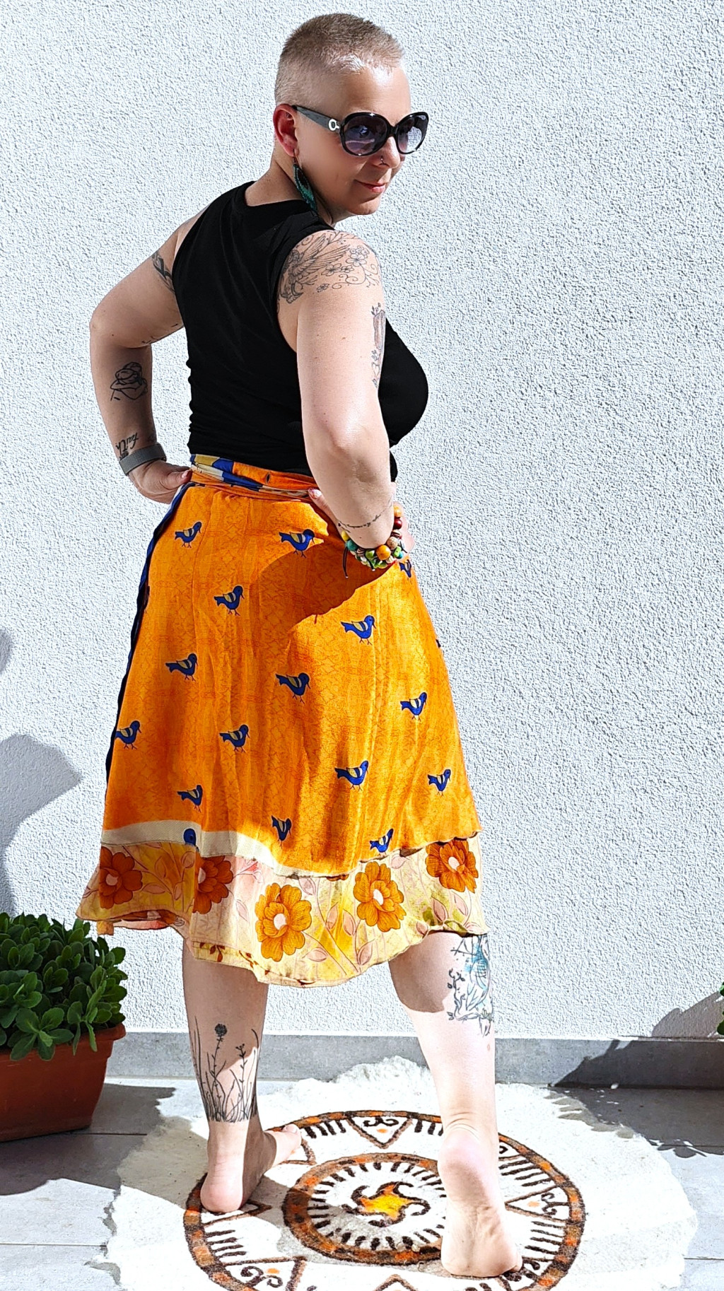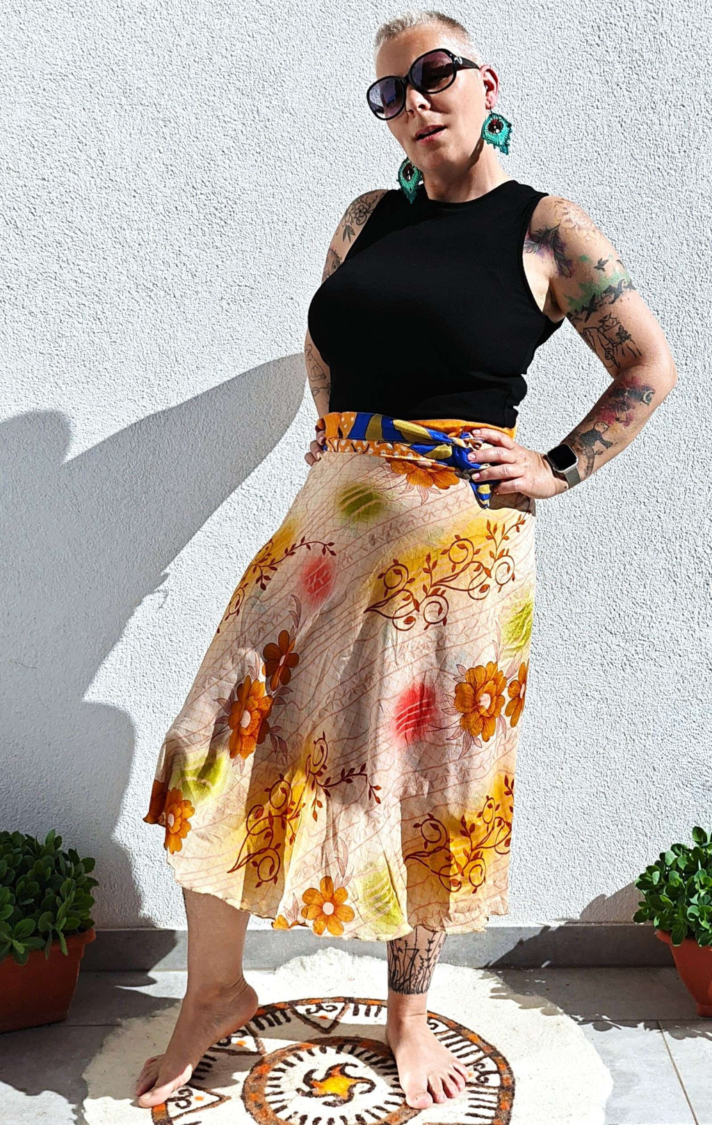 Lapszoknyáink újrahasznosított szárikból készülnek Indiában, egy hosszabb és egy rövidebb anyag derékban összevarrva! Kifordítható, mindkét oldala hordható, sokféleképpen köthető, variálható. Szoknyáinkból nincs két egyforma, mindegyikből csak EGY darab van, ha megtetszik, csapj le rá!