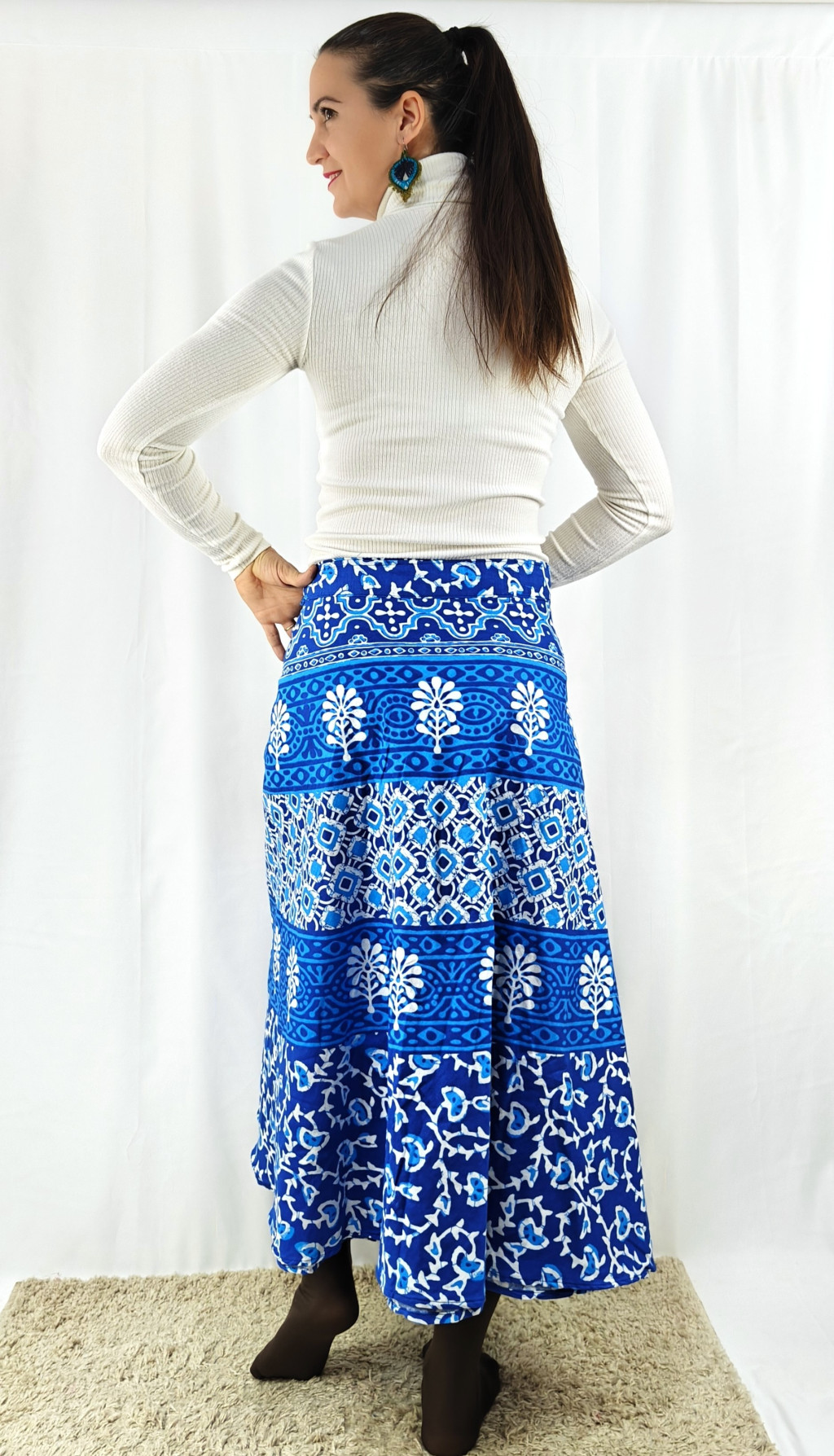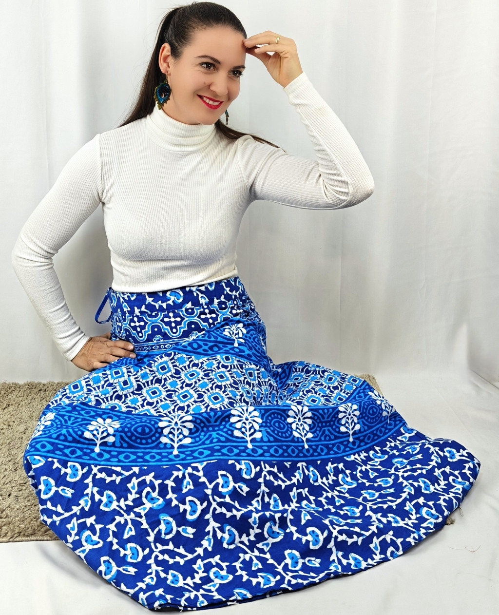 Könnyed, indiai mintás pamut lapszoknya, ami a tavasztól őszig igazi kedvenced lehet. Anyaga 100% pamut – természetes, légáteresztő, kellemes viselet,