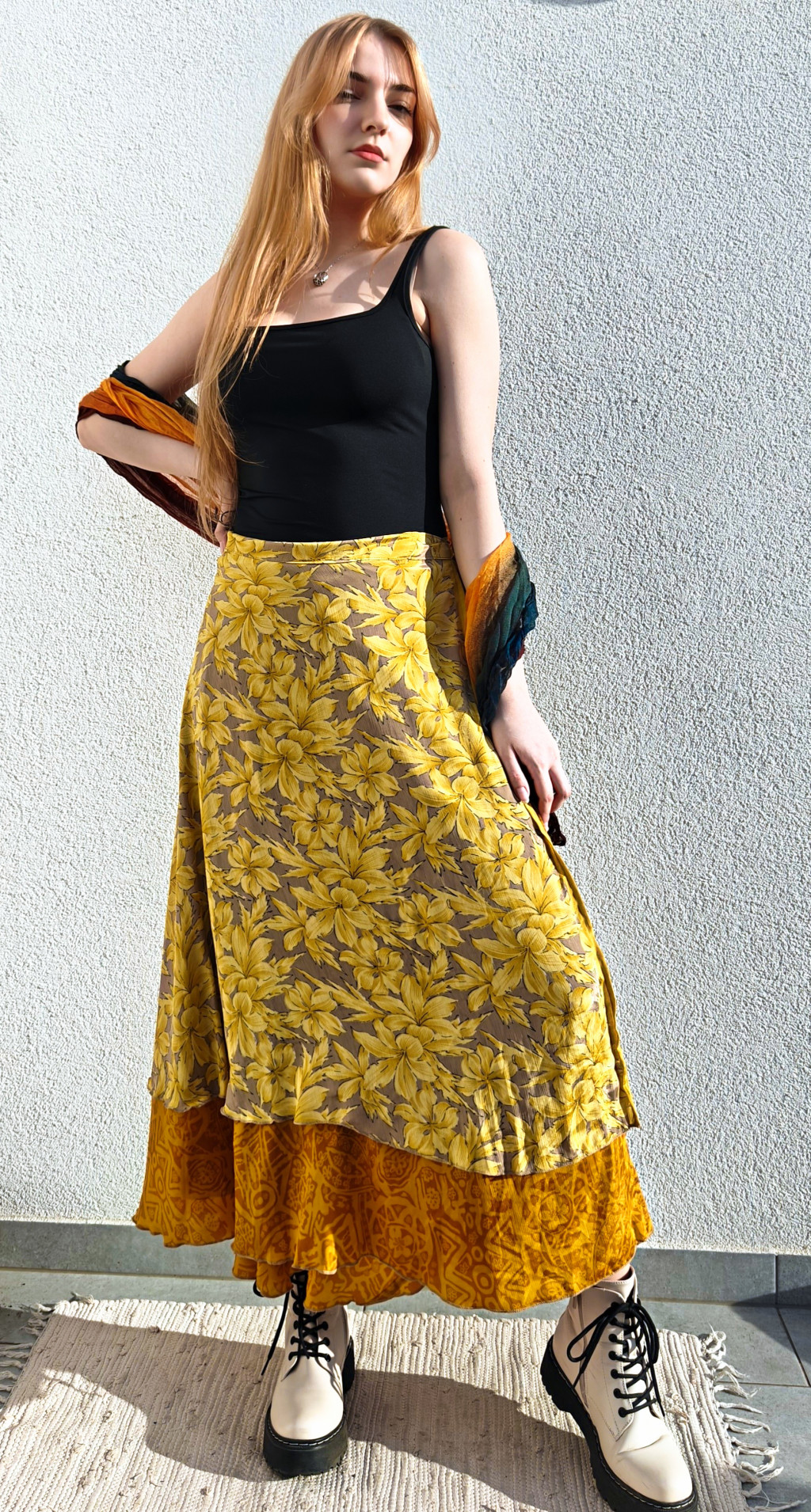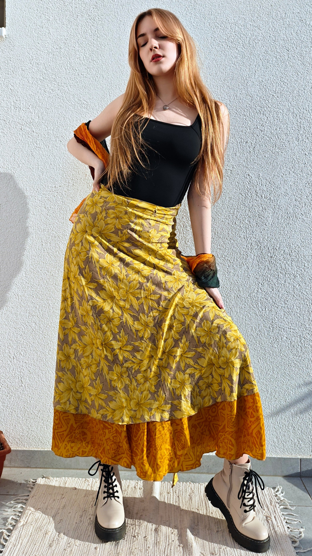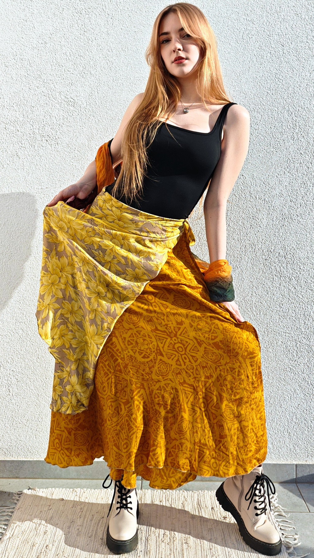 Lapszoknyáink újrahasznosított szárikból készülnek Indiában, egy hosszabb és egy rövidebb anyag derékban összevarrva! Két oldalú, kifordítható, mindkét oldala hordható, sokféleképpen köthető, variálható. Szoknyáinkból nincs két egyforma, mindegyikből csak EGY darab van, ha megtetszik, csapj le rá!