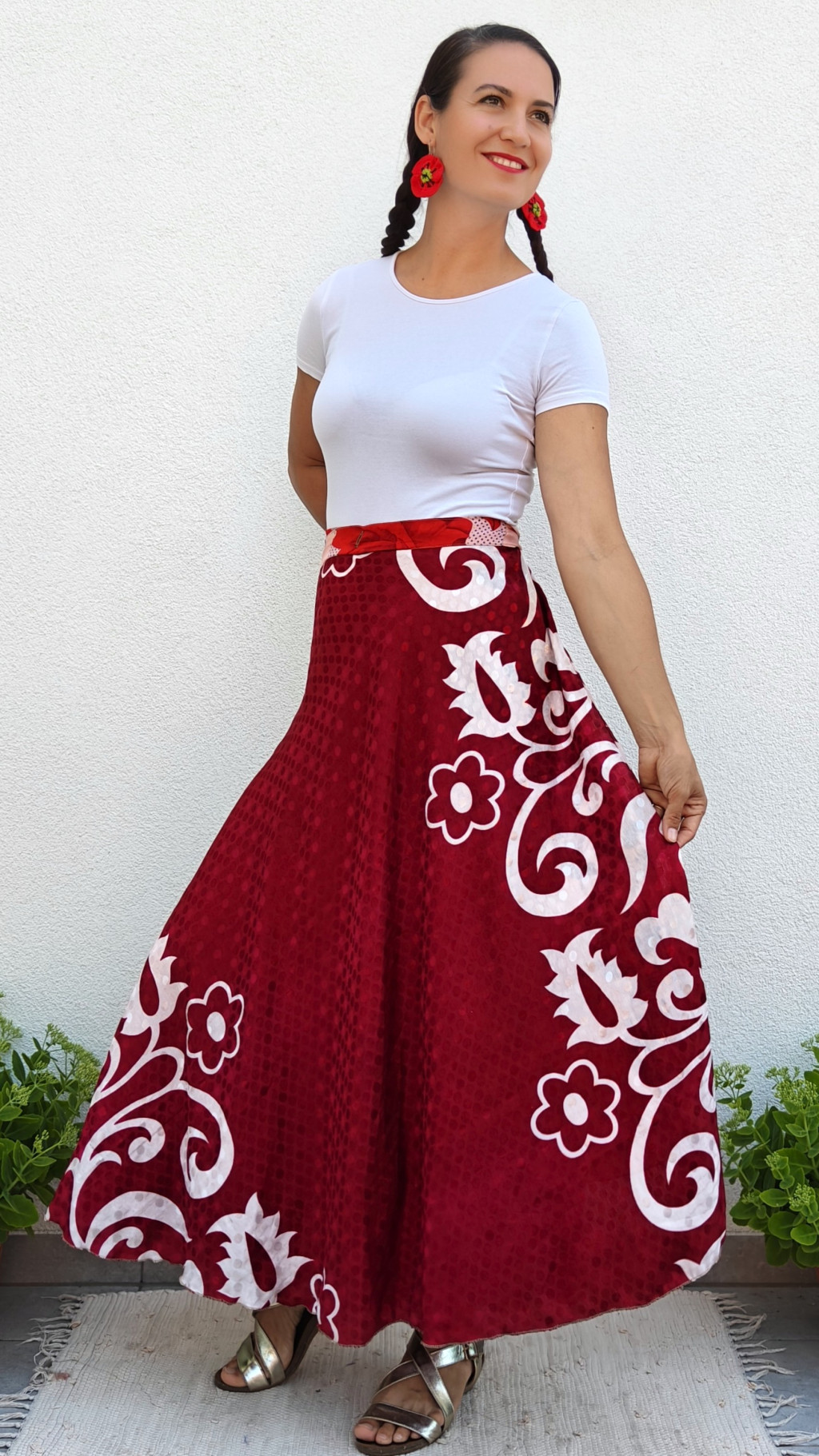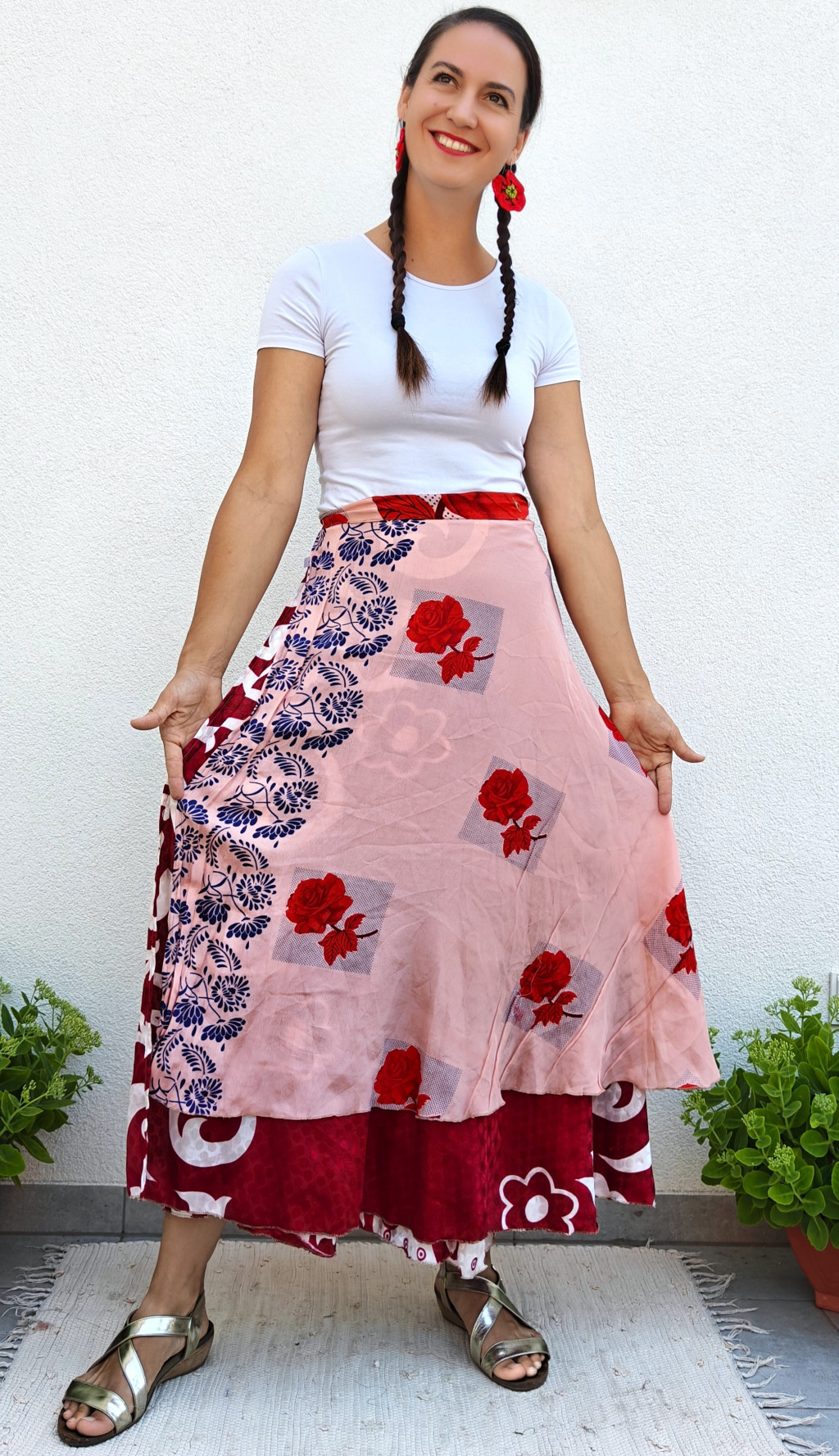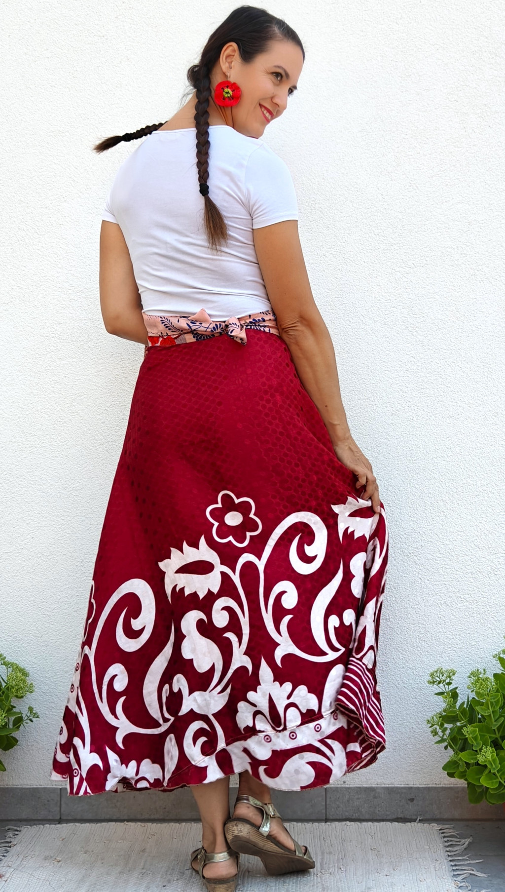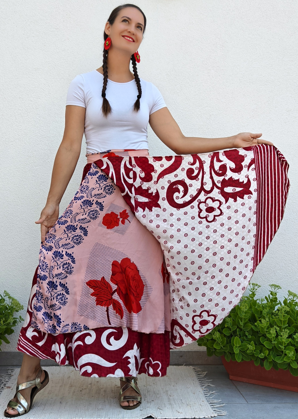 Lapszoknyáink újrahasznosított szárikból készülnek Indiában, egy hosszabb és egy rövidebb anyag derékban összevarrva! Kifordítható, mindkét oldala hordható, sokféleképpen köthető, variálható. Szoknyáinkból nincs két egyforma, mindegyikből csak EGY darab van, ha megtetszik, csapj le rá!