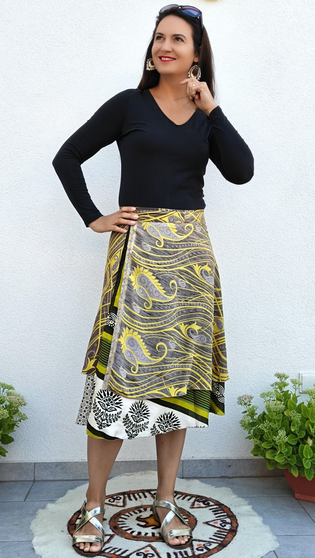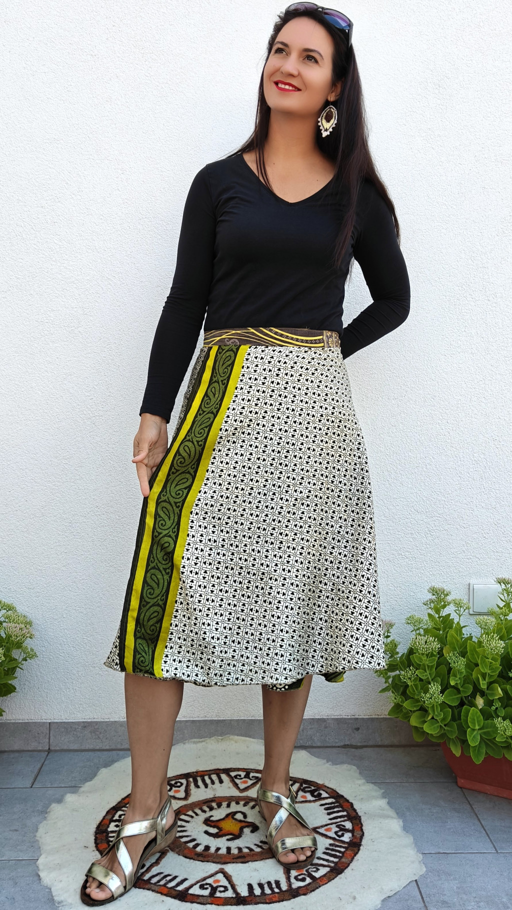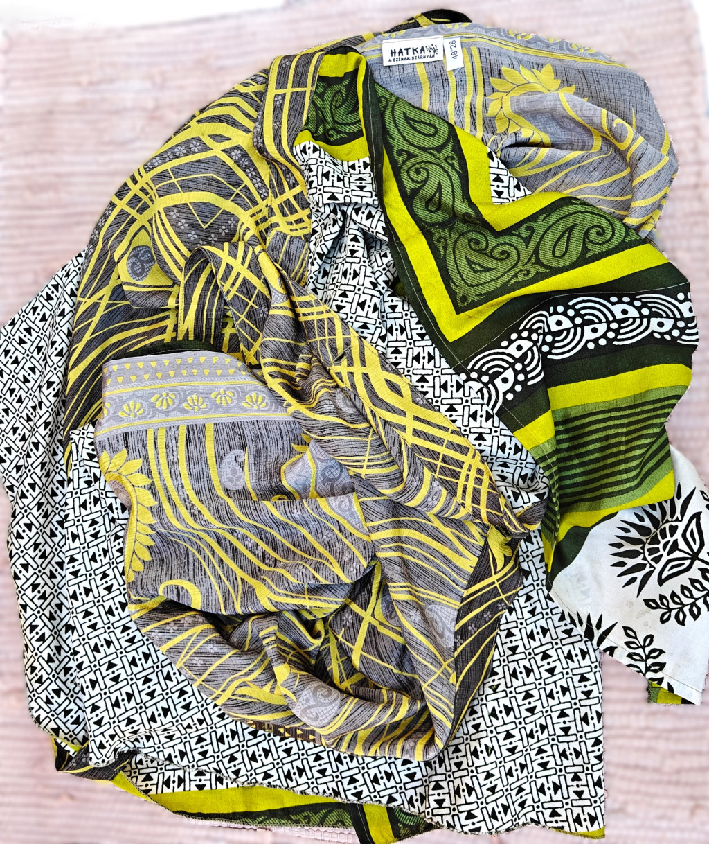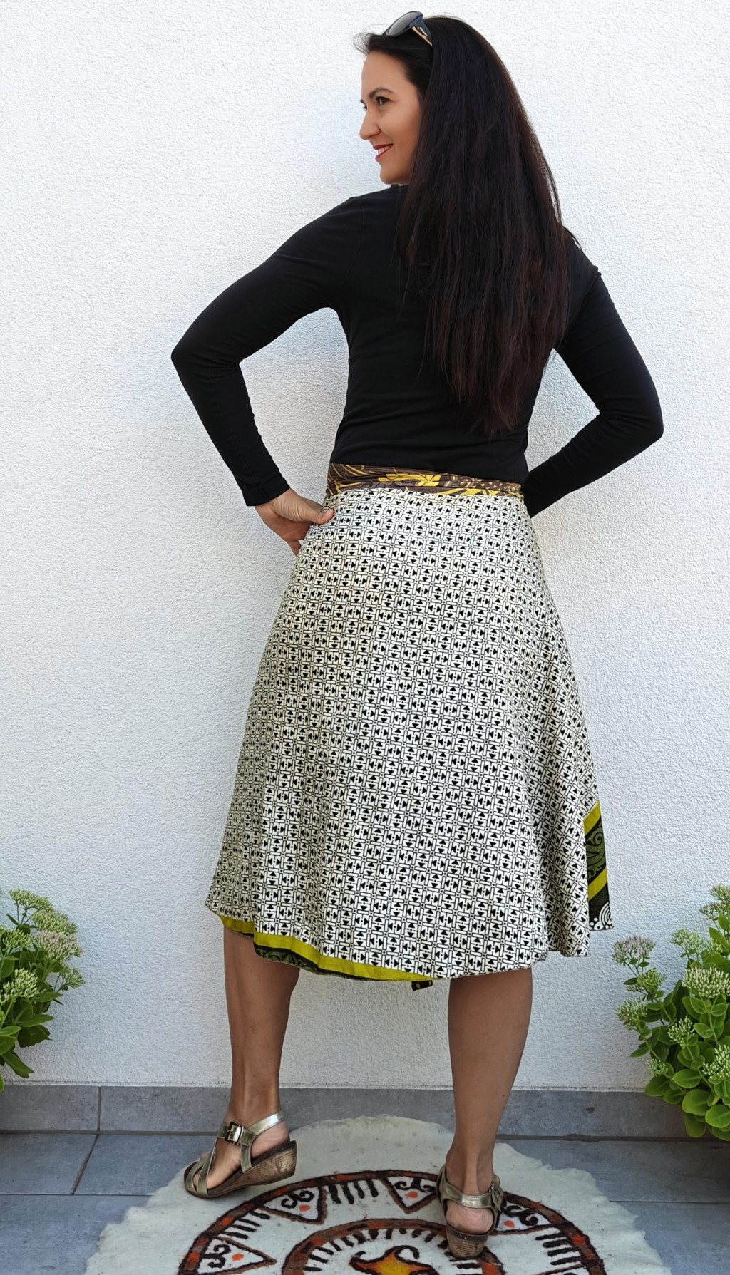 Lapszoknyáink újrahasznosított szárikból készülnek Indiában, egy hosszabb és egy rövidebb anyag derékban összevarrva! Két oldalú, kifordítható, mindkét oldala hordható, sokféleképpen köthető, variálható. Szoknyáinkból nincs két egyforma, mindegyikből csak EGY darab van, ha megtetszik, csapj le rá!
